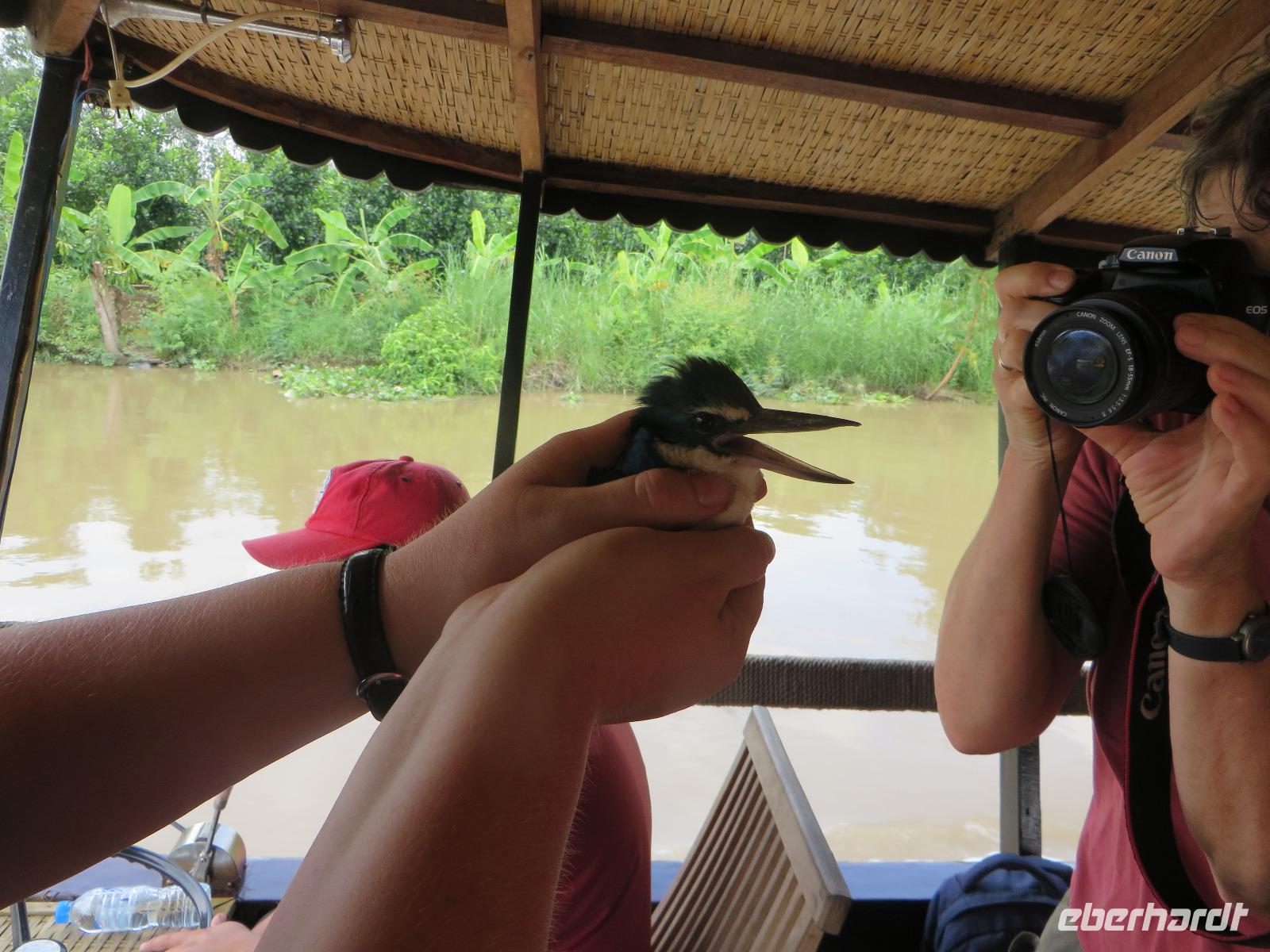 Zurück auf dem großen Boot nehmen wir langsam Kurs auf den Hauptarm des Mekong. Unterwegs landet zufällig ein junger Mangroveneisvogel bei uns im Boot und wird von uns gerettet. Der Hauptarm des Mekong überrascht uns mit seiner imensen Größe. Hier halten wir an einem Mandarinhaus und genießen ein wunderbares Mittagessen. Weiter geht es auf dem Delta, bis wir langsam zum Bus zurück fahren - ein traumhafter Tag! Morgen ist schon der letzte Tag in Vietnam, die Zeit vergeht viel zu schnell!