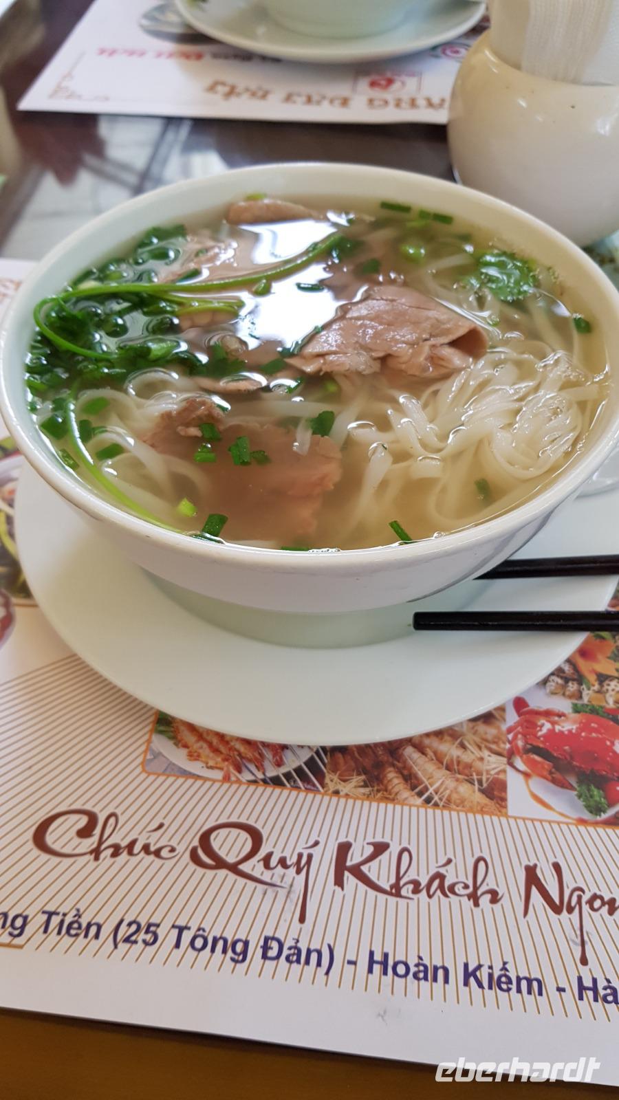 Man konnte schlecht einschätzen, ob unser letztes Essen Frühstück oder Abendessen war, und Hunger haben wir gespürt. Also, sind wir erstmal zu dem Restaurant gefahren, wo wir die Phö Suppe gegessen haben, eine typisches Hanoi Gericht.