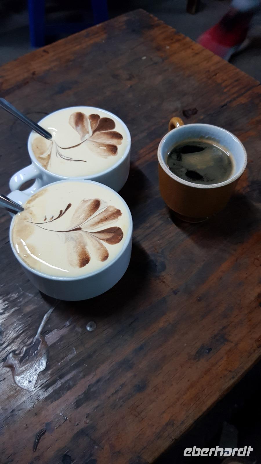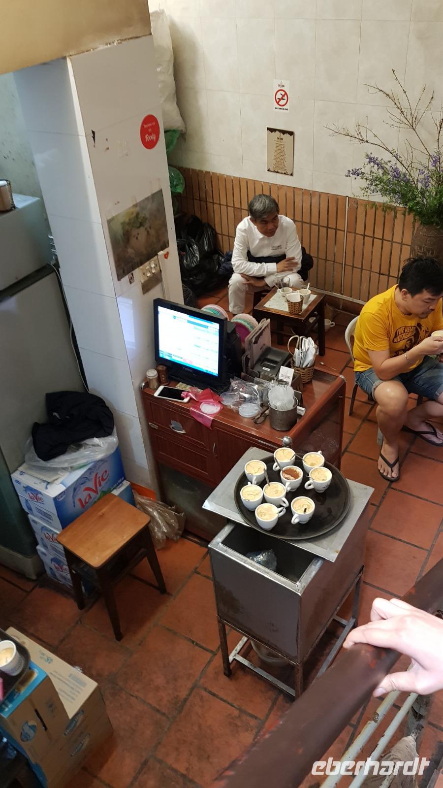 Der Kaffee in Vietnam ist ganz lecker, es duftet nach Schokolade. Ausserdem kann man in Hanoi ein Eierkaffee bekommen. Er ist ganz leicht vorzubereiten. Man nimmt ein Eigelb und schlägt es mit dem Zucker. Was man bekommen hat, gibt man zu einer Tasse schwarzer Kaffee.