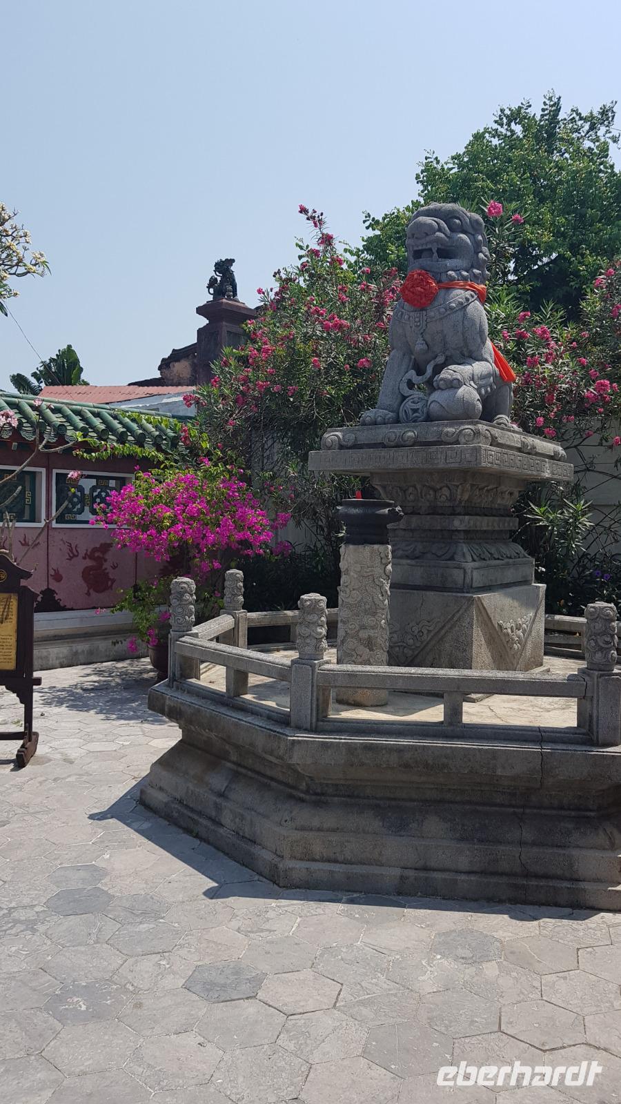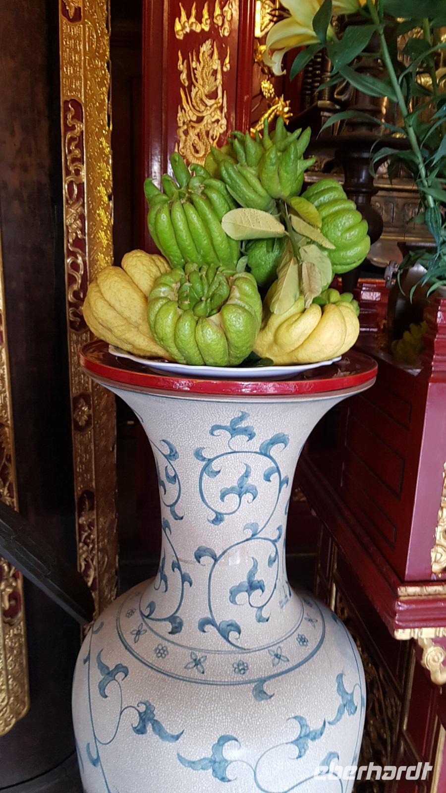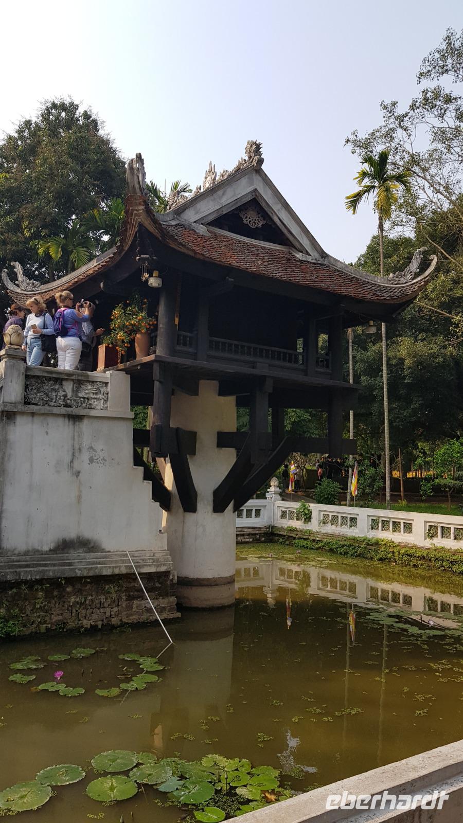 Gleich neben dem Mausoleum befindet sich noch ein Wahrzeichen von Hanoi: eine Einsäulenpagode. Das ist eine der ältesten Pagoden in Hanoi. Sie ist ziemlich klein, aber sehr fein geschmückt. Um die Pagoden zu dekorieren wird oftmals ein Buddha Finger oder Buddhas Hand Frucht verwendet. Diese Frucht kann man nicht essen, aber duften tut es sehr gut.