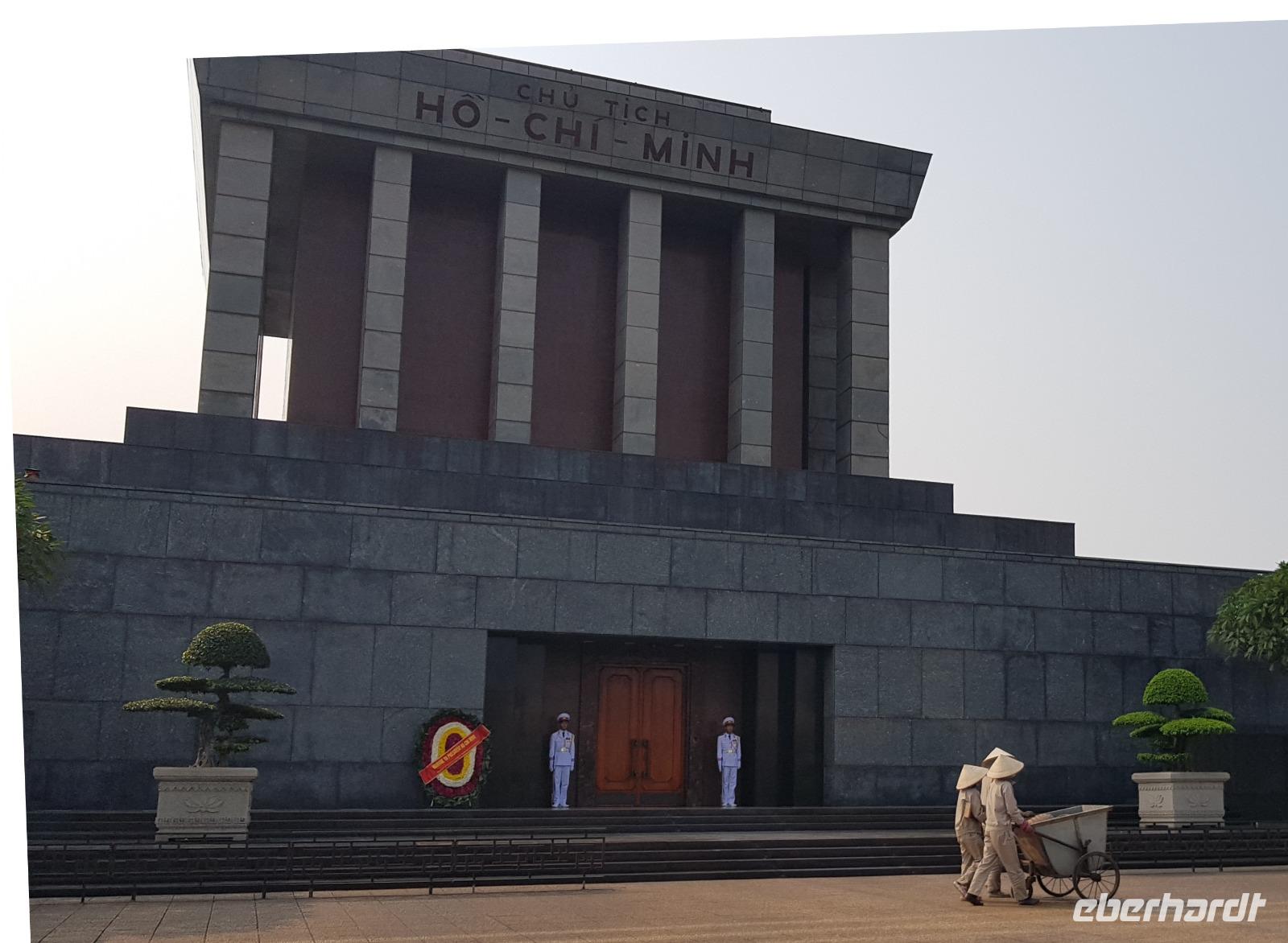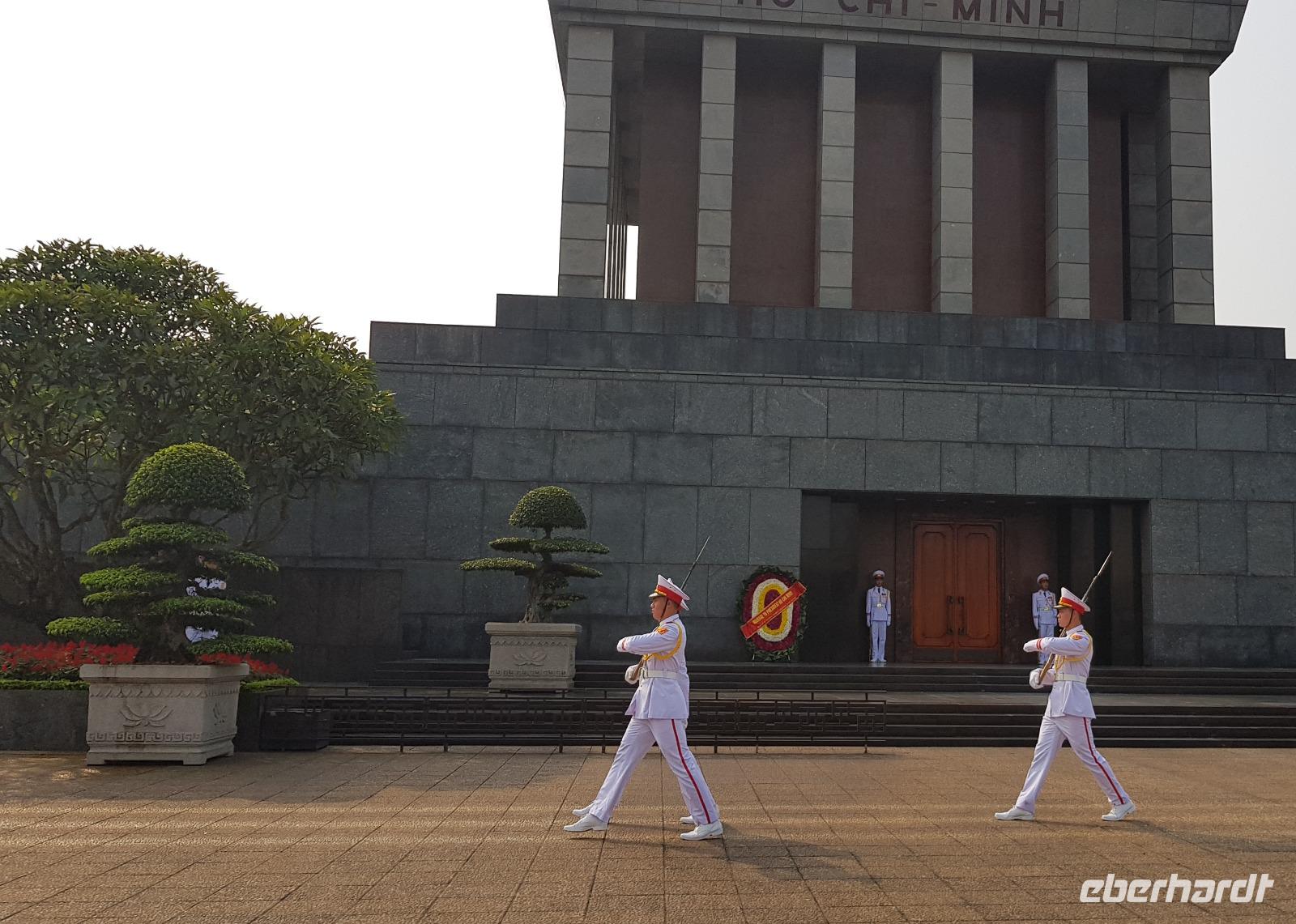 Gestärkt, sind wir zu Ho Chi Ming Mausoleum gefahren. Wir haben das Mausoleum von aussen angeschaut und haben Glück gehabt, bei der Wachablösung präsent zu sein.