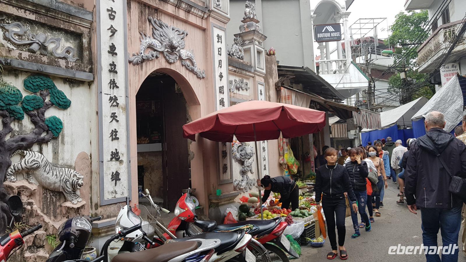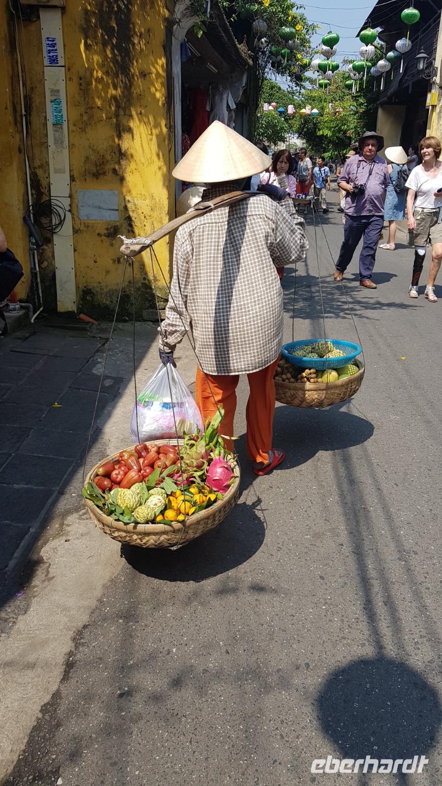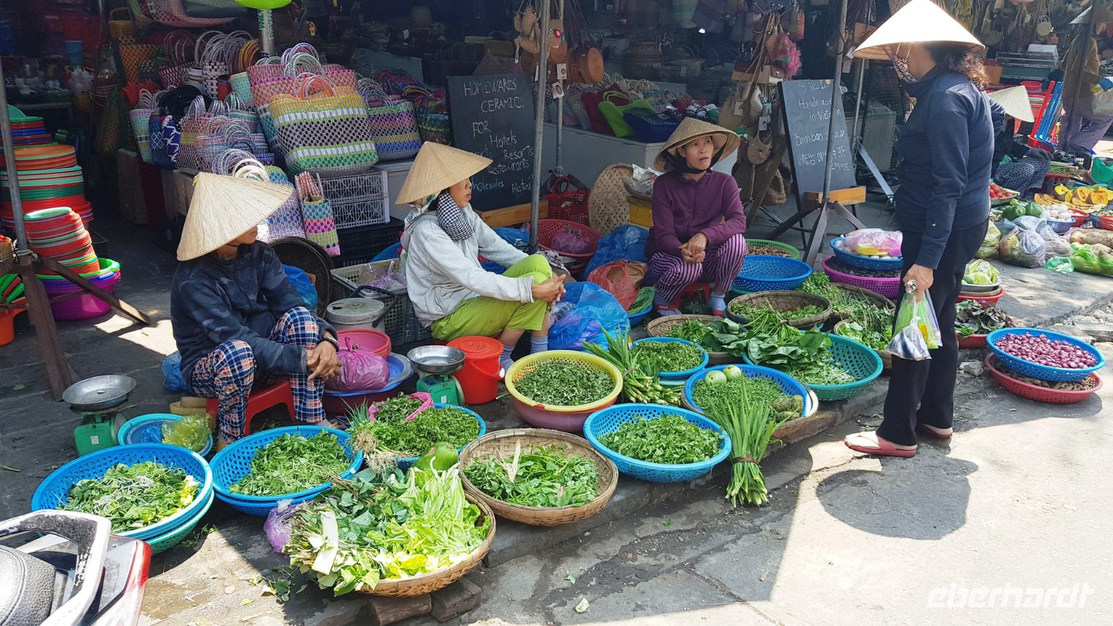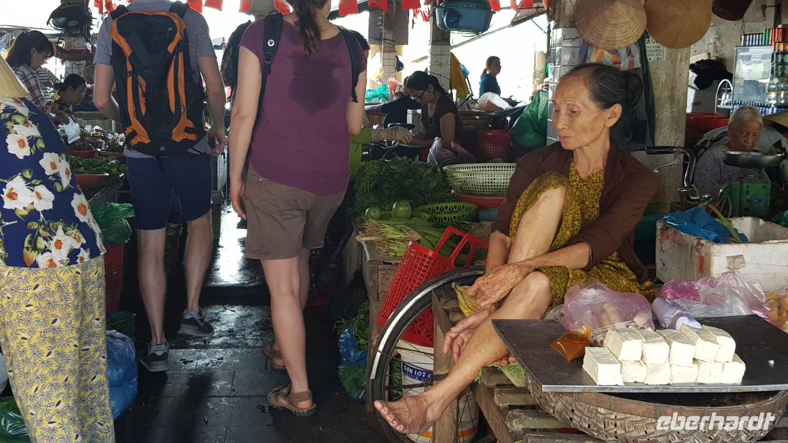 Wir sind durch die kleinen Gassen gelaufen, haben einen Markt gesehen. Alle Geschäfte sind in Vietnam auch samstags und sonntags geöffnet. Sie arbeiten normalerweise bis 21:30. Viele Leute verkaufen ihre Ware auf der Strasse oder am Markt. Man hat das Gefühl, die ganze Altstadt wäre ein grosser Markt. Alle Produkte sind sehr frisch, man benutzt keine Kühlfächer.