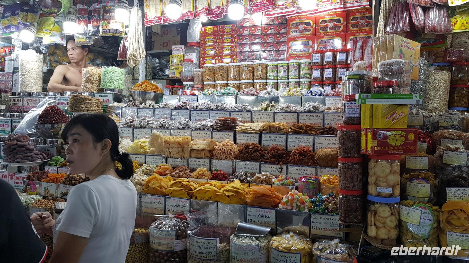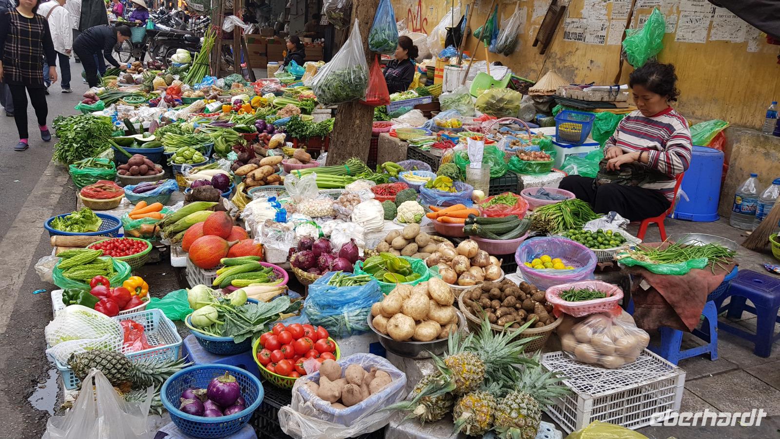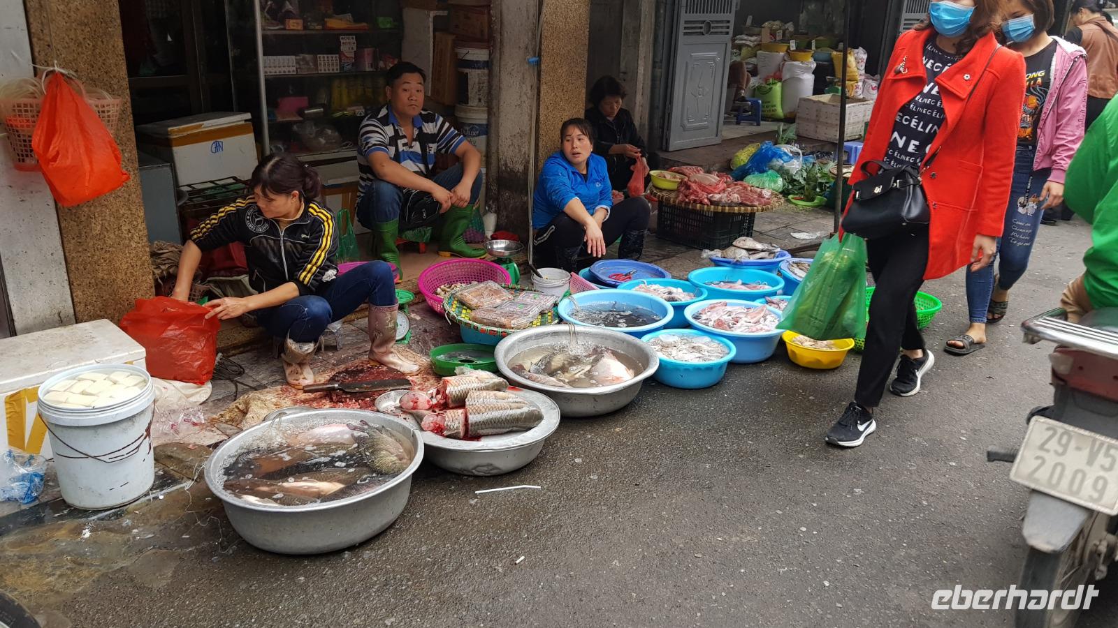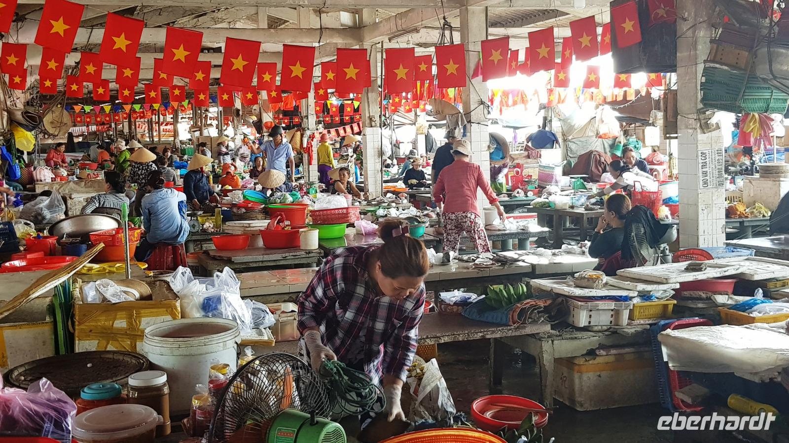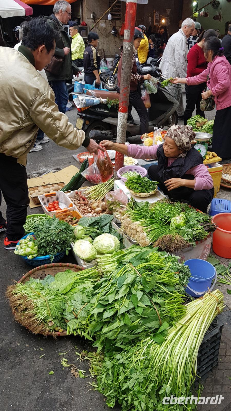 Wir sind durch die kleinen Gassen gelaufen, haben einen Markt gesehen. Alle Geschäfte sind in Vietnam auch samstags und sonntags geöffnet. Sie arbeiten normalerweise bis 21:30. Viele Leute verkaufen ihre Ware auf der Strasse oder am Markt. Man hat das Gefühl, die ganze Altstadt wäre ein grosser Markt. Alle Produkte sind sehr frisch, man benutzt keine Kühlfächer.