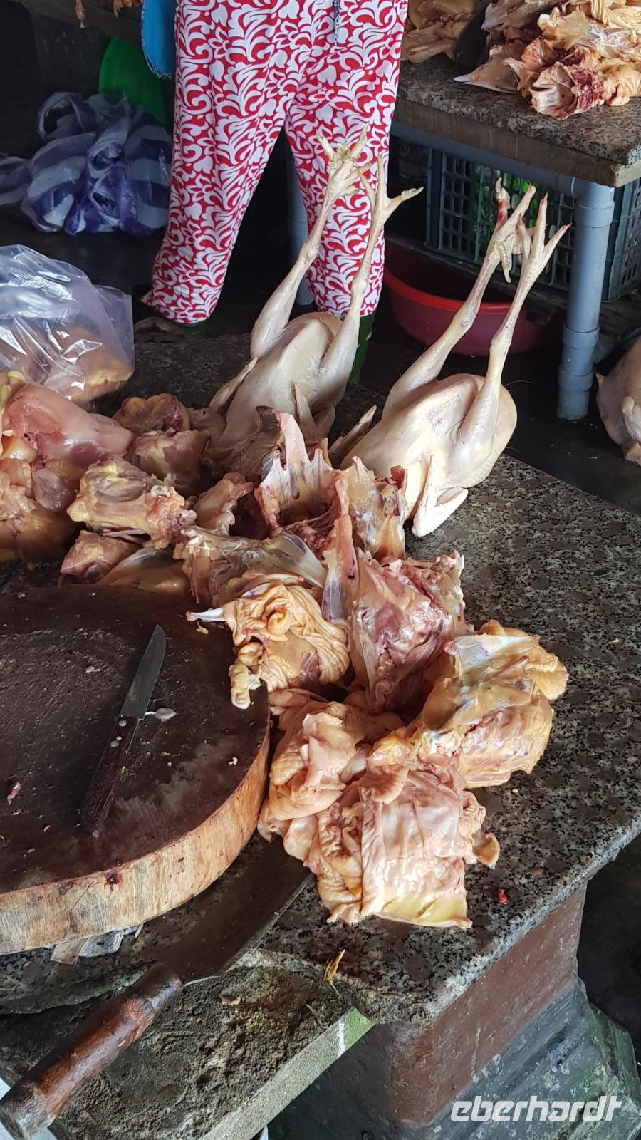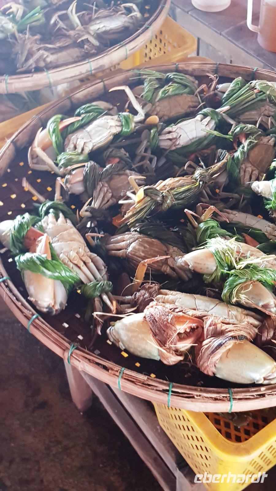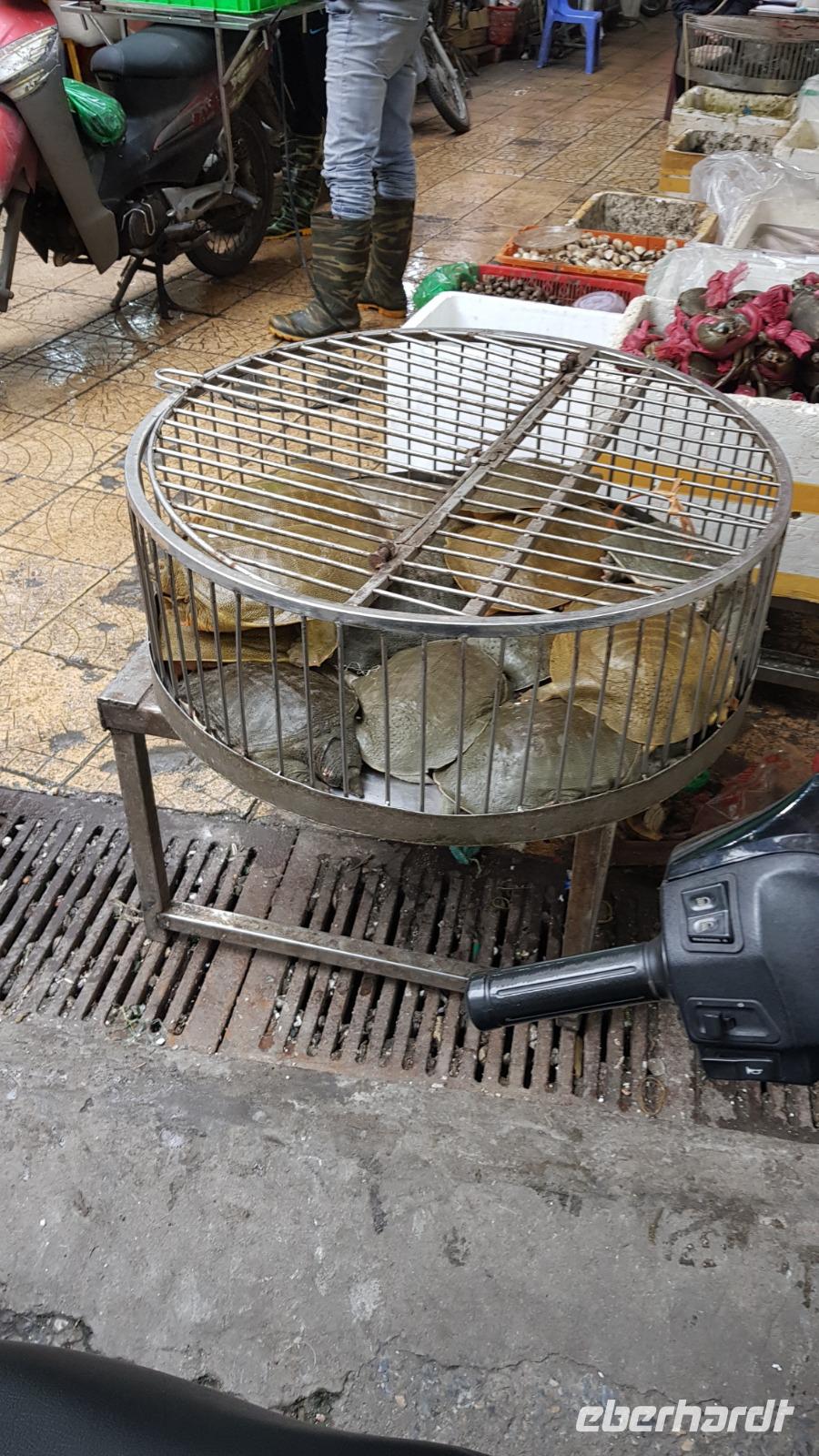 Mit unserem Guide sind wir zu dem Markt gegangen. Es gab lebendige Frösche, die man kaufen konnte. Später auf dem Nachtmarkt haben wir die gleichen Frösche gegrillt gesehen.
