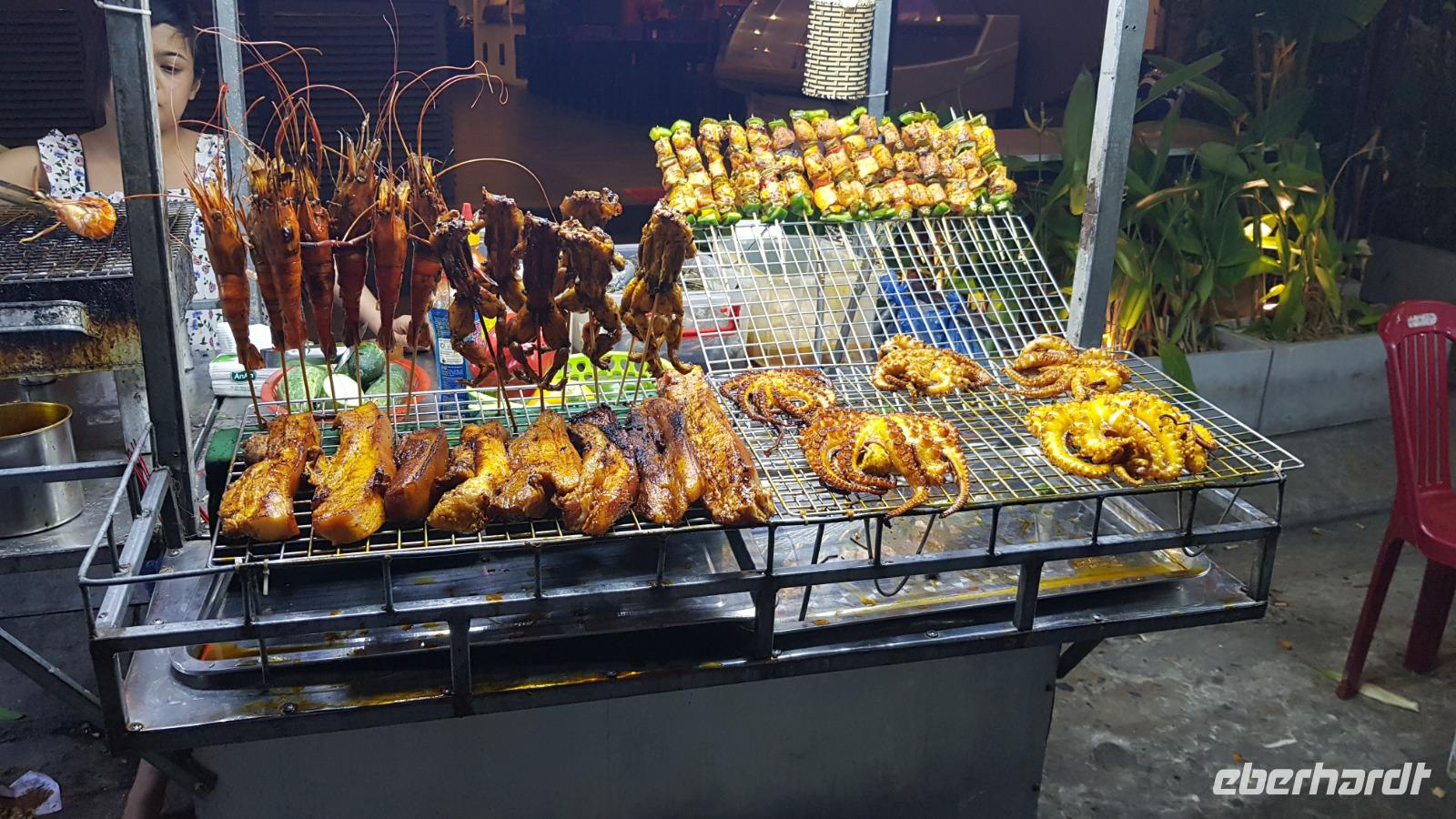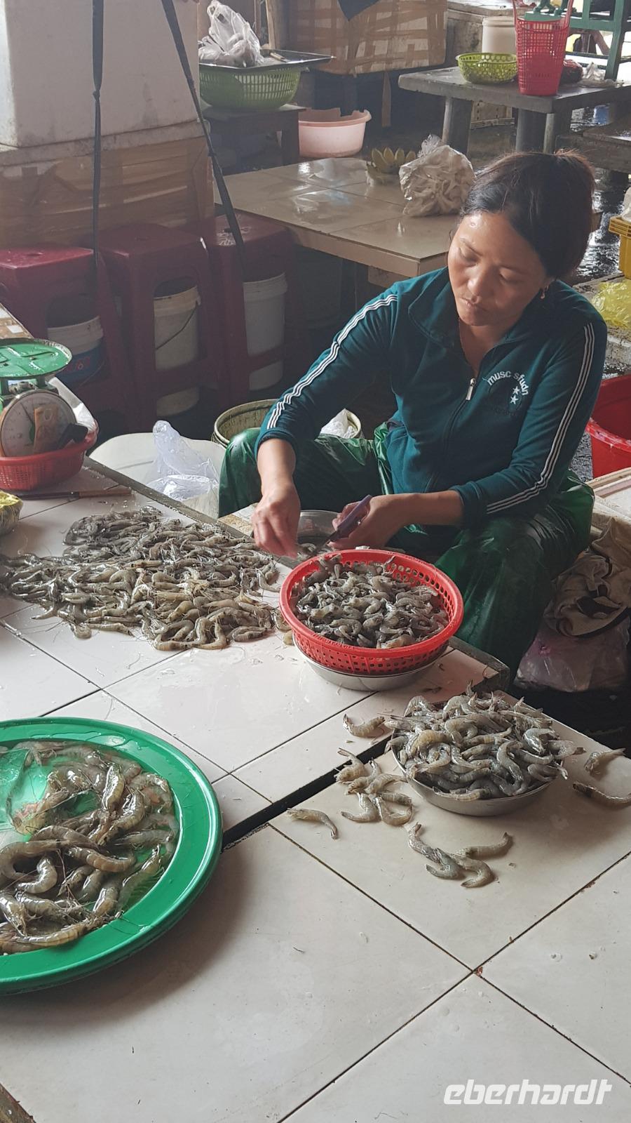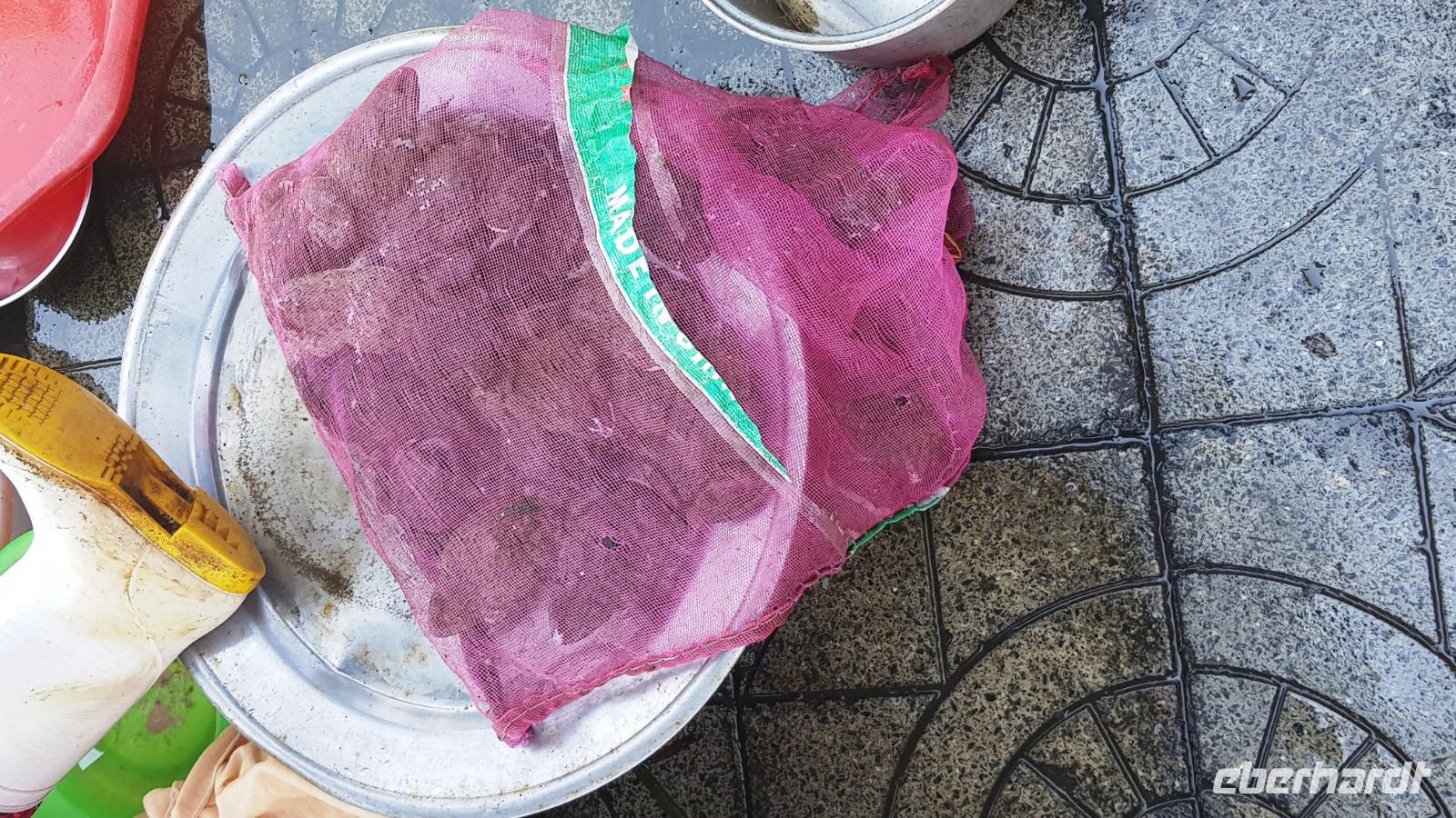 Mit unserem Guide sind wir zu dem Markt gegangen. Es gab lebendige Frösche, die man kaufen konnte. Später auf dem Nachtmarkt haben wir die gleichen Frösche gegrillt gesehen.