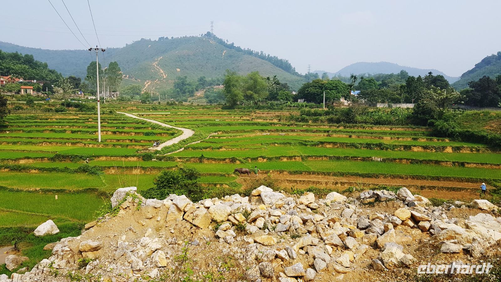 Es gibt eine Pagode, nicht weit oben auf dem Berg. Der Sicht von dort ist besonders schön. Das ganze befindet sich in Ninh Binh Region.