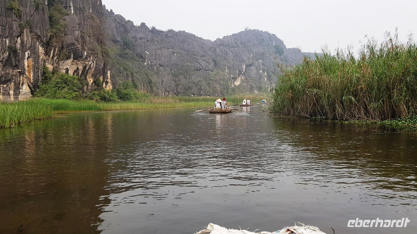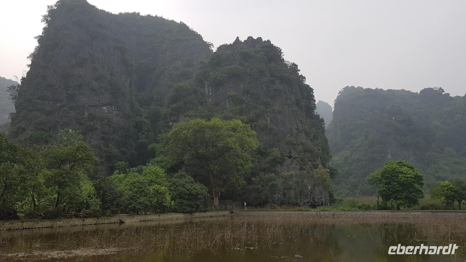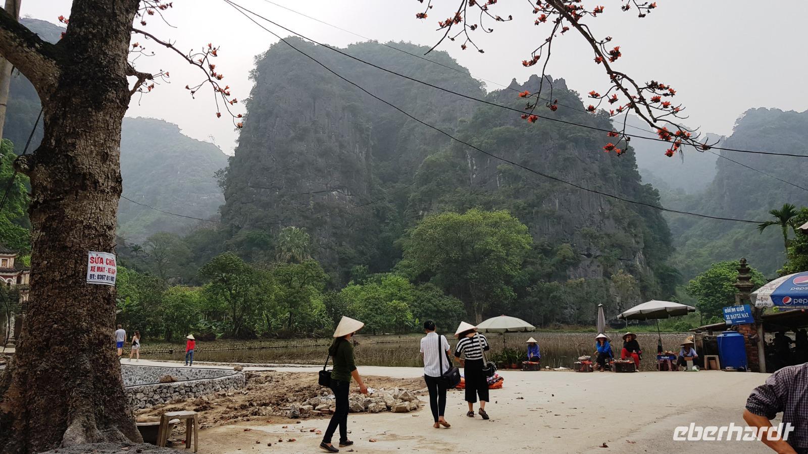 Wir haben dem Paar gratuliert und sind weiter gefahren. Unser Weg führte uns heute zu der trockenen Ha Long Bucht. Das ist eine Felsengegend, sehr ähnlich der eigentlichen Ha Long Bucht. Sie befindet sich aber am Festland und wurde deswegen eine trockene Ha Long Bucht genannt.