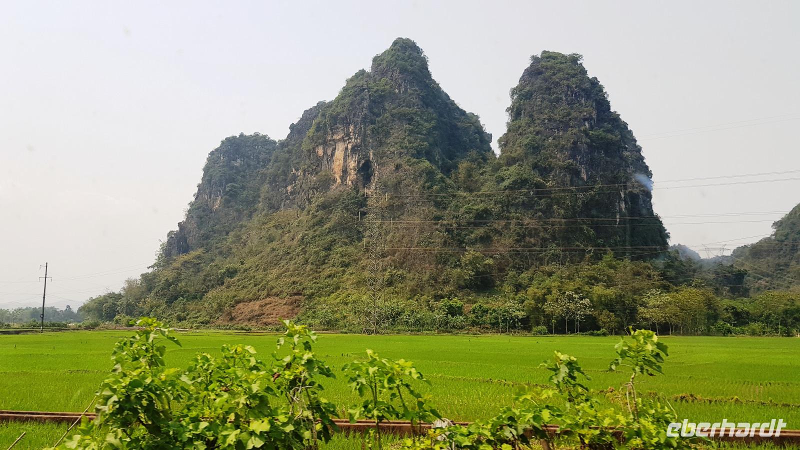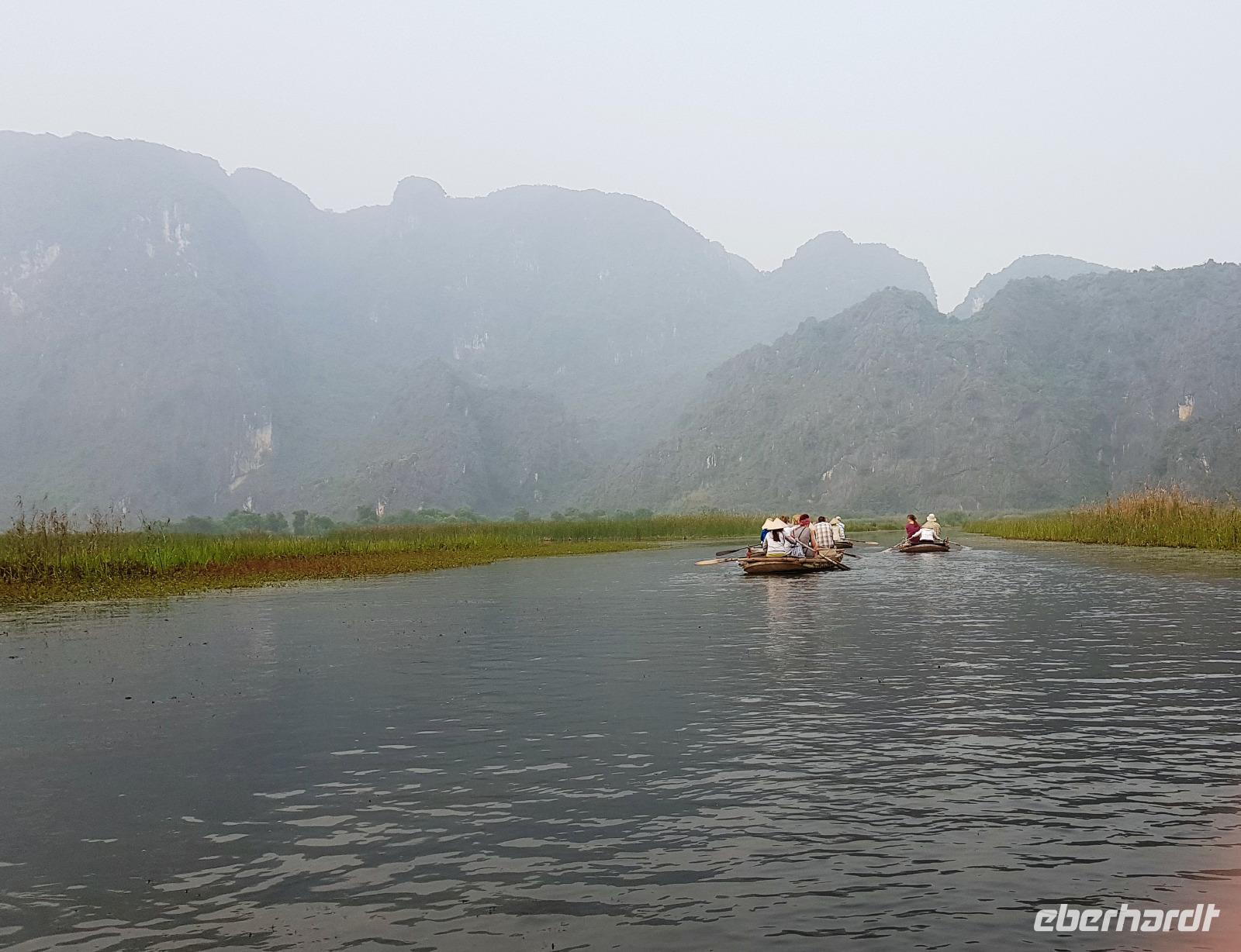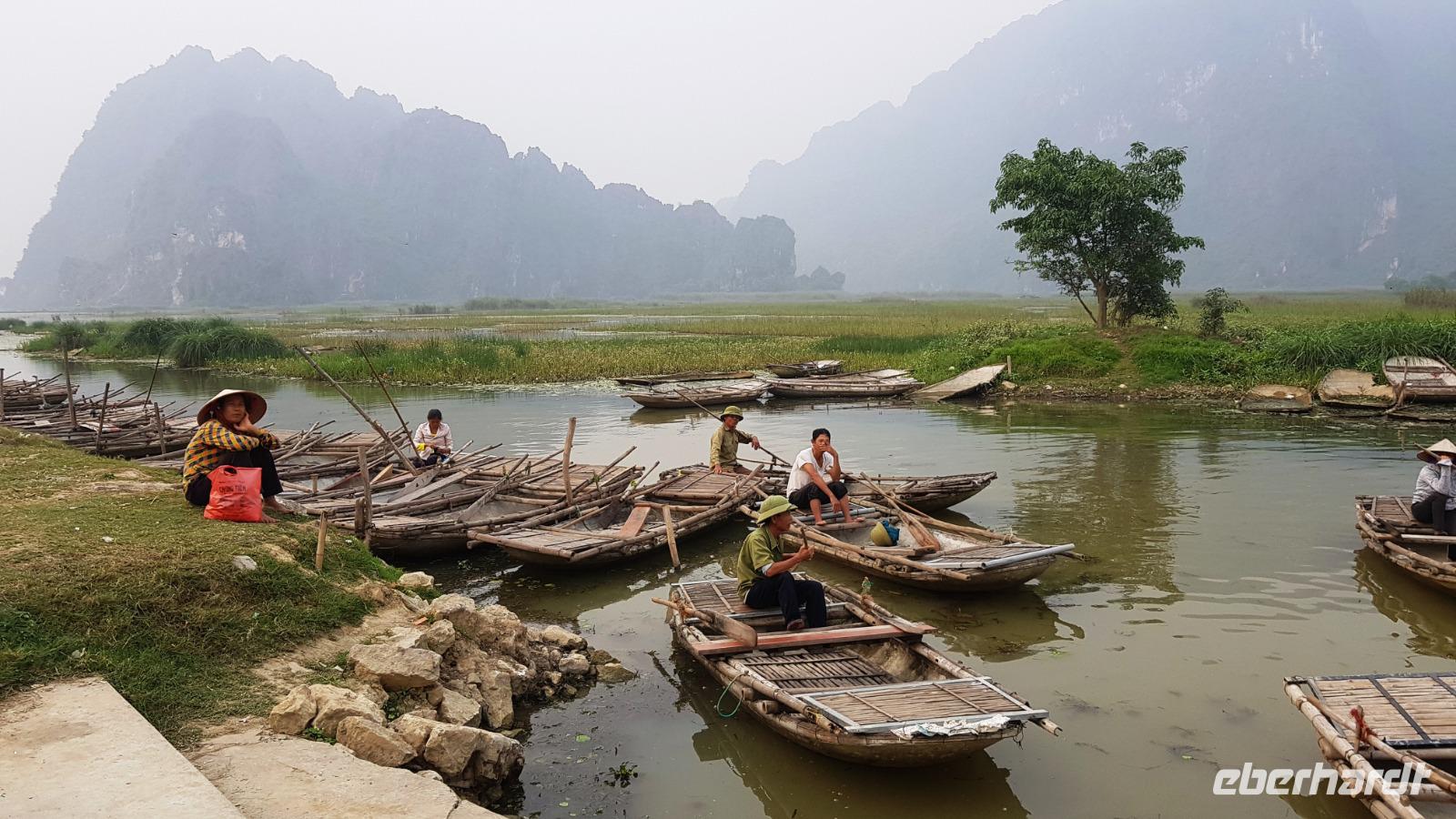 Wir haben dem Paar gratuliert und sind weiter gefahren. Unser Weg führte uns heute zu der trockenen Ha Long Bucht. Das ist eine Felsengegend, sehr ähnlich der eigentlichen Ha Long Bucht. Sie befindet sich aber am Festland und wurde deswegen eine trockene Ha Long Bucht genannt.