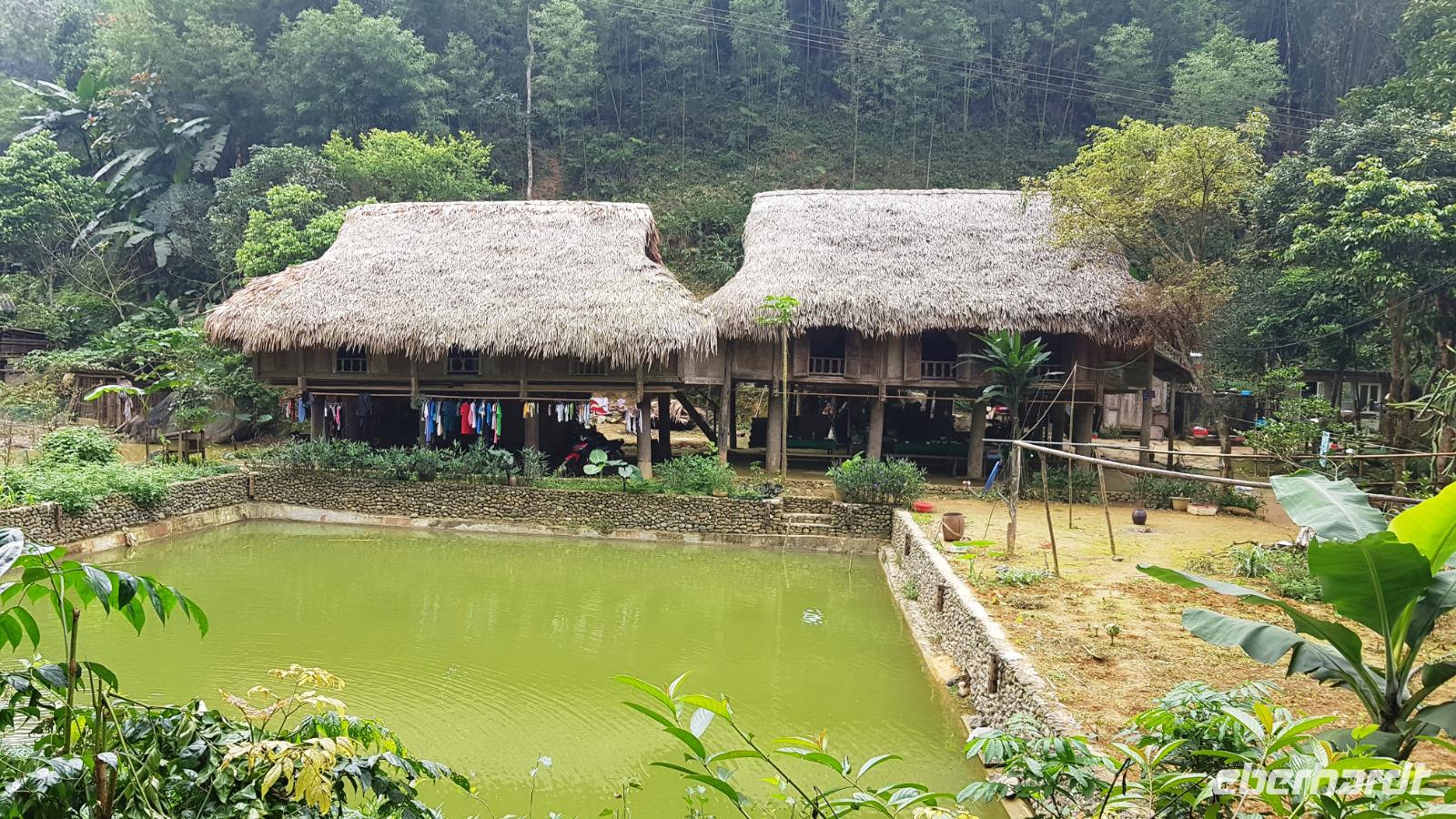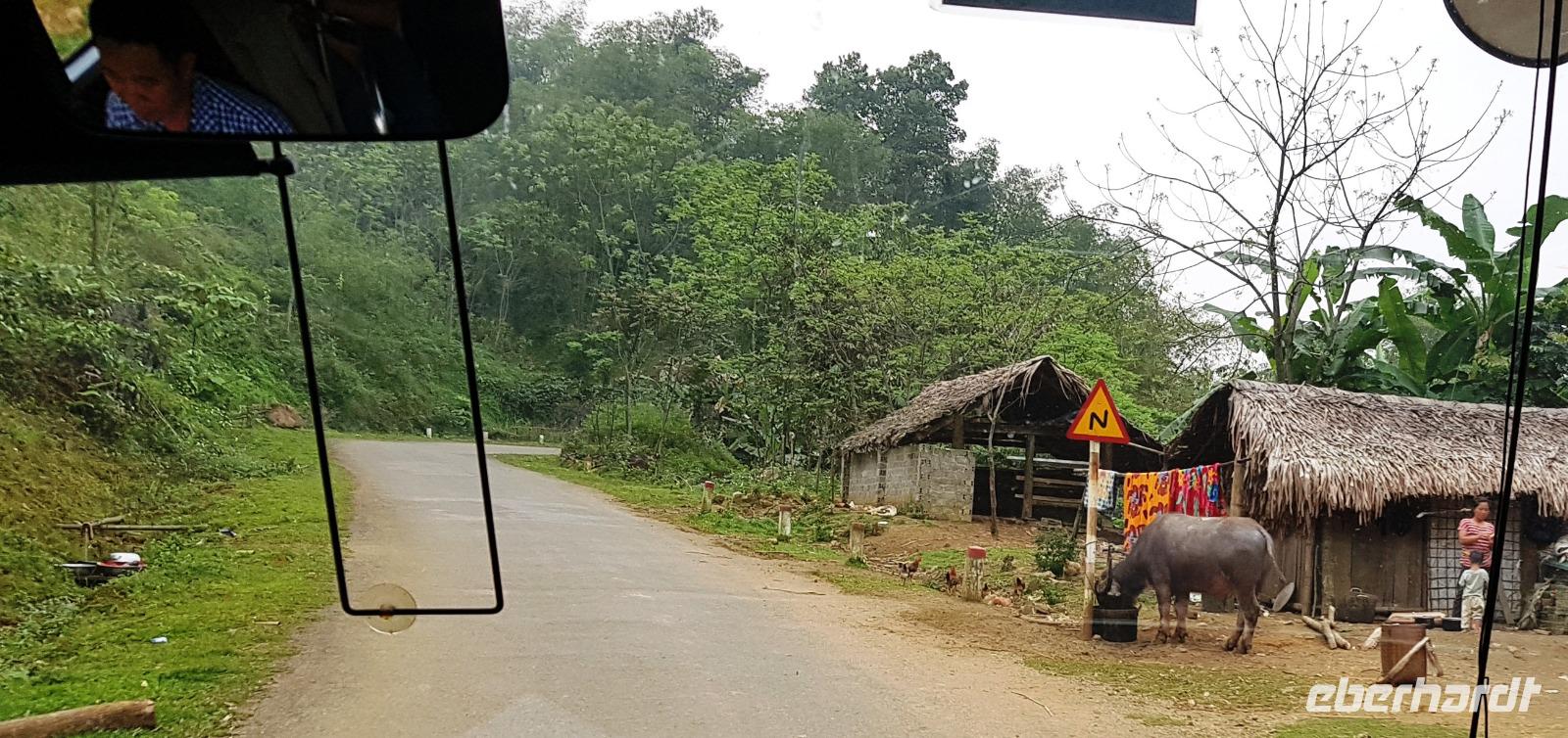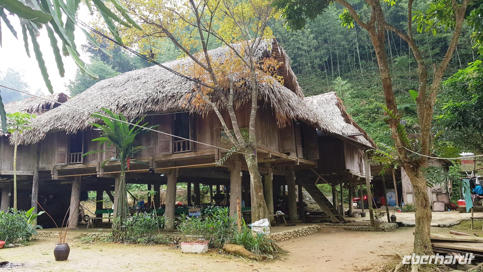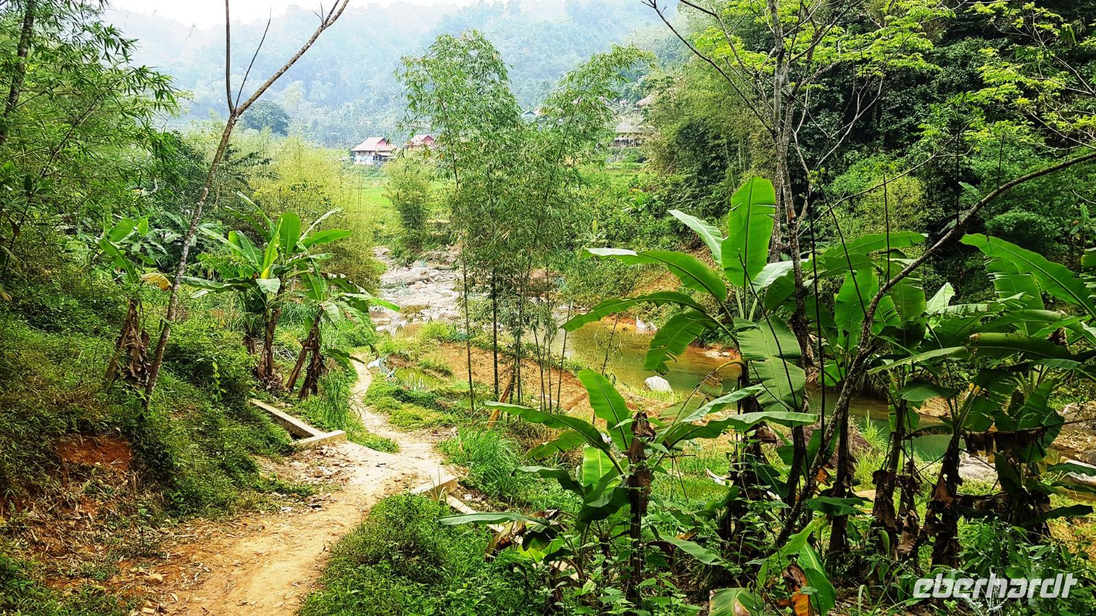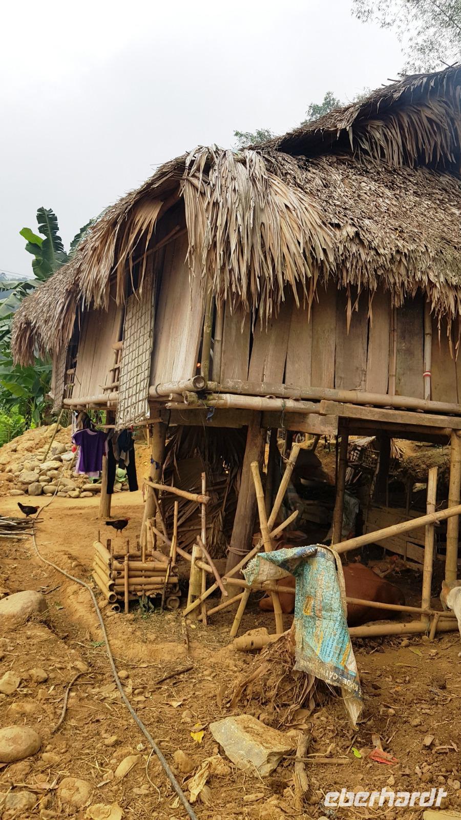 Abends haben wir unseren Bus verlassen, weil er nicht weiter fahren konnte. Wir sind zu dem Ort angekommen, wo schon keine Strassen waren. Der Pfad hat uns nach 2 km zu dem Haus von schwarzen Thais gebracht, wo wir diese Nacht übernachteten.