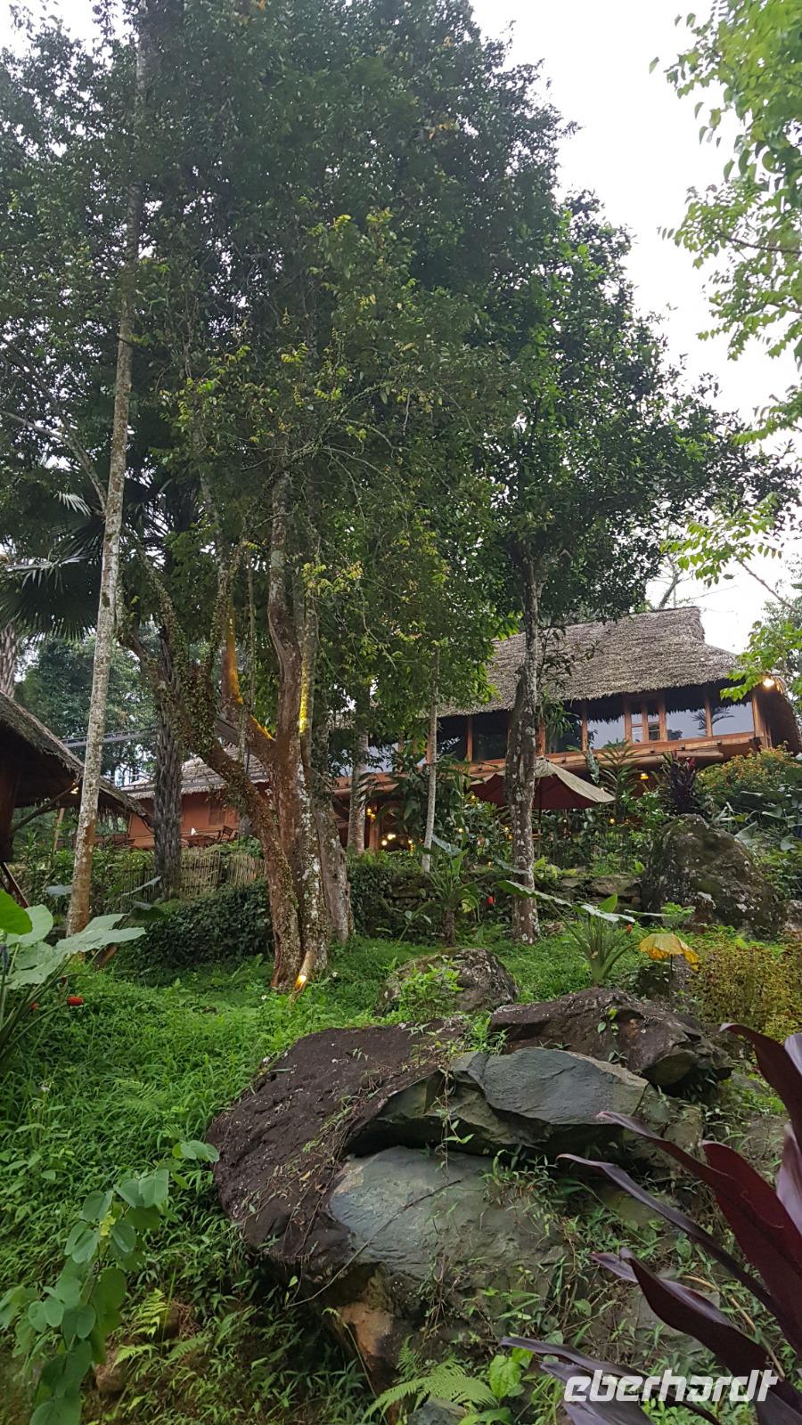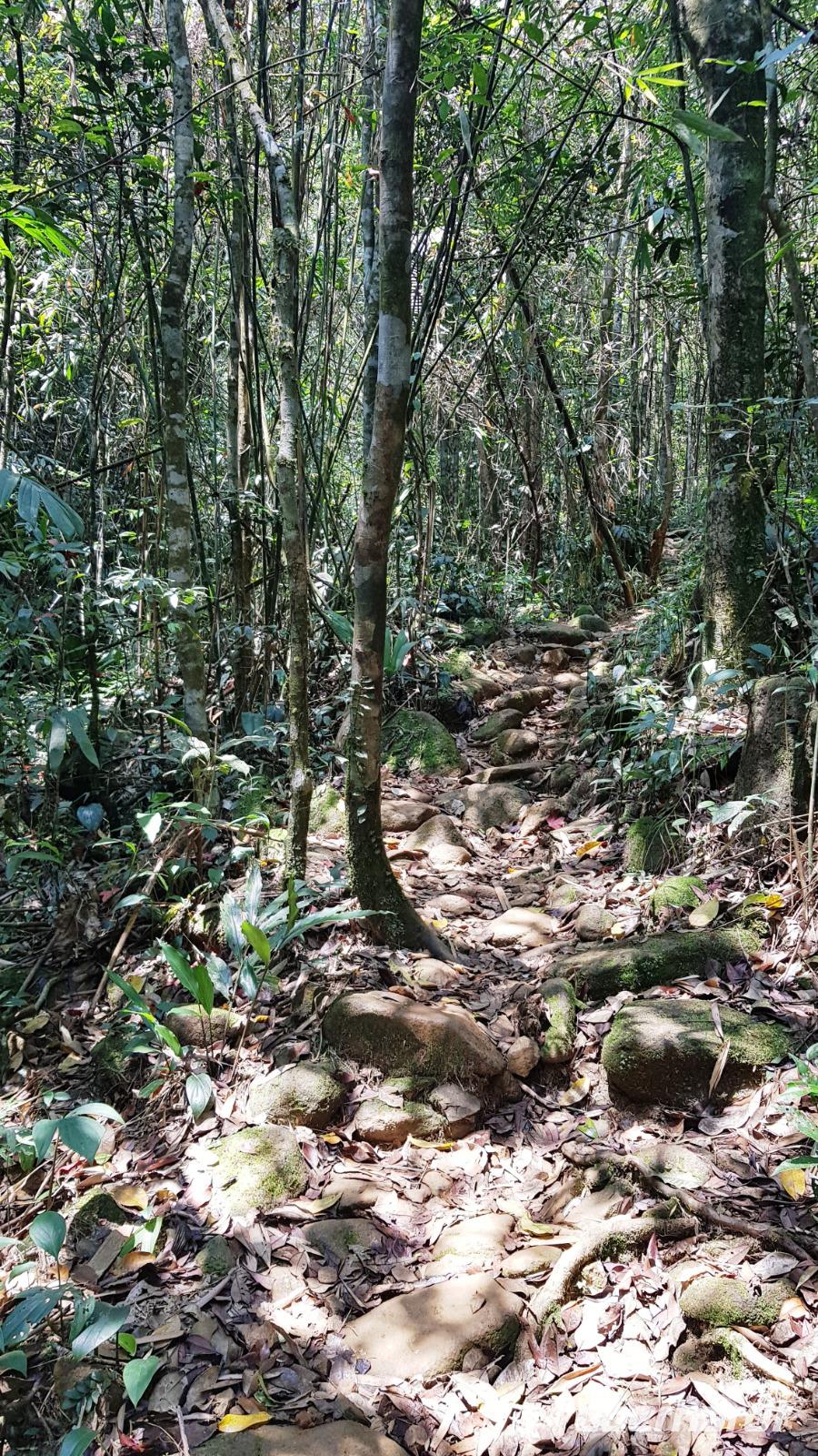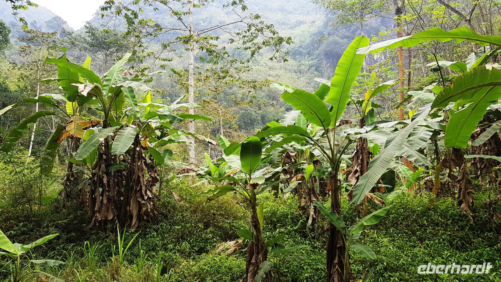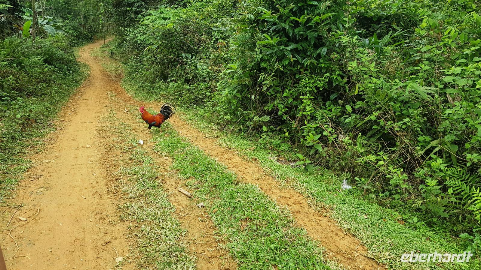 Der Pfad führte uns langsam nach oben. Unterwegs haben wir viele neue Pflanzen gesehen, der Guide hat uns ein bisschen zu einer oder anderen Pflanze erzählt. Wir wussten jetzt, wie die Bananen wachsen, oder was für Blume eine Teepflanze hat.