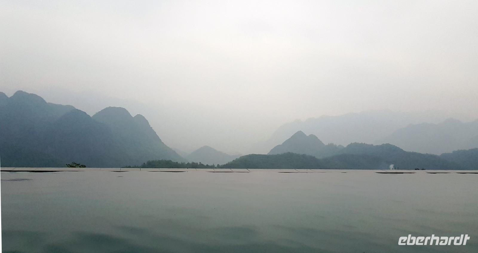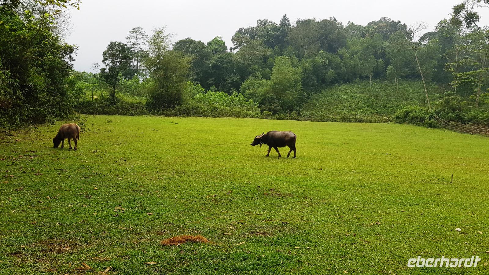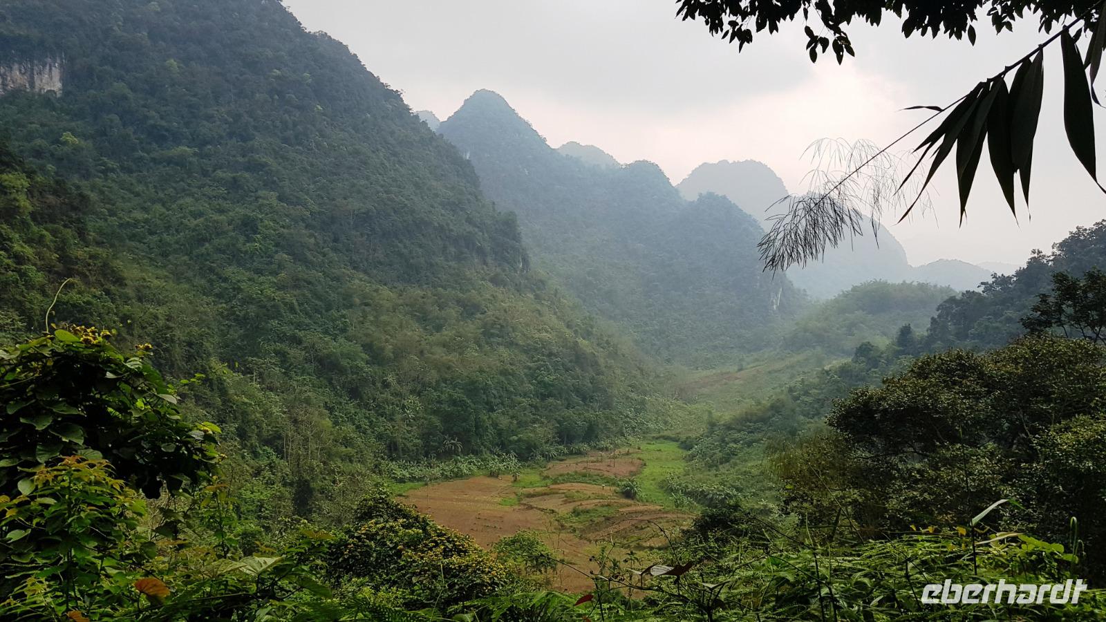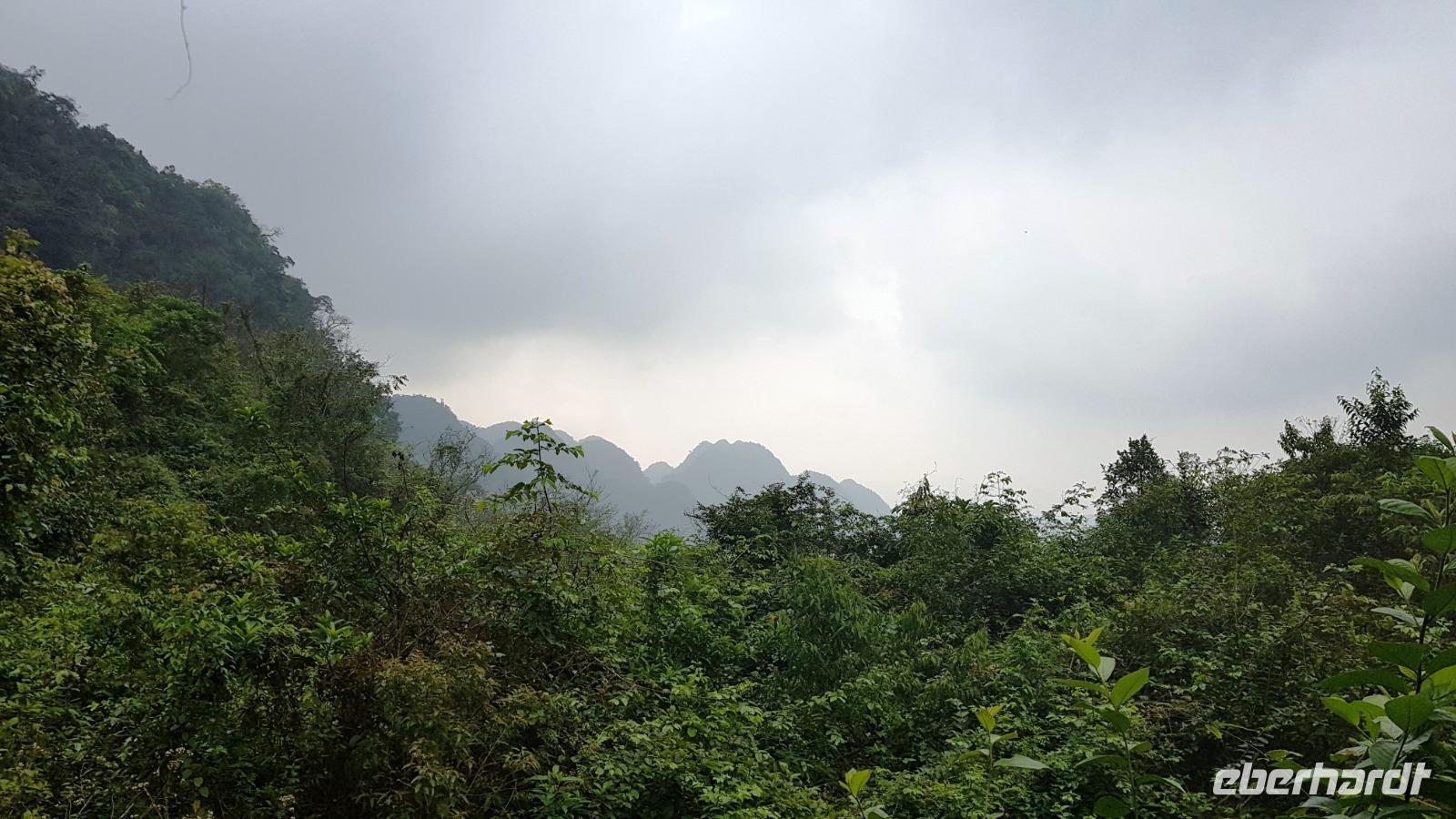 Der nächste Tag hat uns mit dem warmen Wetter begrüsst. Wir sind aus der Stadt herausgefahren und die üblichen Stadtbilder wurden durch die grünen Reisfelder ersetzt. Hier und da haben wir Bauer mit ihren Tieren gesehen. Nach langer Fahrt haben wir Stopp bei einem Kaffee gemacht. In diesem Dorf war ein Fest gewesen, deswegen waren alle Strassen feierlich geschmückt. Hier und da konnten wir Felsen sehen. Der Weg ging nach oben und unsere nächste Pause war eine Panoramaplattform.