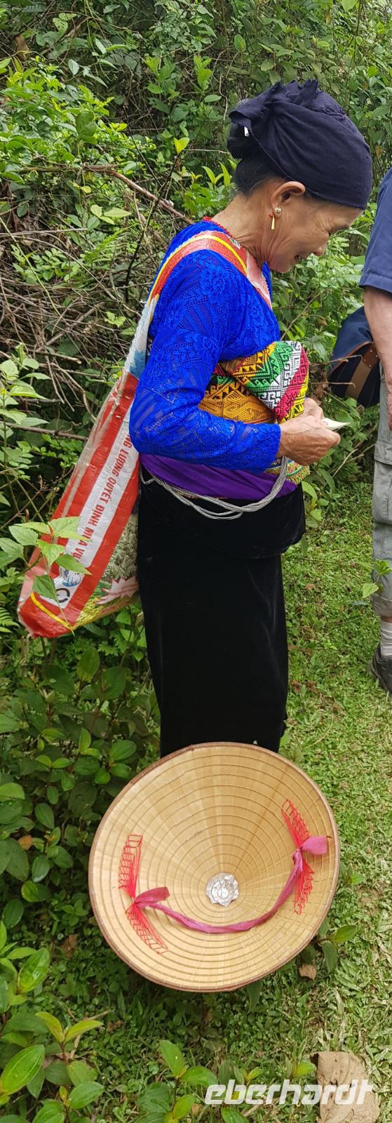 Kaum einen Touristen haben wir gesehen. Dafür kamen uns einige Einheimische entgegen. Sie sind zu der Hochzeit gegangen, die in dem Dorf daneben stattfand. Viele Leute waren festlich angezogen und haben Nationalkleidern an. Eine Frau war besonders interessant für uns wegen ihrer schwarzen Zähne. Das ist ein Zeichen von Schönheit. Damit man schwarze Zähne bekommt, kaut man spezielle Wurzeln.