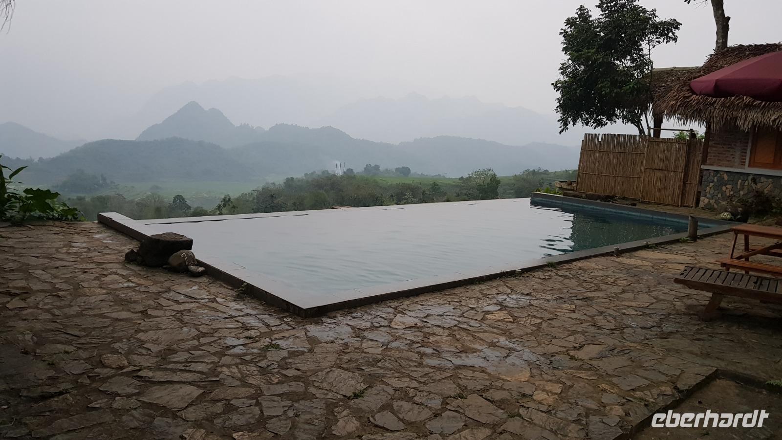 Das Hotel war eine richtige Oase der Gemütlichkeit. Grosse Zimmer, alle mit Blick auf die Berge, ein Schwimmbad, weiches Bett. Genau die richtige Erholung nach der Wanderung. Wir haben selber nicht gemerkt, wie wir eingeschlafen sind.