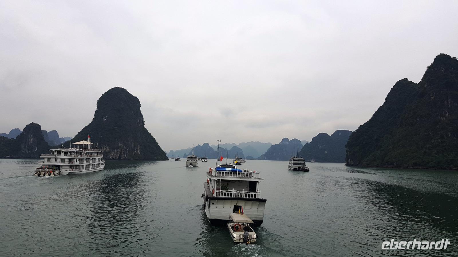 Schon waren wir in der Nähe von Ha Long Bucht, die zu UNESCO Weltkulturerbe gehört. Diese Nacht werden wir am Bord von einer typischen Dschunke verbringen.