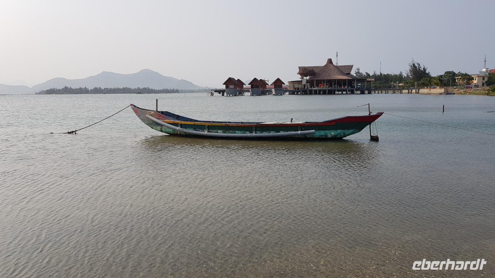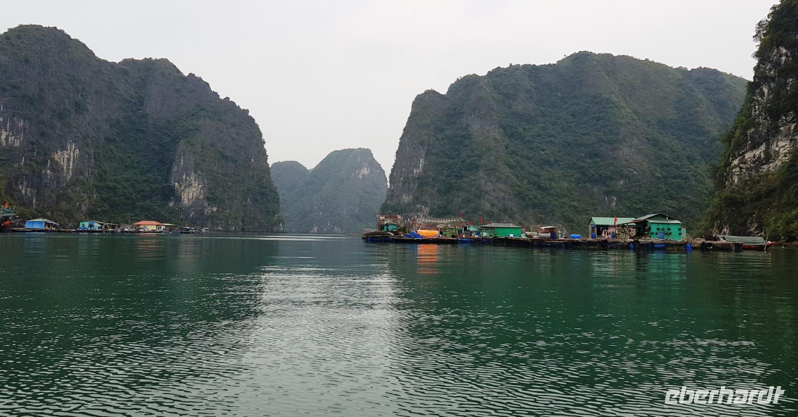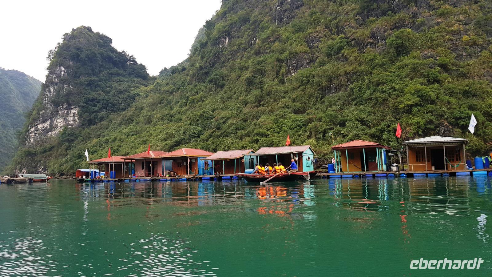 Es hat sich herausgestellt, dass in dem schwimmenden Dorf seit ein paar Jahren niemand lebt. Früher haben die Menschen dort gewohnt, aber nach und nach wurden alle aufs Festland umgesiedelt. Das ganze blieb als touristische Attraktion.