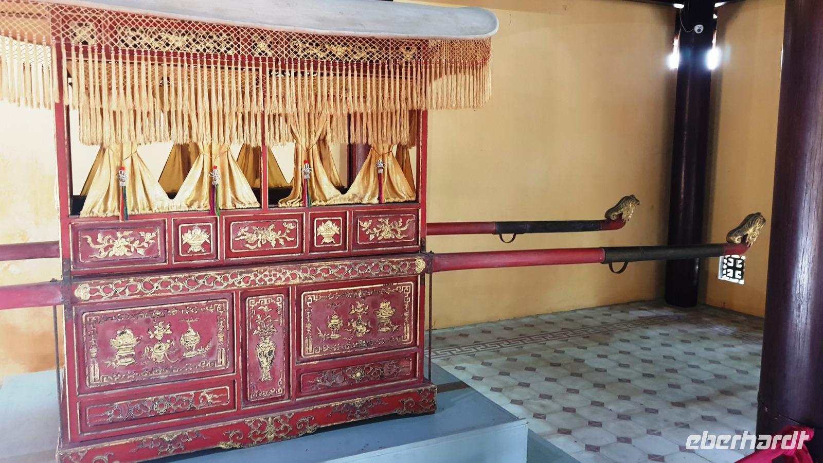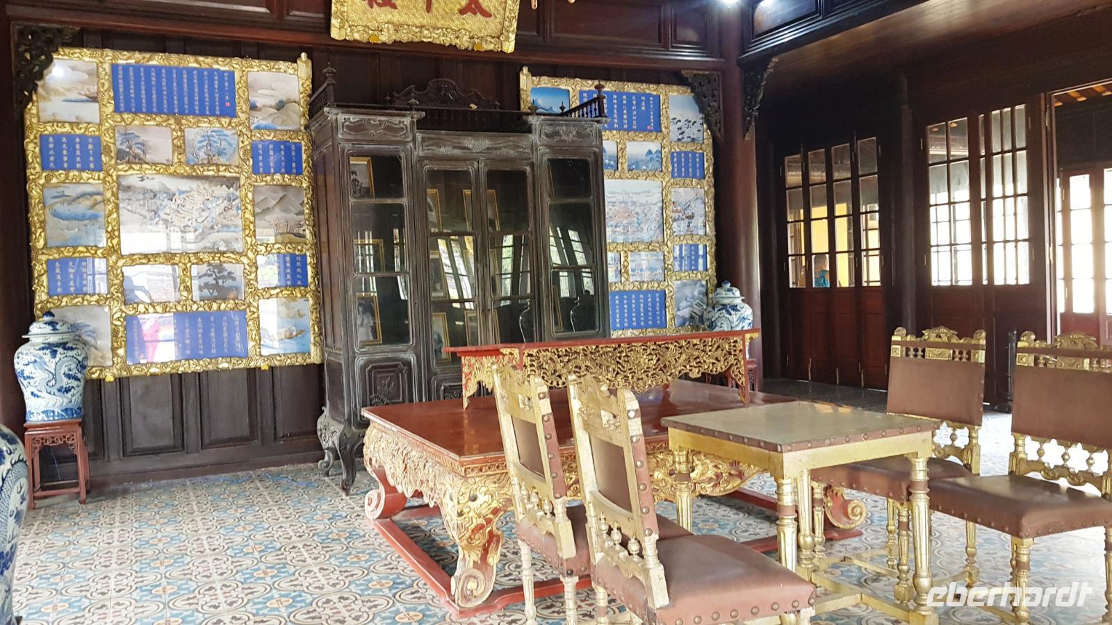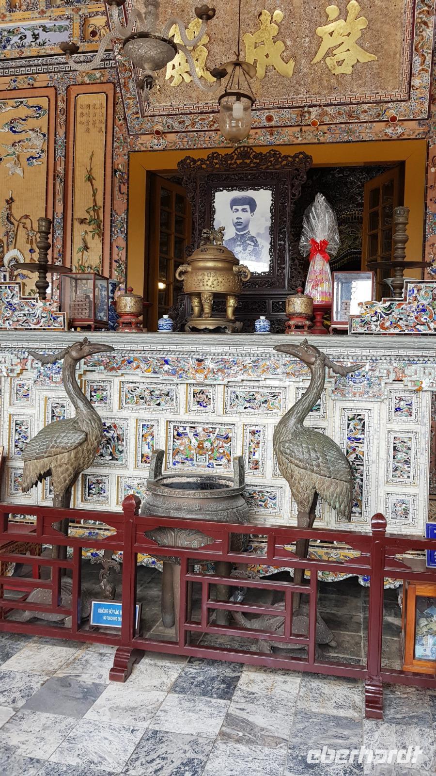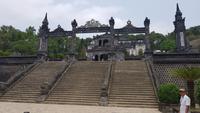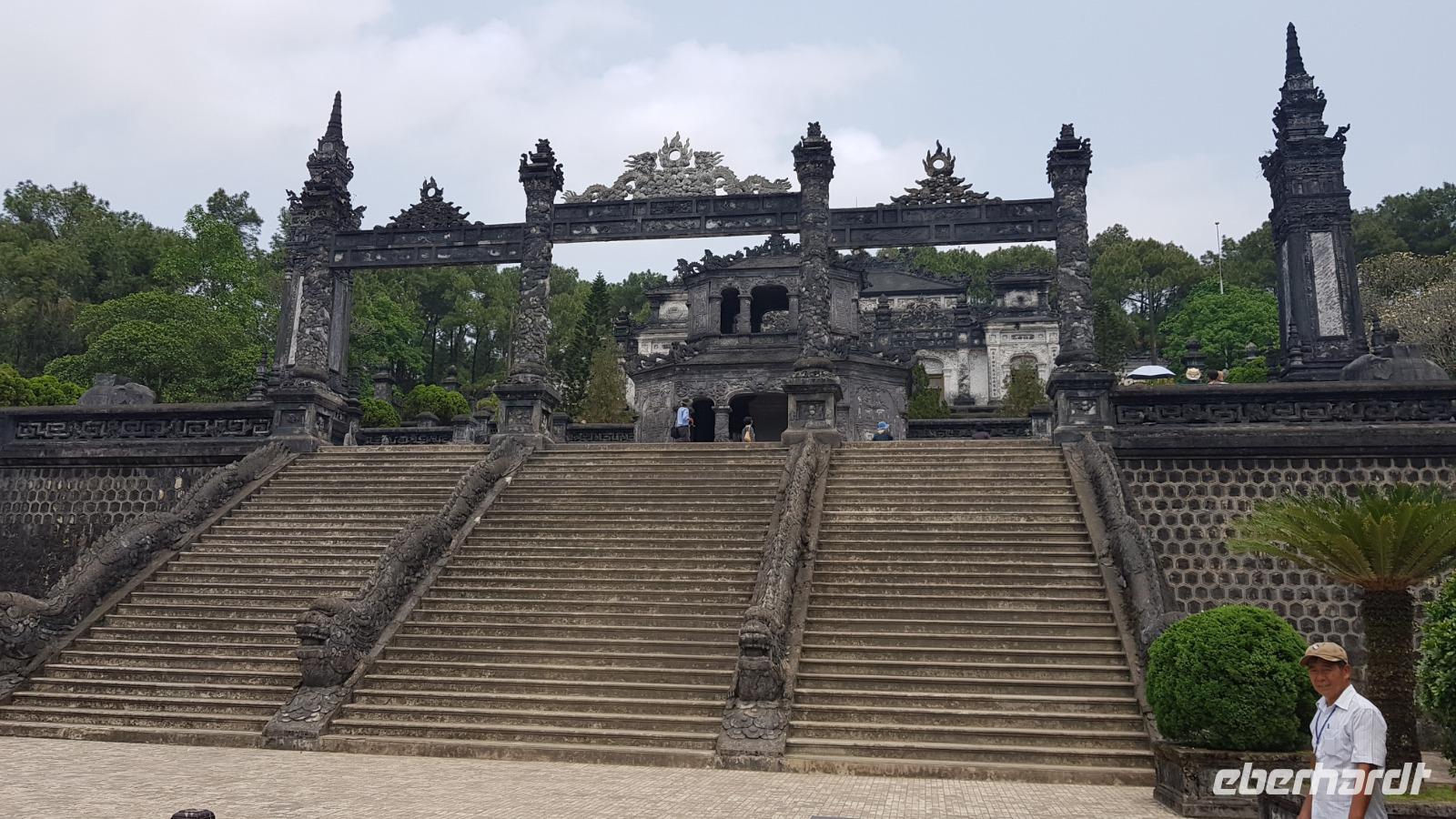 An diesem Tag früh sind wir mit unserem Guide zu der Kaiserstadt und Zitadelle von Hue gefahren. Sie befinden sich am anderen Ufer des Parfümflusses. Hier war die Residenz der Kaiser von Vietnam. Früher hiess diese Gegend eine verbotene Stadt, weil das Betreten für Nichtmitglieder der kaiserlichen Familie verboten war. Jetzt darf jeder Tourist dorthin, das ist ein grosses Museum.