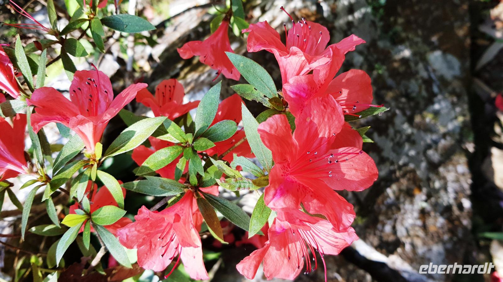 Wir haben auch eine zweite Wanderung dem Seen-Pfad entlang, gemacht. Unterwegs haben wir einen Wasserfall gesehen, viel grösser, als im Norden. Das Wasser war auch kälter als in dem anderen Wasserfall. Bei den Felsen haben wir eine Pause gemacht, unser Lunchpaket gegessen. Einige haben sich gebadet. Der Rhododendron-Pfad hat uns zu dem Felsen geführt, wo es nicht mehr weite ging. Am Ende blühte eine roter Rhododendron Strauch.