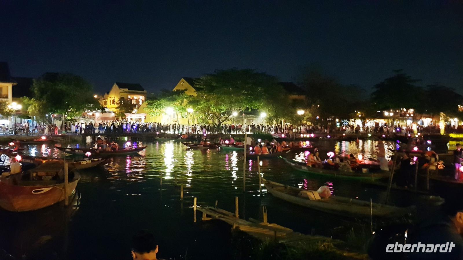 Den Abend hat uns in der Stadt von Hoi An begrüsst. Es war ein Vollmond und deswegen ein Fest. Zu unserem Hotel konnten wir nicht mit dem grossen Bus fahren und mussten deswegen 2 kleine Busse nehmen.