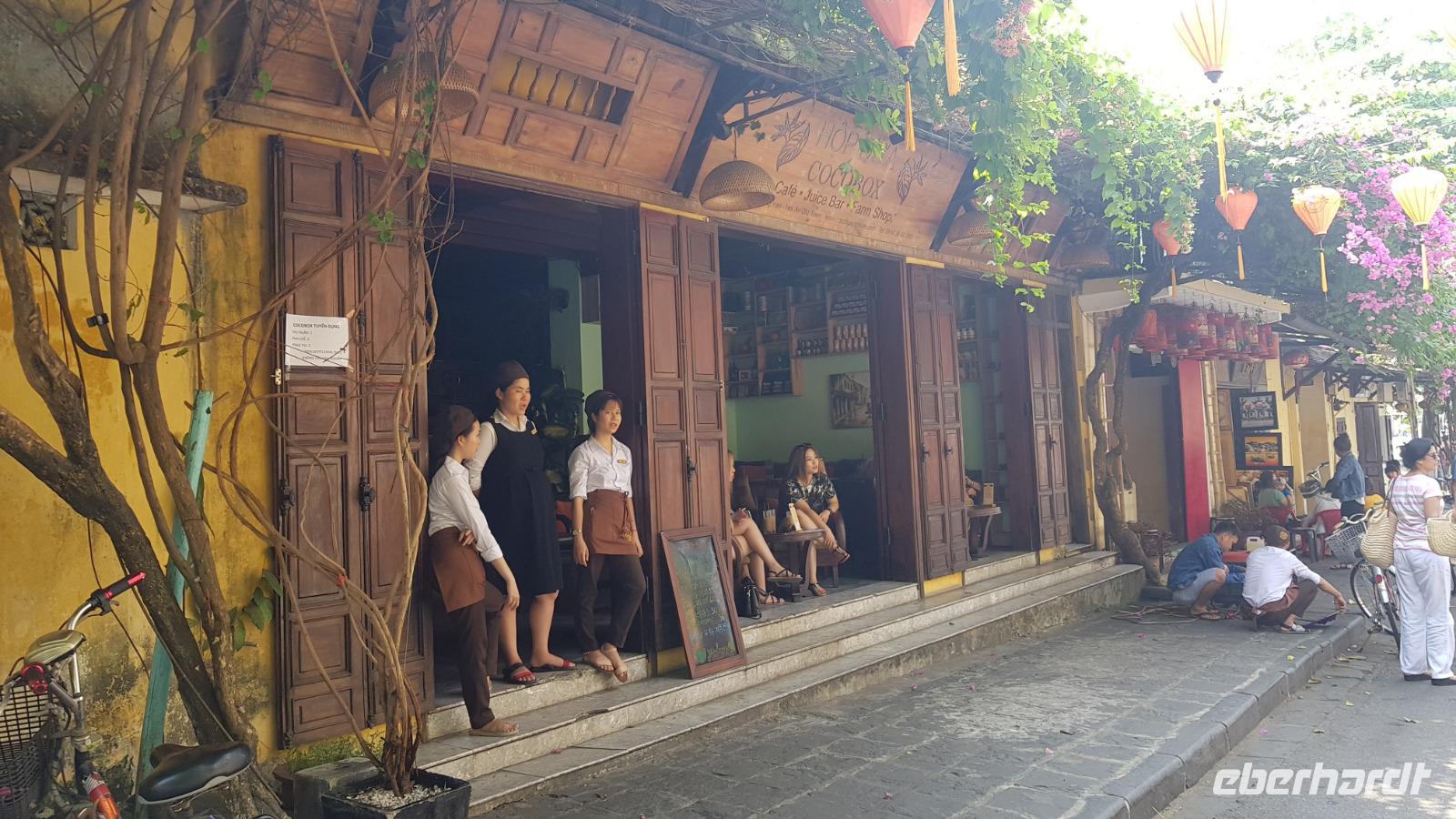 Die Stadt Hoi An gehört zu der UNESCO Weltkulturerbe. Sie ist, wahrscheinlich, die schönste von allen Städten die wir auf der Reise gesehen haben. Ziemlich klein, aber sehr schön mit bunten Laternen geschmückt, hat uns diese Stadt sehr gut gefallen. Beinahe in jedem Haus gab es ein Geschäft wo Kleidung oder Schuhe verkauft wurden. Fast jedes Geschäft war gleichzeitig eine Fabrik, wo man über Nacht Kleidung oder Schuhe machen lassen konnte.
