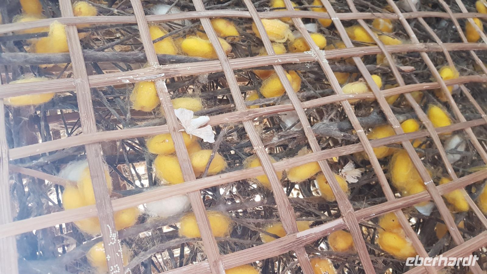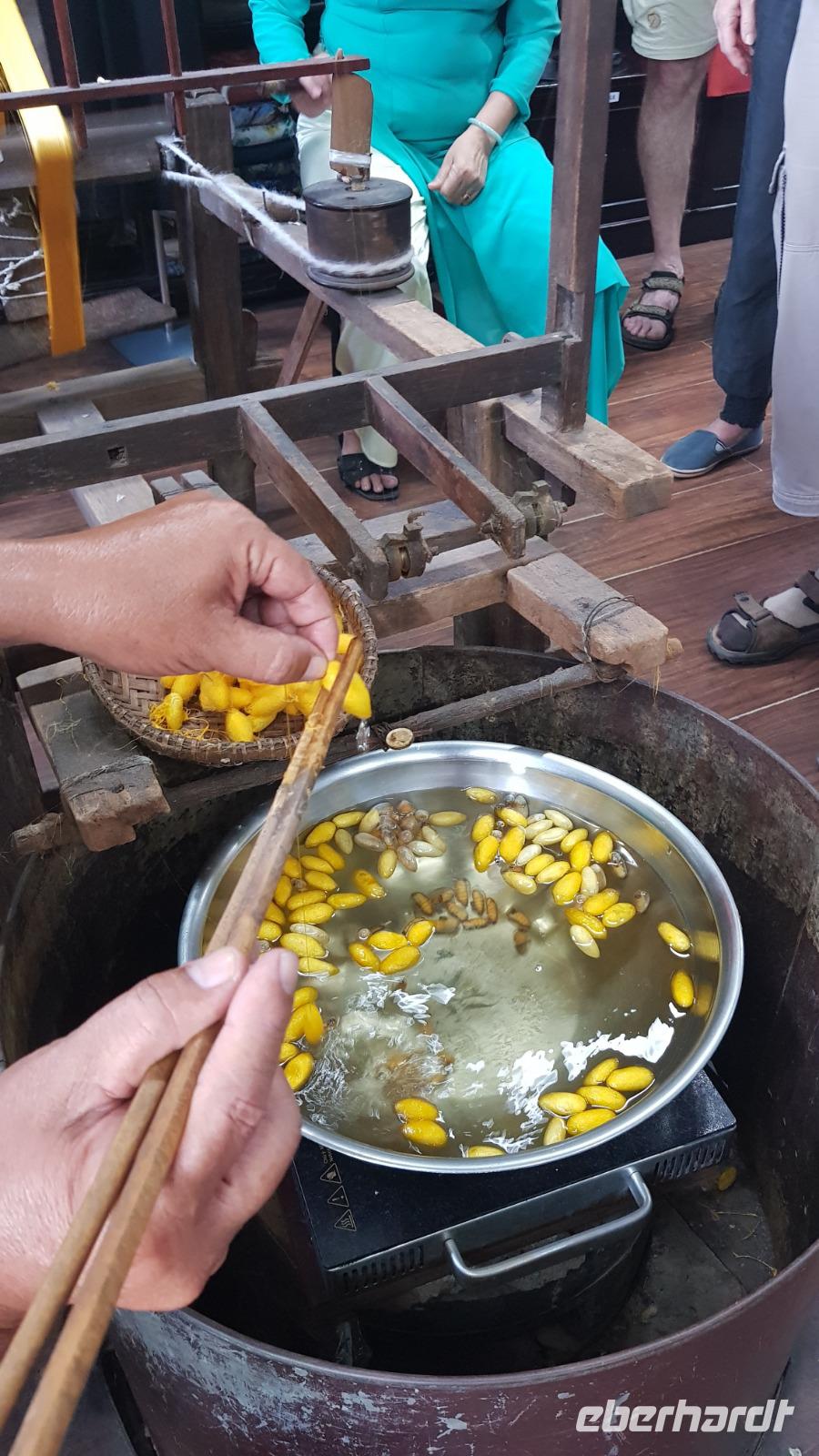 Wir sind auch in ein Geschäft hereingekommen, wo man sehen konnte, wie man Seide produziert. Es gab dort auch lebendige Seidenraupen. Wussten sie, dass Seidenraupen auch als Lebensmittel benutzt werden können?