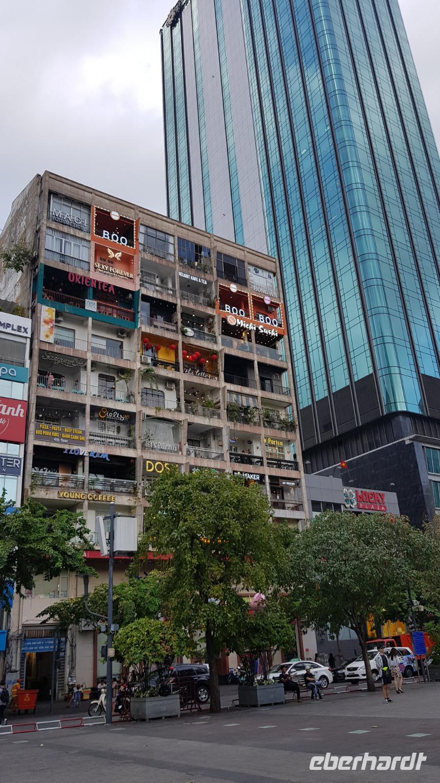 Am Nachmittag waren wir wieder in Ho Chi Min Stadt. Nachdem wir von denjenigen von der Gruppe, die zum Badeurlaub gefahren sind uns verabschiedet haben, waren wir ein bisschen in der Stadt bummeln. Bemerkenswert war ein Hochhaus, wo auf der 50. Etage ein Café sich befindet. Von dort oben hatten wir sehr schöne Blicke über die ganze Stadt.