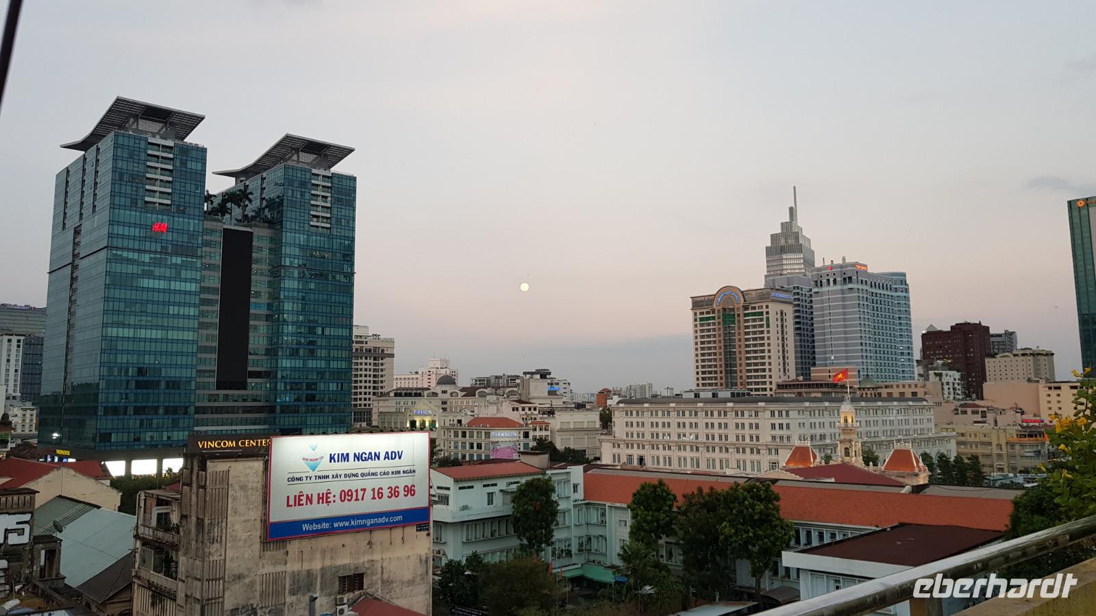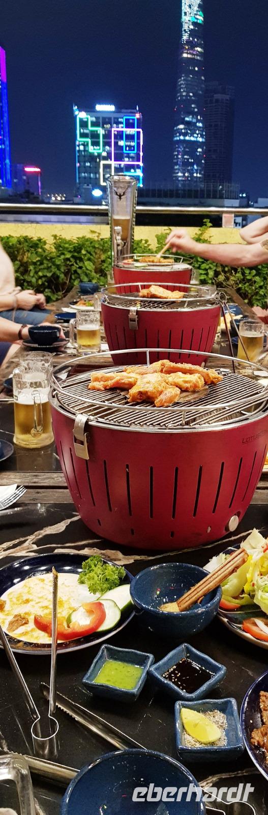 Abends haben wir uns wieder gesehen bei dem Restaurant Saigon Grill. Eine Besonderheit von diesem Restaurant war, dass die Gäste selbst ihr Essen auf den kleinen Tischgrillen vorbereiten können. Von der Restaurantterrasse konnten wir die ganze Stadt sehen.