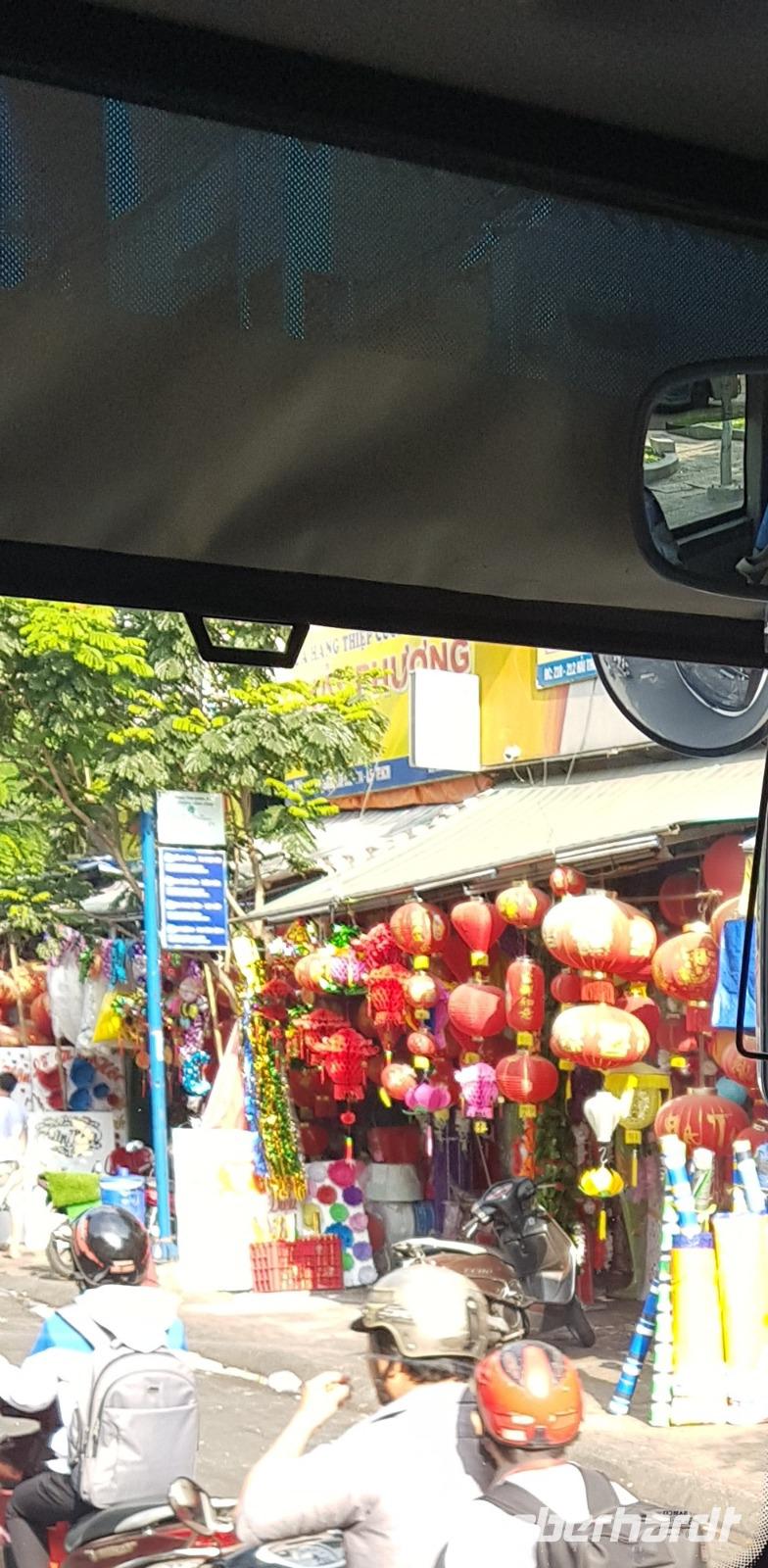 Unser Weg zu den Cu Chi Tunnels fuhr uns durch den Chinesischen Viertel in Ho Chi Min Stadt. Es war leicht zu erkennen, alle Läden waren mit roten Girlanden geschmückt.