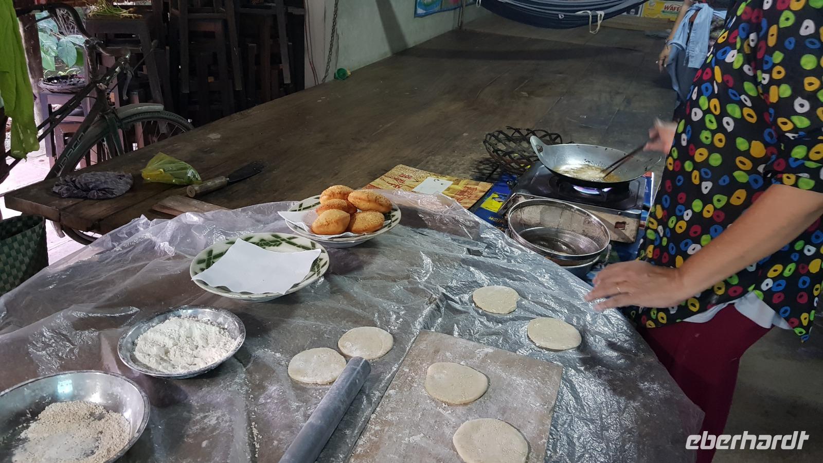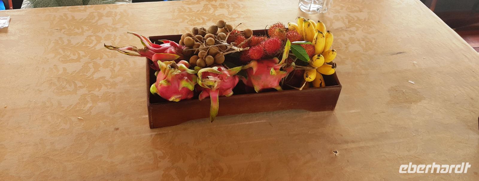 Bald sind wir zu der einheimischen Familie angekommen, wo schon ein Mittagessen für uns serviert wurde. Im Nachhinein betrachtet, war das eins der besten Essen auf der Reise. Alle Gerichte sehr einfach gemacht, aber alle Produkte so frisch und lecker.