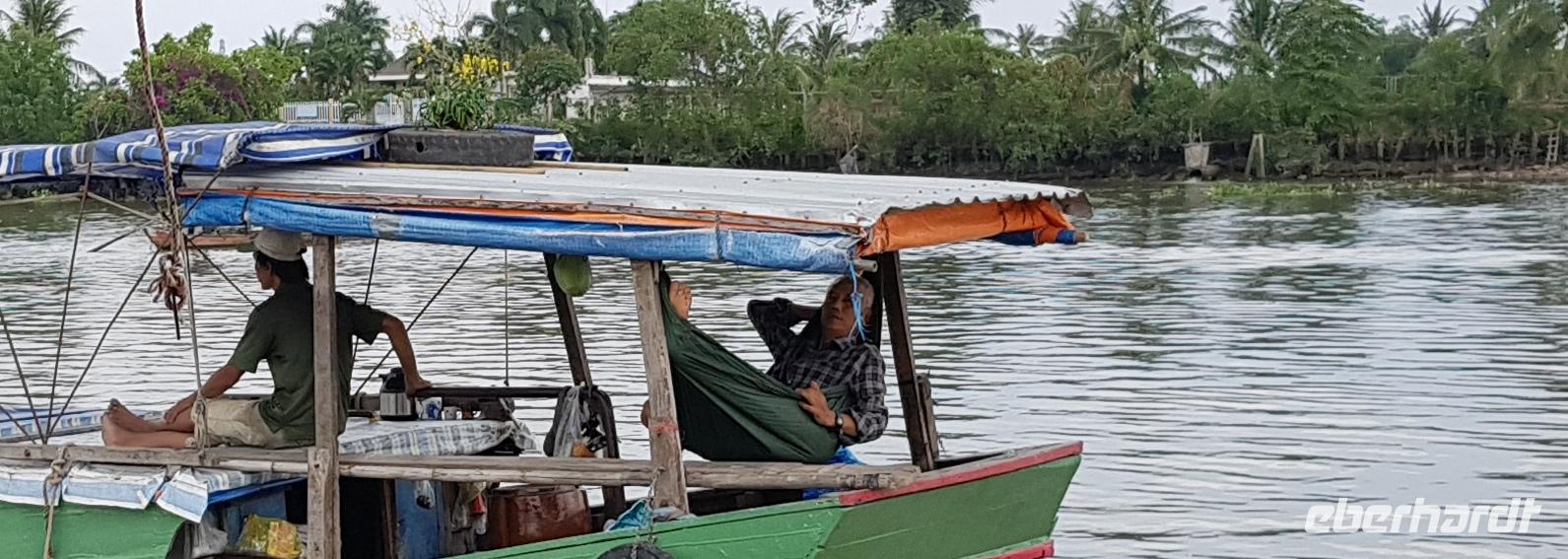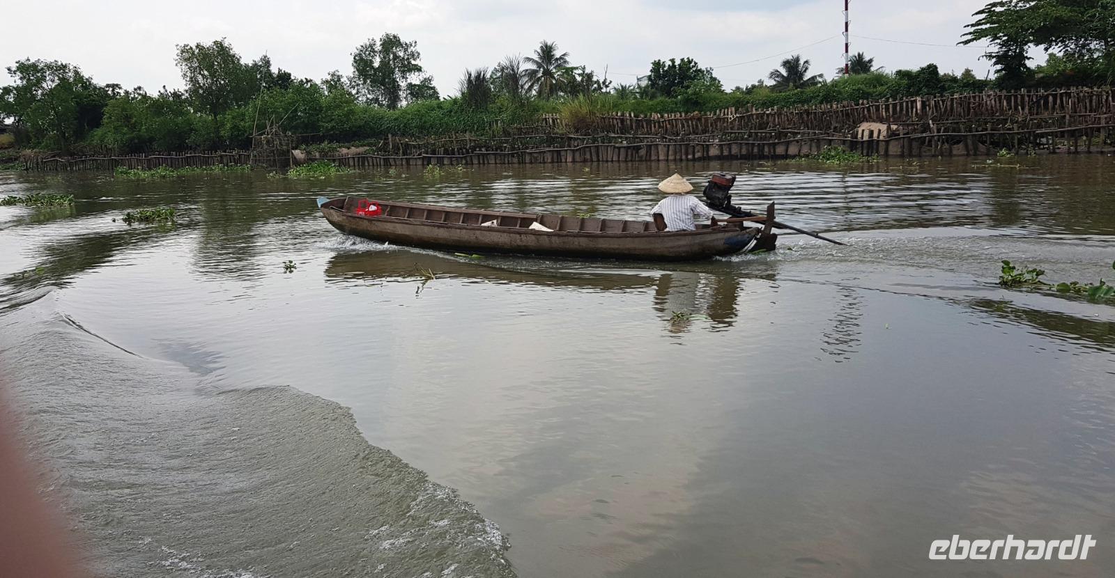 Mekong Fluss mündet hier ins Südchinesische Meer. Es gibt sehr viele Flussarme und Kanäle. Diese Region ist eine der fruchtbarsten in Vietnam.