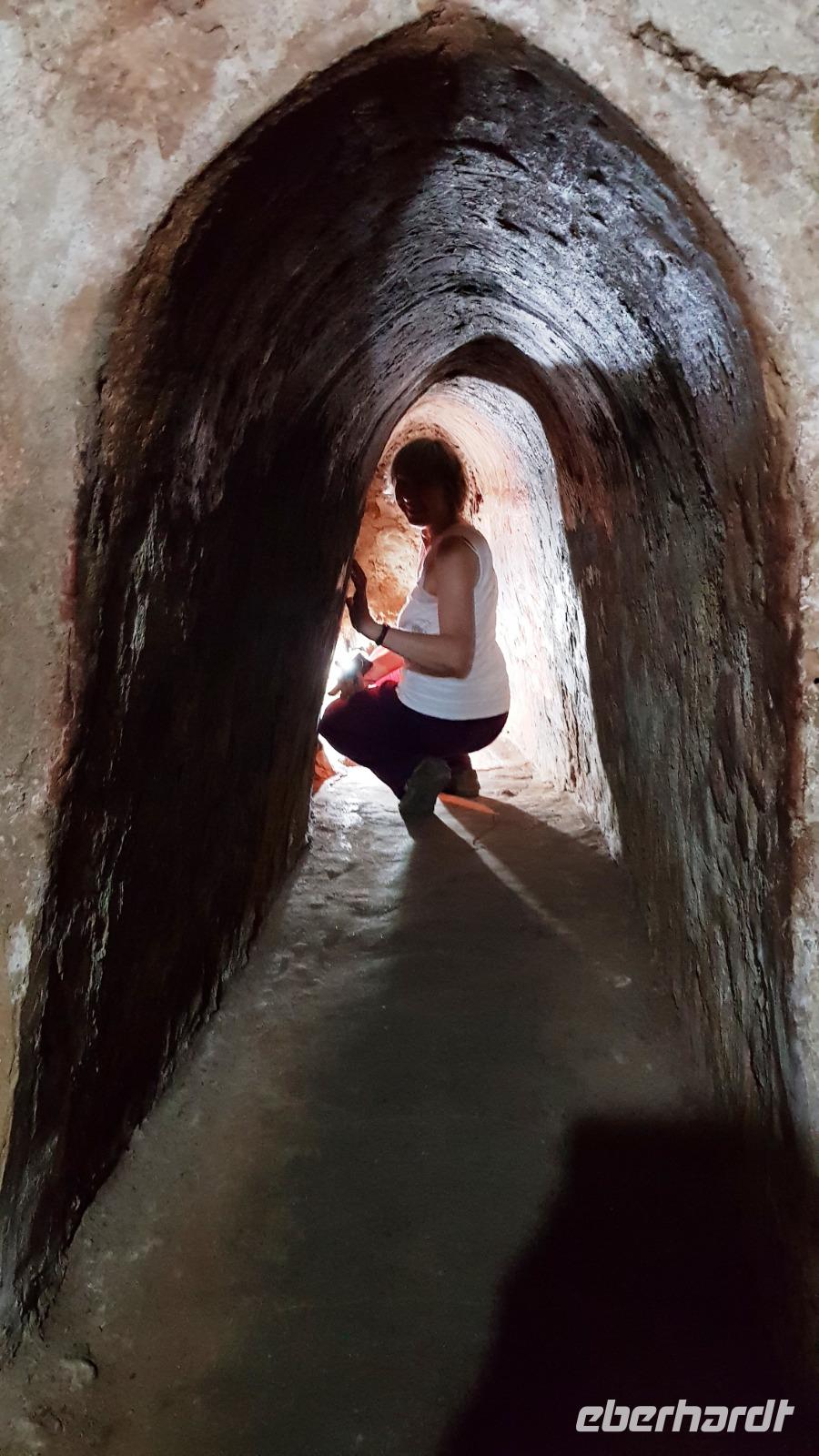 Heute ist ein Grossteil der Anlage ein Museum, wo auf Englisch sprechende Guides die Geschichte erklären. Man kann auch versuchen, durch einen Tunnel durchzukommen. Er ist aber sehr eng und die grossen Europäer kommt da schlecht durch. Deswegen wurde er etwas grösser gemacht.
