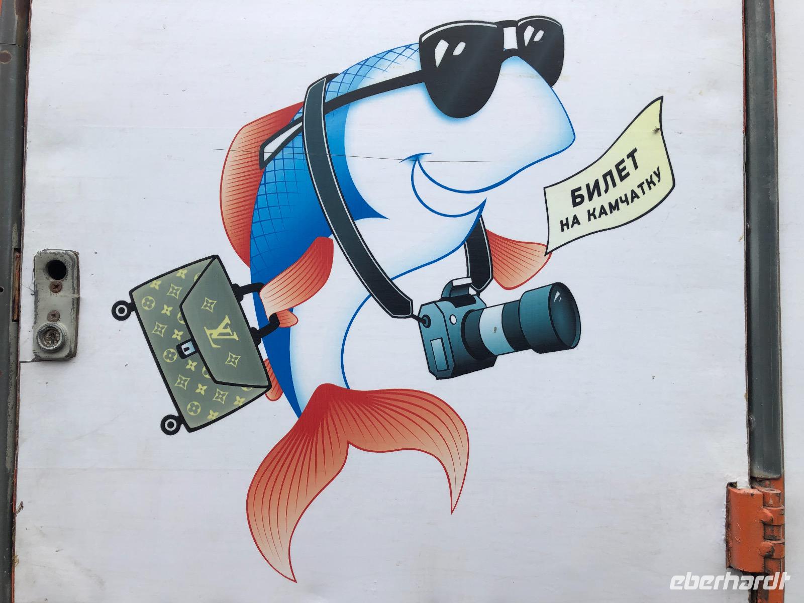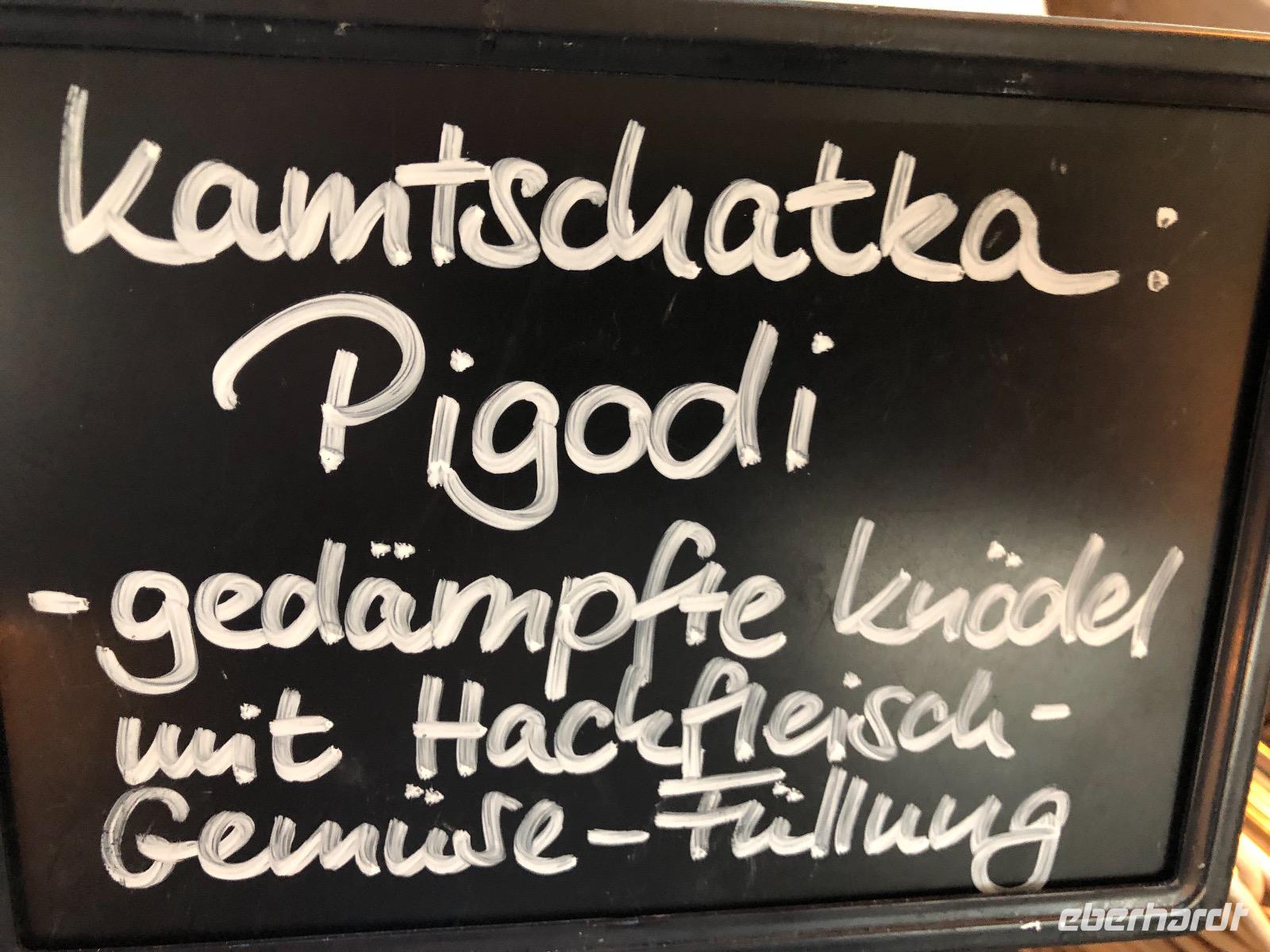 Am Vormittag besichtigen wir Petropawlowsk. Maria führt uns von Denkmal zu Denkmal, auch Lenin ist wieder dabei. In einem Souvenirladen können wir nach Herzenslust einkaufen, bei Bedarf sogar ein Bärenfell. Wir besuchen eine kleine alte Holzkirche, in der gerade ein Priester seine Gebete liest. Zum Mittagessen kehren wir in ein Restaurant ein, es gibt Fischsuppe und Fischboulette. Im Anschluss besuchen wir den Fischmarkt, wo man aus Eimern Kaviar kaufen kann. Natürlich lassen wir uns eine Verkostung nicht entgehen.