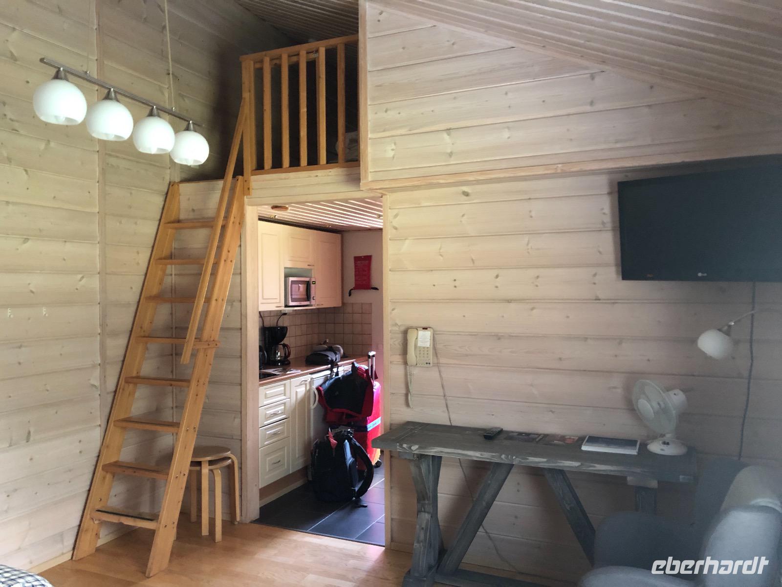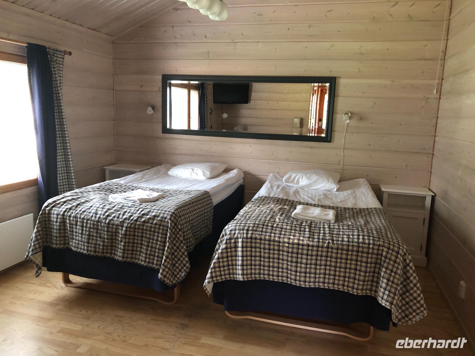 Die Chalets sind große Holzhütten, in denen bis zu vier Personen Platz finden. Es gibt eine voll ausgestattete Küchenzeile mit Herd und Kühlschrank (ohne Inhalt). Jedes Chalet verfügt über eine eigene Sauna. Im Haupthaus befindet sich die Rezeption und das Restaurant, sowie ein kleiner Laden.