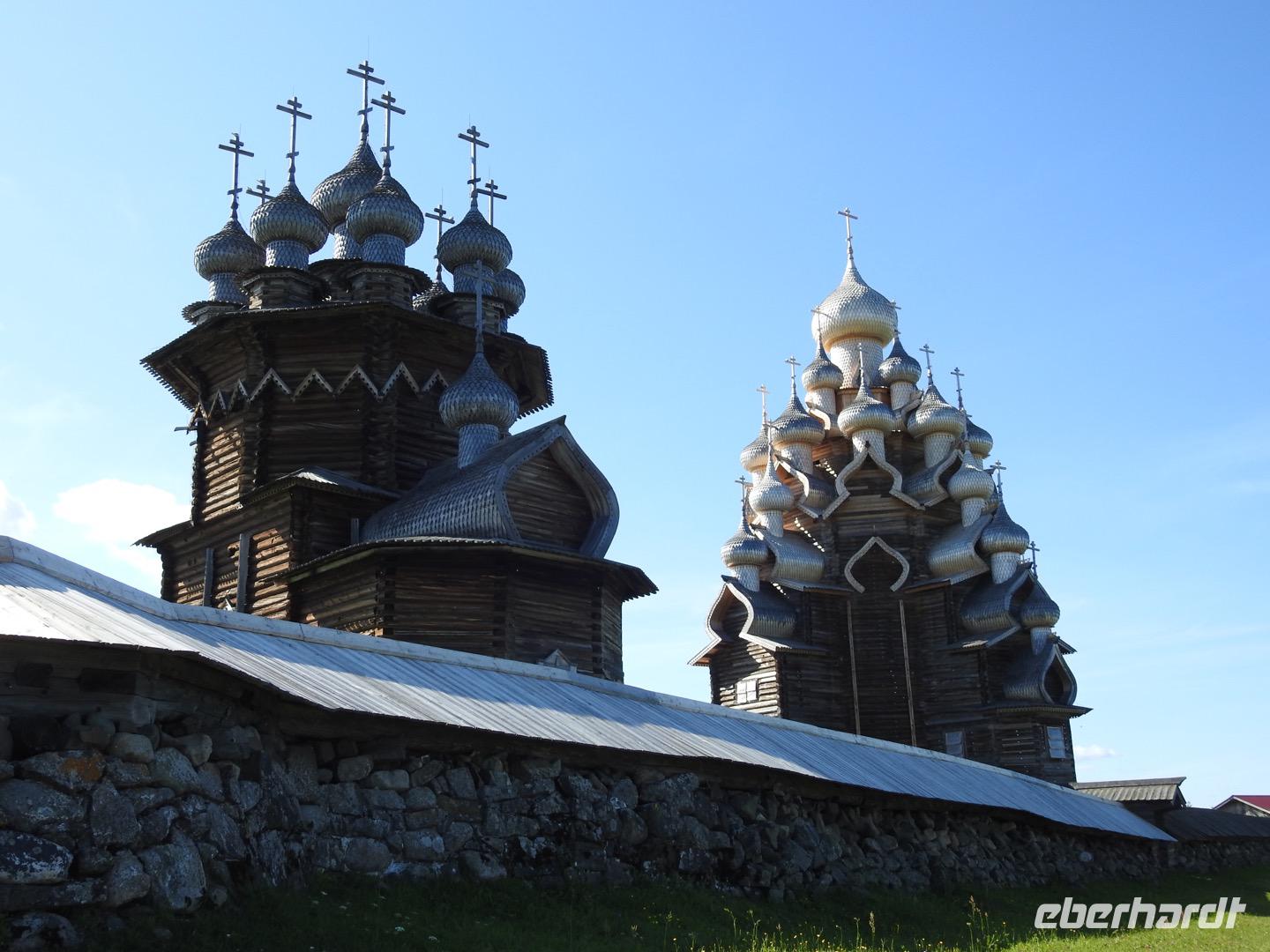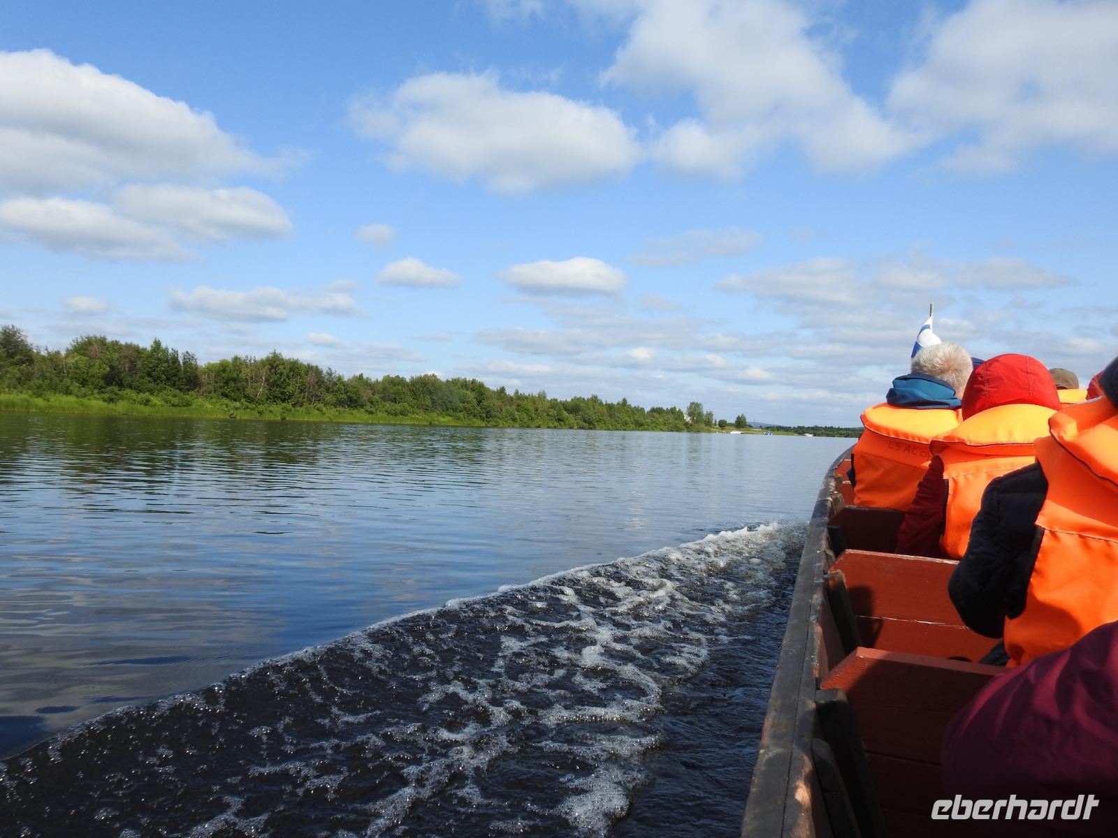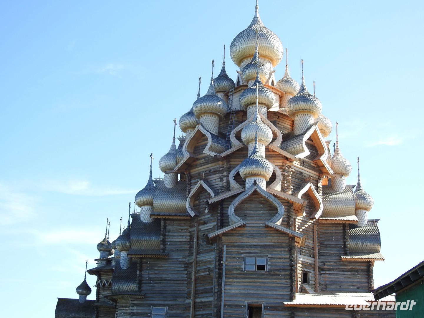 Wir fahren zum Onegasee, vorbei an unserem Hotel SERVERNAJA und einem Einkaufszentrum. Mit dem Tragflügelboot setzen wir zur Insel Kishi über. Die Fahrt dauert eine Stunde und fünfzehn Minuten. Auf Kishi werden wir von Jegor begrüsst, ein dreiundzwanzig jähriger junger Mann, der uns durch das Museumsdorf führen wird.