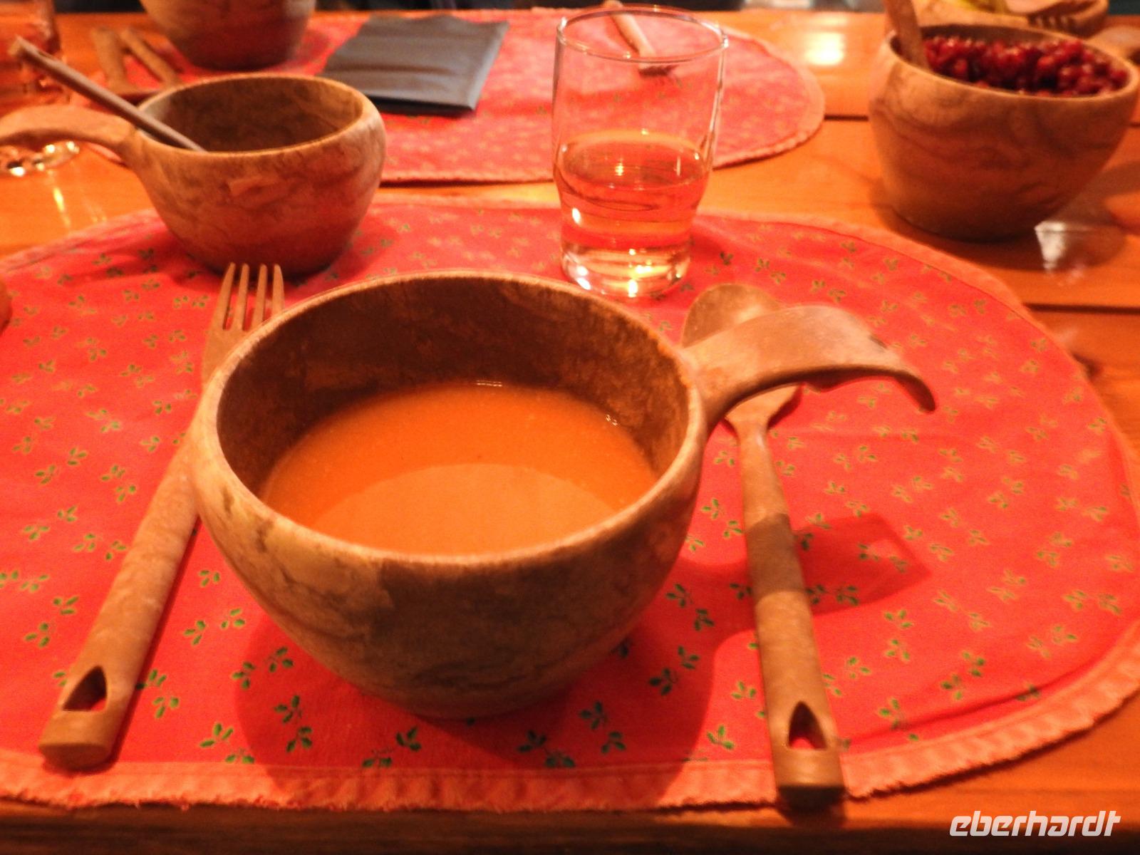 Nun aber ist es Zeit für das Mittagessen. Es gibt, typisch lappländisch, Rentier mit Stampfkartoffeln. Vorher eine Gemüsesuppe und als Nachspeise lappländischen Kuchen. Wir sind satt und zufrieden.