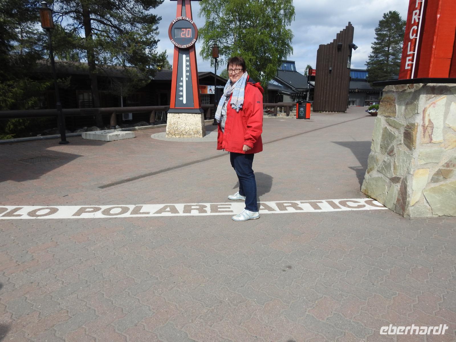 Am Nachmittag besuchen wir das Weihnachtsmanndorf. Hier befindet sich, wie sollte es anders sein, das Büro des Weihnachtsmannes, der auf Finnisch Joulupukki heißt. Wir werden empfangen und mit dem Weihnachtsmann fotografiert, die Bilder dürfen wir anschließend kaufen. Schließlich ist es ja noch nicht Weihnachten. Nun ist noch ausreichend Zeit, den Polarkreis, der hier deutlich markiert ist, hin und her zu überqueren und dabei die schönsten Fotos zu schießen. Alternativ können wir vom Weihnachtsmann Postamt, Weihnachtskarten an die Lieben daheim verschicken und dabei auswählen, ob unsere Post noch im Sommer oder aber erst zu den Festtagen ankommen soll.