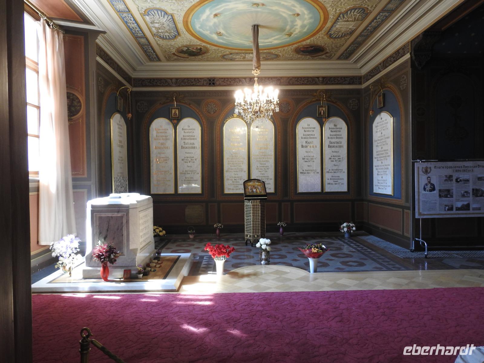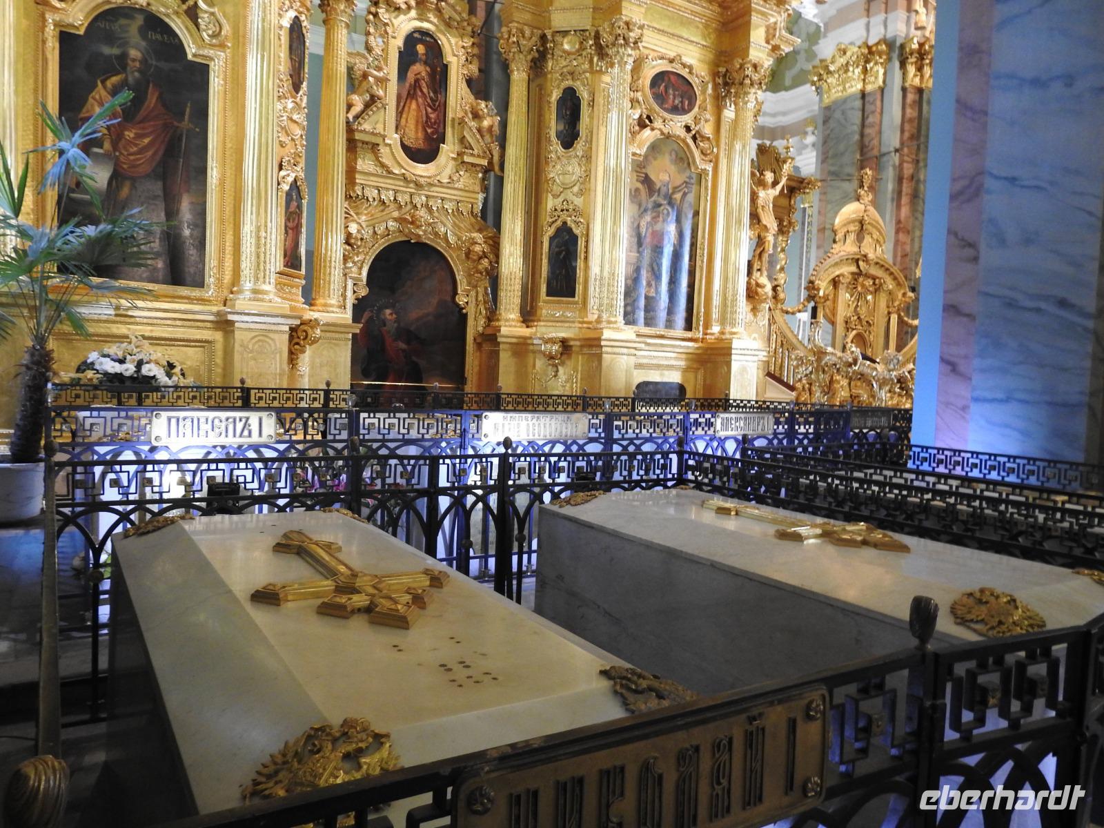 Nun besichtigen wir die Peter-Pauls-Festung. Auf Befehl von Peter dem Großen wurde diese 1703 errichtet und gilt als Gründung der Stadt. Wir müssen zur Kenntnis nehmen, dass hunderte Zwangsarbeiter beim Bau der Festung ums Leben kamen und später politische Gefangene hier ein kümmerliches Dasein fristeten. In der Peter-Paul-Kathedrale, die sich auf dem Gelände befindet, haben einige Monarchen ihre ewige Ruhe gefunden. Kostbare Sarkophage zeugen vom Prunk bis über den Tod hinaus.