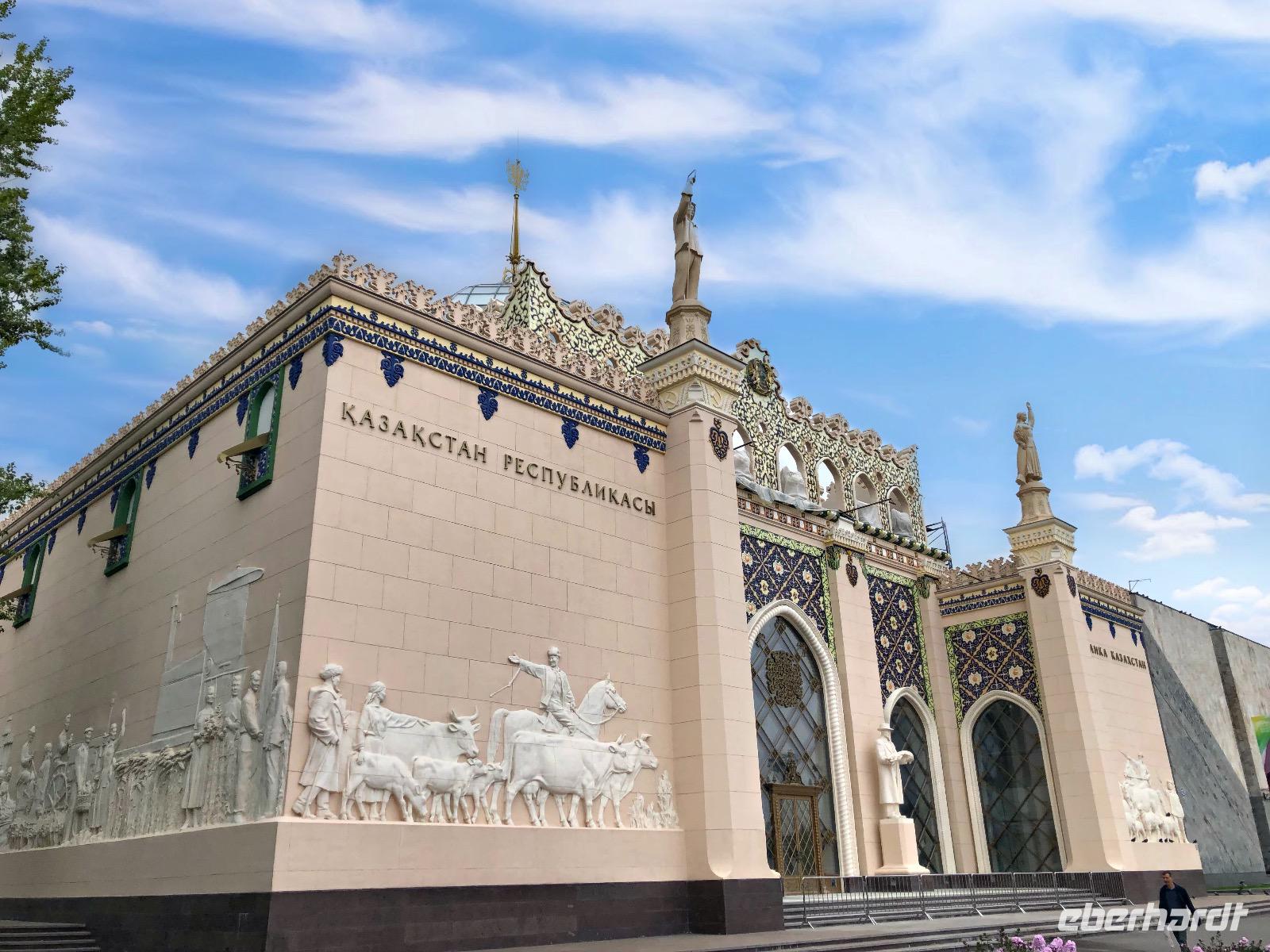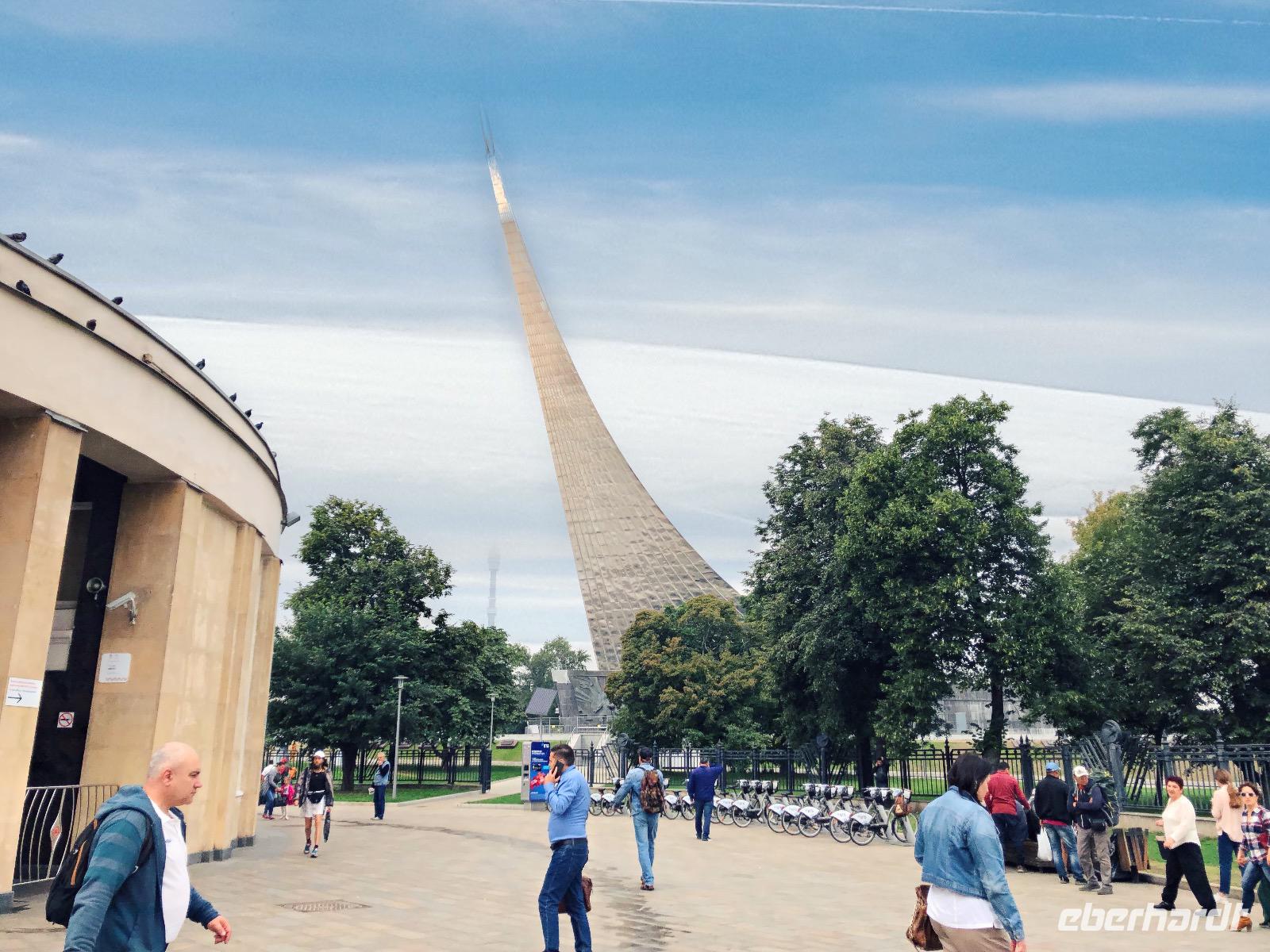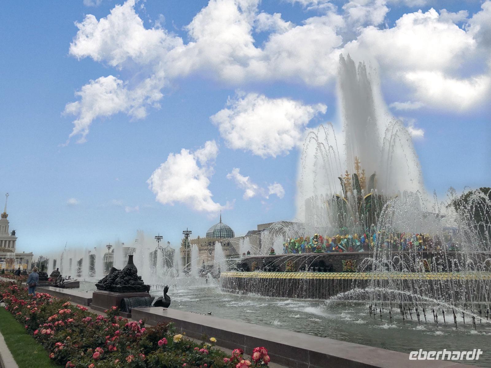 Der Tag steht zur freien Verfügung. Wir haben beschlossen, ihn gemeinsam zu verbringen und fahren zunächst mit der Metro zur Allunionsausstellung. Gut eine Stunde benötigen wir vom Hotel bis zur U-Bahn Station WDNCha. Als uns die lange Rolltreppe wieder ans Licht bringt, stehen wir vor einer Informationstafel und versuchen, uns zu orientieren. Wie groß ist die Überraschung als wir uns umdrehen und direkt vor einem Raumfahrtdenkmal stehen. Unser kollektives Ah! Und Oh! Wird von den Umstehenden wohlwollend und schmunzelnd registriert. Wir stehen also direkt vor dem Kosmonautenmuseum, halten uns aber rechts in Richtung eines großen Tores, wo wir den Eingang vermuten. Und so ist es dann auch. Wir kommen auf ein weitläufiges Gelände und spazieren durch eine breite Allee. Bereits am Eingang spüren wir, dass hier etwas Besonderes entsteht bzw. wieder aufgebaut wird. 2014 wurde die Allunionsausstellung geschlossen, doch nun wird an allen Ecken und Enden gewerkelt und gebaut. Einige Pavillons sind schon geöffnet, viele aber noch geschlossen. Hierher müssen wir wohl in ein paar Jahren noch einmal wieder kommen. Wir erreichen einen riesigen Springbrunnen, der von vergoldeten Figuren umringt wird. Es ist der Brunnen der Freundschaft. Unser Weg führt uns bis zu dem Modell der Rakete, die einst Juri Gagarin als ersten Menschen ins Weltall brachte. Hier kehren wir um, obwohl es noch viel zu sehen gäbe. Nun beginnen wir unser Metrohopping. An vielen interessanten Stationen steigen wir zum Besichtigen und Fotografieren aus. Jede Station widmet sich einem anderen Thema, alle sind aufwändig gestaltet. Die schönste und am meisten fotografierteste Station Komsomolskaja bildet den Abschluss unserer Rundfahrt. Von hier aus fahren wir zurück zum Hotel. Nach einer kurzen Erfrischungspause holt uns unser Fahrer Valerie ab und bringt uns zum Restaurant Tschaikowski, das sich im gleichnamigen Theater befindet. Wir sind zu früh und sollen in einer halben Stunde noch einmal wiederkommen. Gesagt, getan. Wir schauen uns in der Gegend um und entdecken genau gegenüber eine Schaukelkonstruktion für Erwachsene. Nach und nach gelingt es uns sogar, eine freie Schaukel zu erobern und so haben wir unseren Spaß und die halbe Stunde vergeht wie im Flug. Als wir erneut im Restaurant vorsprechen, werden wir erwartet und an unsere Tische geführt. Das Etablissement ist gewaltig, aber trotzdem gemütlich. Unsere Tische sind liebevoll eingedeckt und kaum, dass wir sitzen, wird der erste Gang gereicht, ein köstlicher Gemüsesalat. Anschließend gibt es Bortscht, Pommes und Schaschlik und einen prall gefüllten Windbeutel zum Nachtisch. Satt und zufrieden lassen wir uns von Valerie zum Flughafen chauffieren. Bald sind alle Schalter gefunden, wir sind eingecheckt und haben die Sicherheitskontrolle passiert. Ein wenig Aufregung verbreitet sich, als der Flug um zwei Stunden verschoben und dann doch wieder um eine Stunde nach vorn verändert wird. Aber alles ist gut und so fliegen wir in knapp sechs Stunden mit Sibirian Airlines nach Irkutsk.