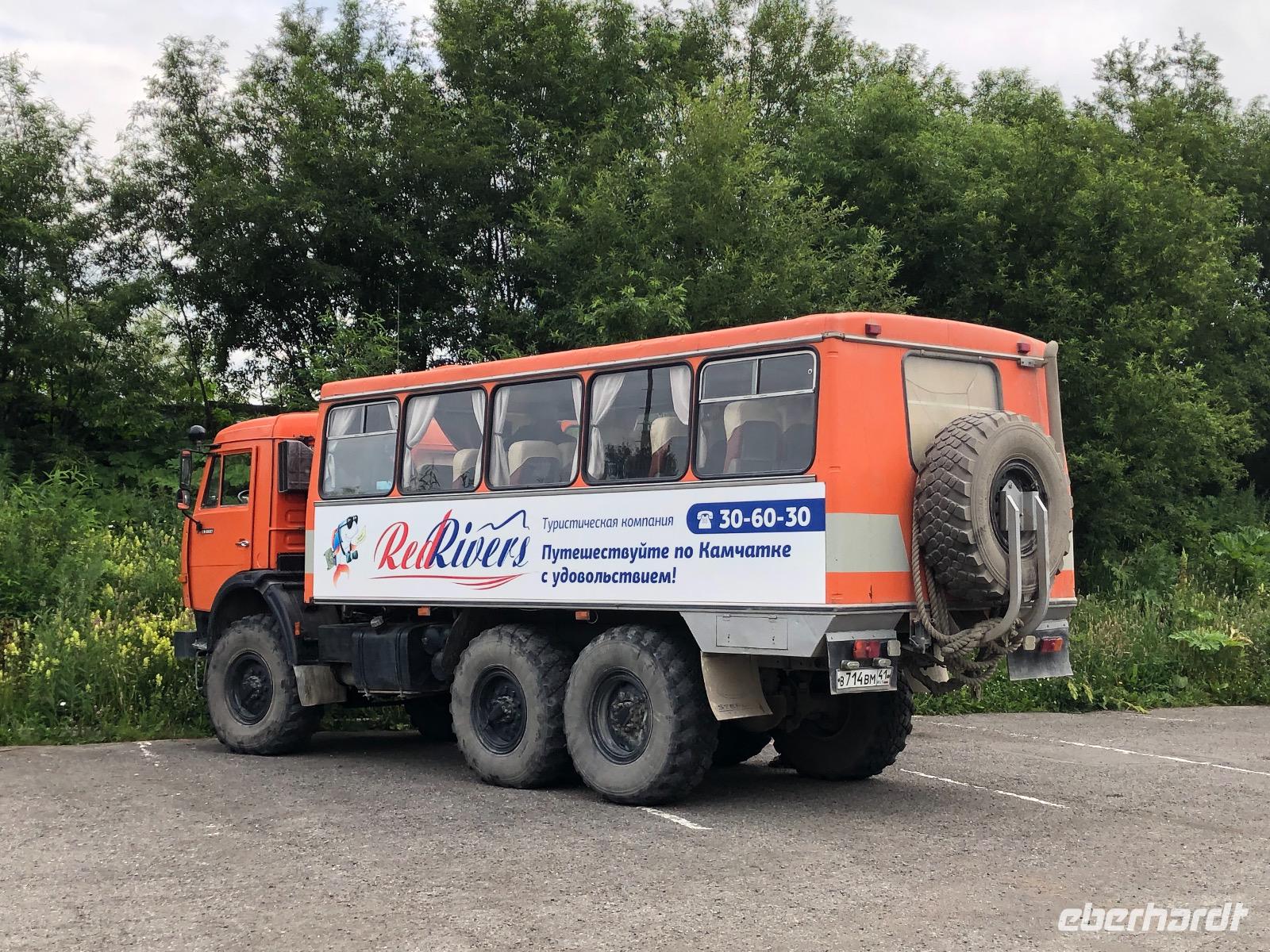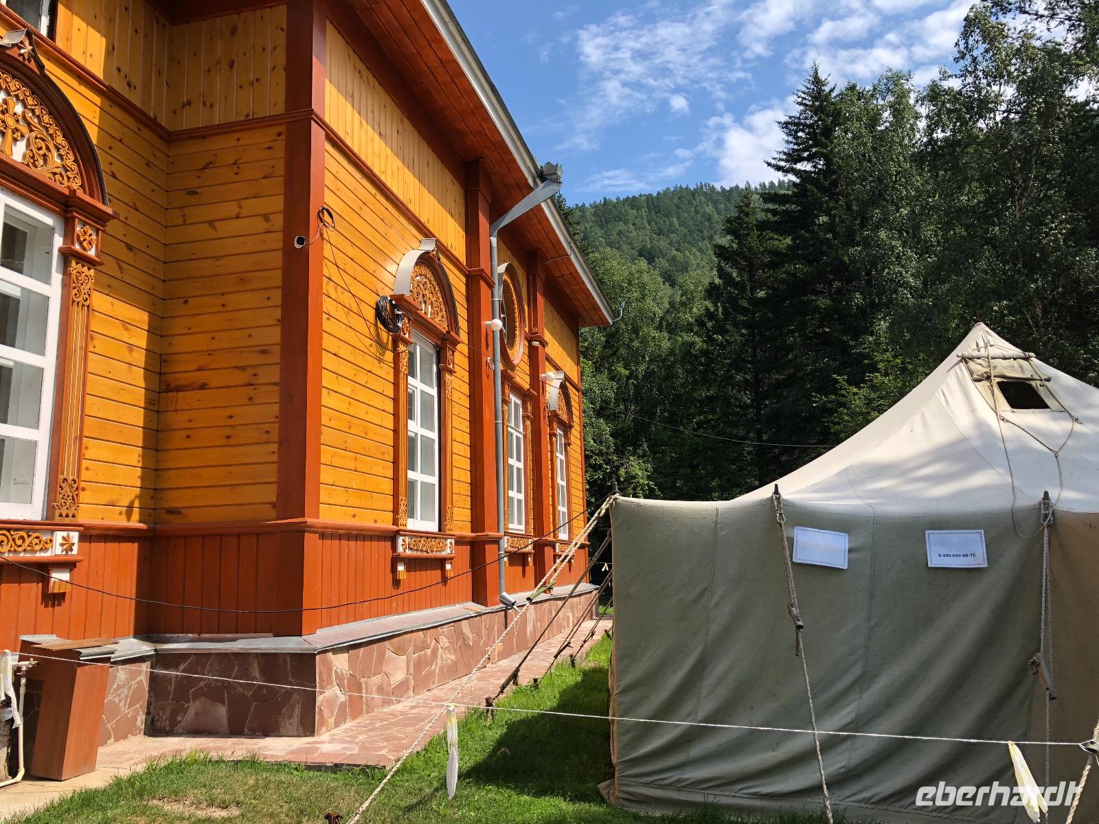 Der Tag kann heute zur Erholung genutzt werden. Unser Hotel hat einen eigenen Thermalpool, den wir kostenlos nutzen können (der Verleih von Bademänteln koste 100 Rubel, also ca. 1,25 €). Außerdem gibt es eine Banja, die wir für einen festgelegten Zeitraum mieten können. Das Restaurant hat ganztägig geöffnet und steht mit Speis und Trank zur Verfügung. Nur auf Wanderungen in die Umgebung sollten wir verzichten, es wurden freilebende Bären gesichtet.