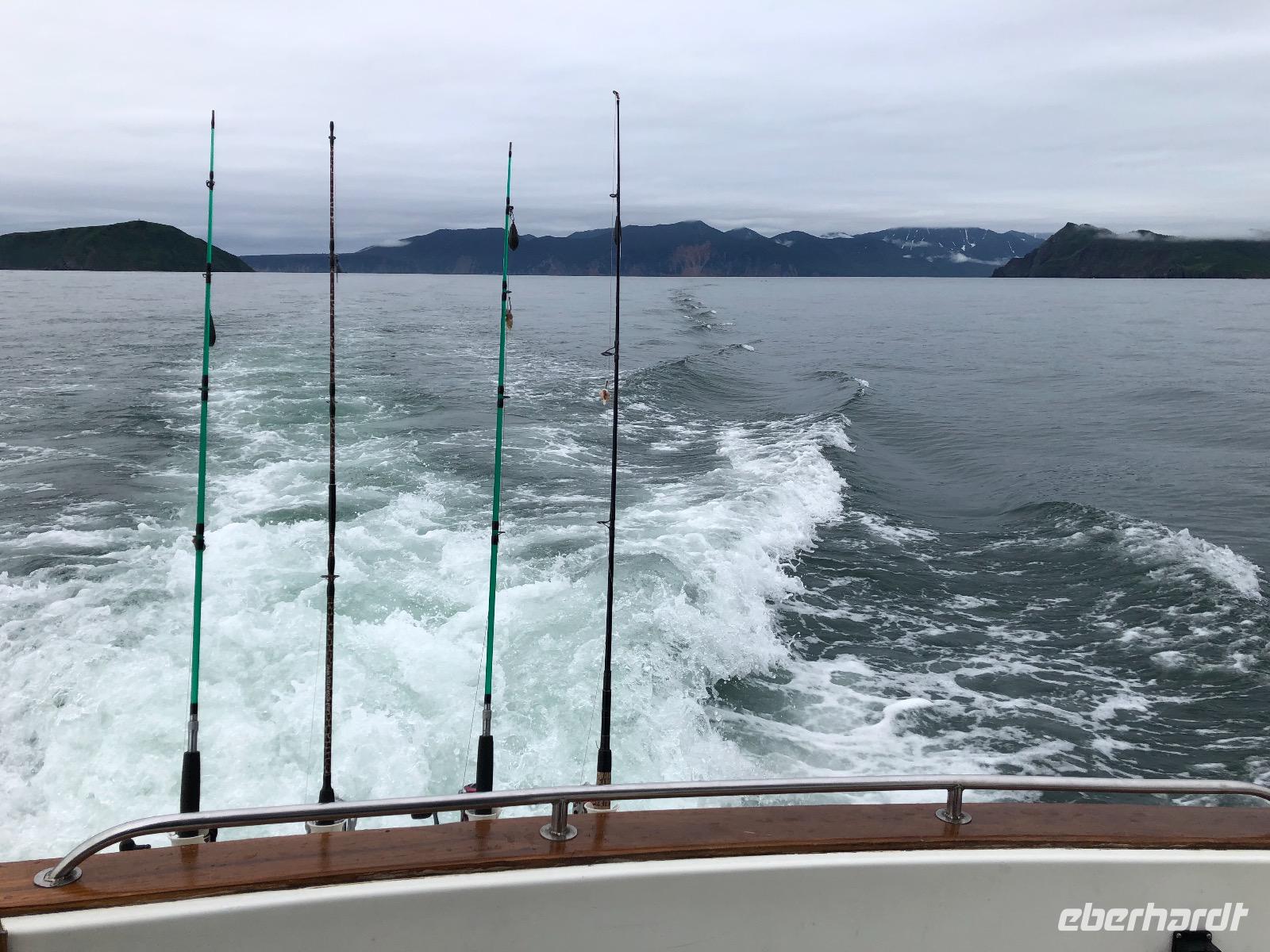 Nun fahren wir zum Hafen. In zwei Gruppen geteilt unternehmen wir unsere heutige Bootstour. Für die zweite Gruppe ist Anna als Reisleiterin dabei. Mit Wodka und Kaviar ausgestattet, beginnt unsere Fahrt. Unsere Boote fahren hinaus auf die Avacha Bucht, die im 18. Und 19. Jahrhundert das Tor nach Kamtschatka war. Hier kamen die ersten Forschungsreisenden an, die entweder ihre Trinkwasservorräte auffüllen wollten oder ihre Boote reparieren mussten.