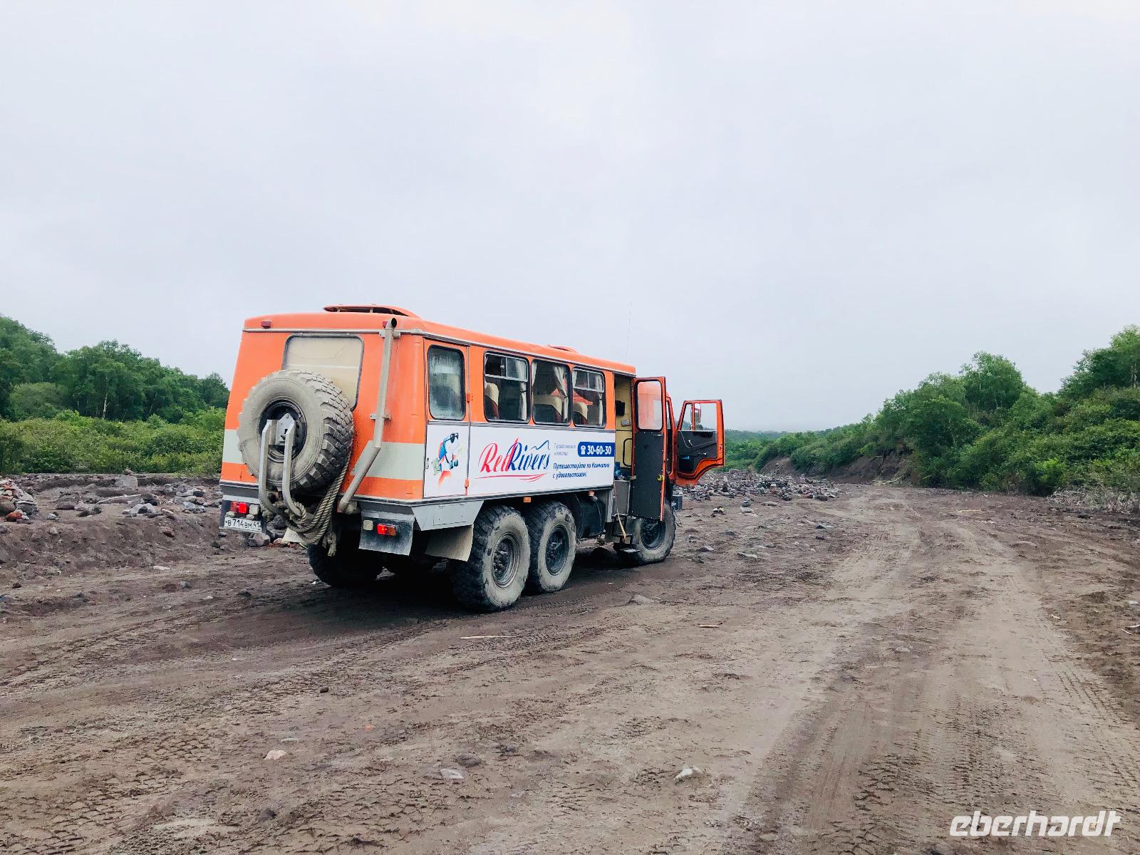 Tag 18: Freitag, 02.08.2019 WoW! Mit Off–Road–Autos zum Fuße des Vukans Avacha; Besuch einer Hundeschlittenfarm