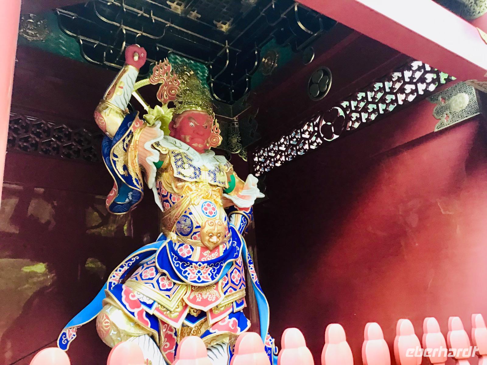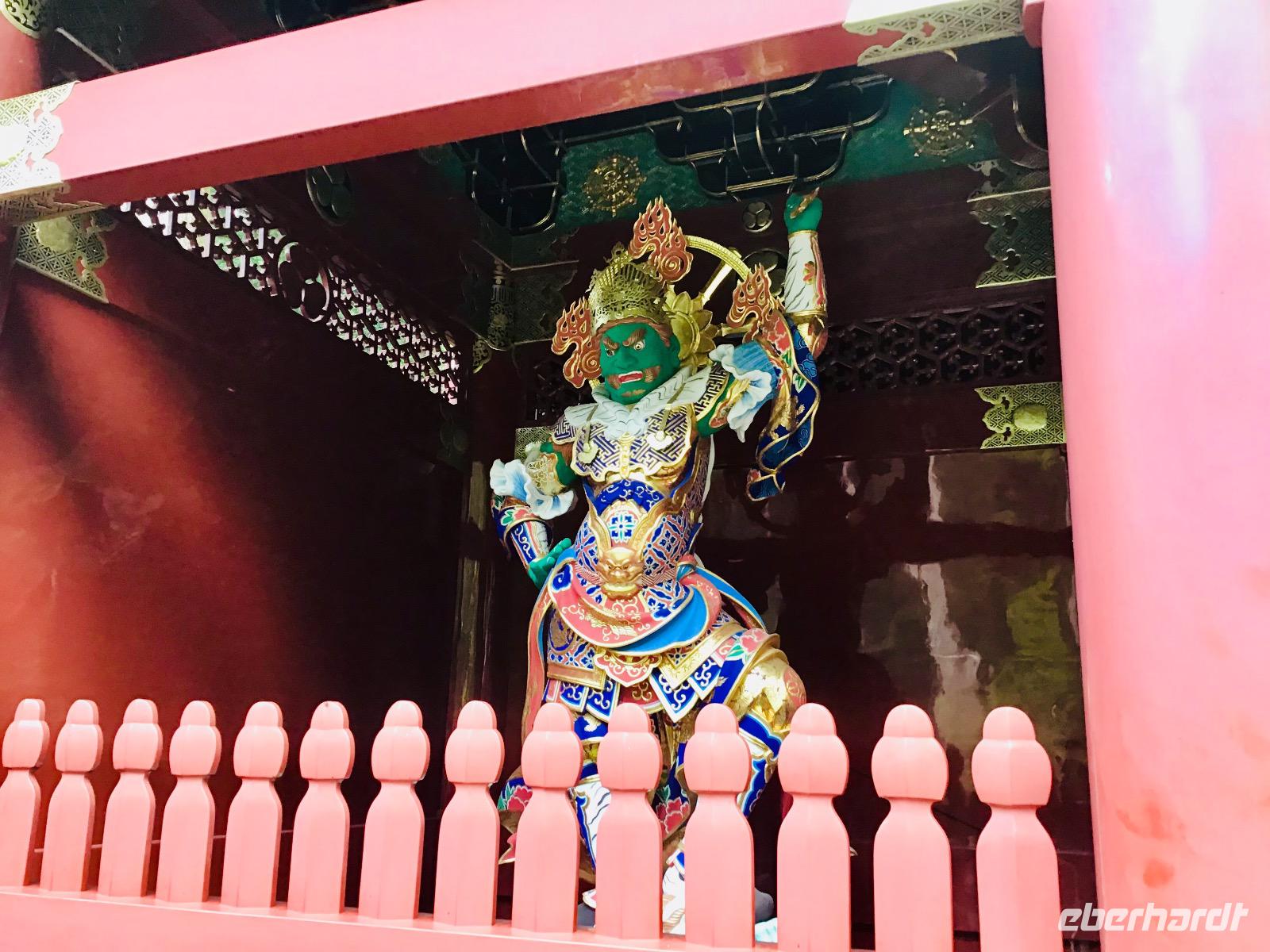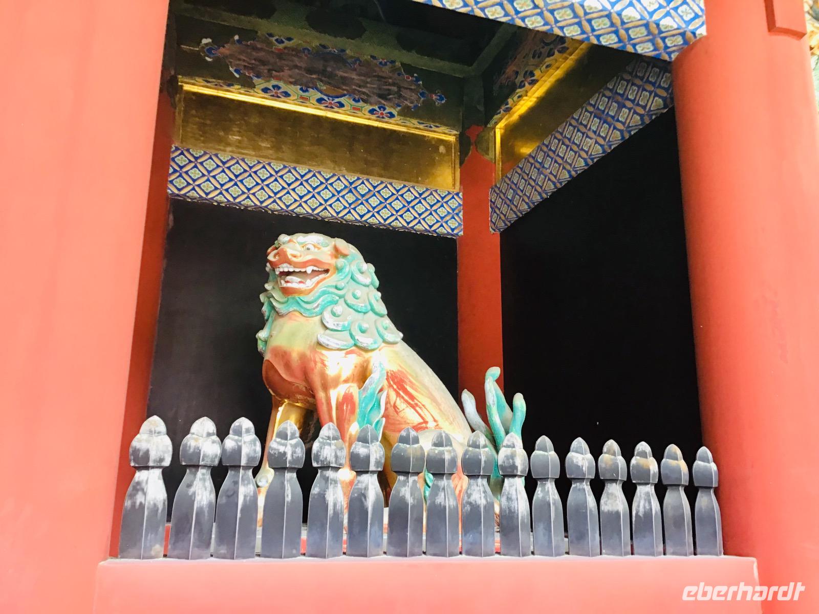 Zum Mittagessen kehren wir in ein kleines japanisches Restaurant ein und probieren uns durch die einheimische Küche. Anschließend besuchen wir den Tempel, der als Grabstätte für den Enkel erbaut wurde. Hier ist es ruhiger als im großen Tempel, allerdings müssen viele Treppenstufen bewältigt werden. Ein Priester gibt uns freundlicher Weise Erklärungen zum Tempel, ihn interessiert es jedoch nicht, dass wir kein japanisch verstehen. Nun ist es Zeit, sich auf den langen Rückweg zu machen.