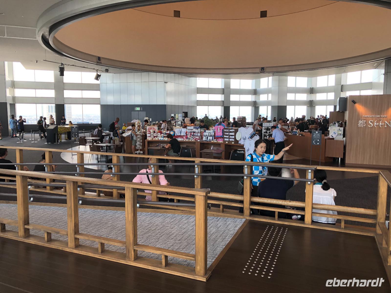 Im Anschluss fahren wir zum Rathaus von Tokio. In der 45. Etage gibt es eine Aussichtsplattform mit 360 Grad Rundumsicht. In der Mitte gibt es Souvenirs zu kaufen und auf einem Klavier zeigen Besucher ihre Künste. Es herrscht eine angenehme Atmosphäre.
