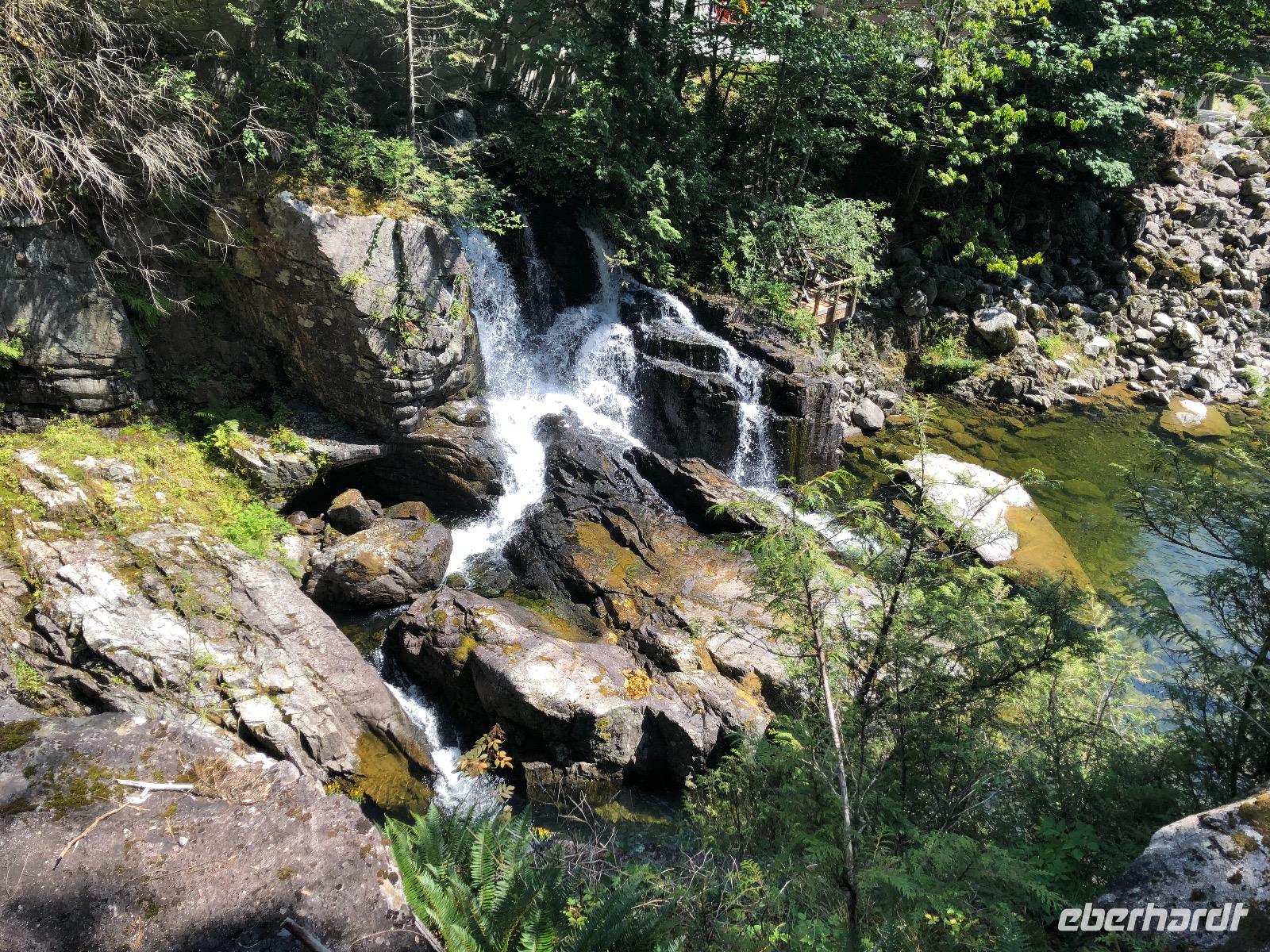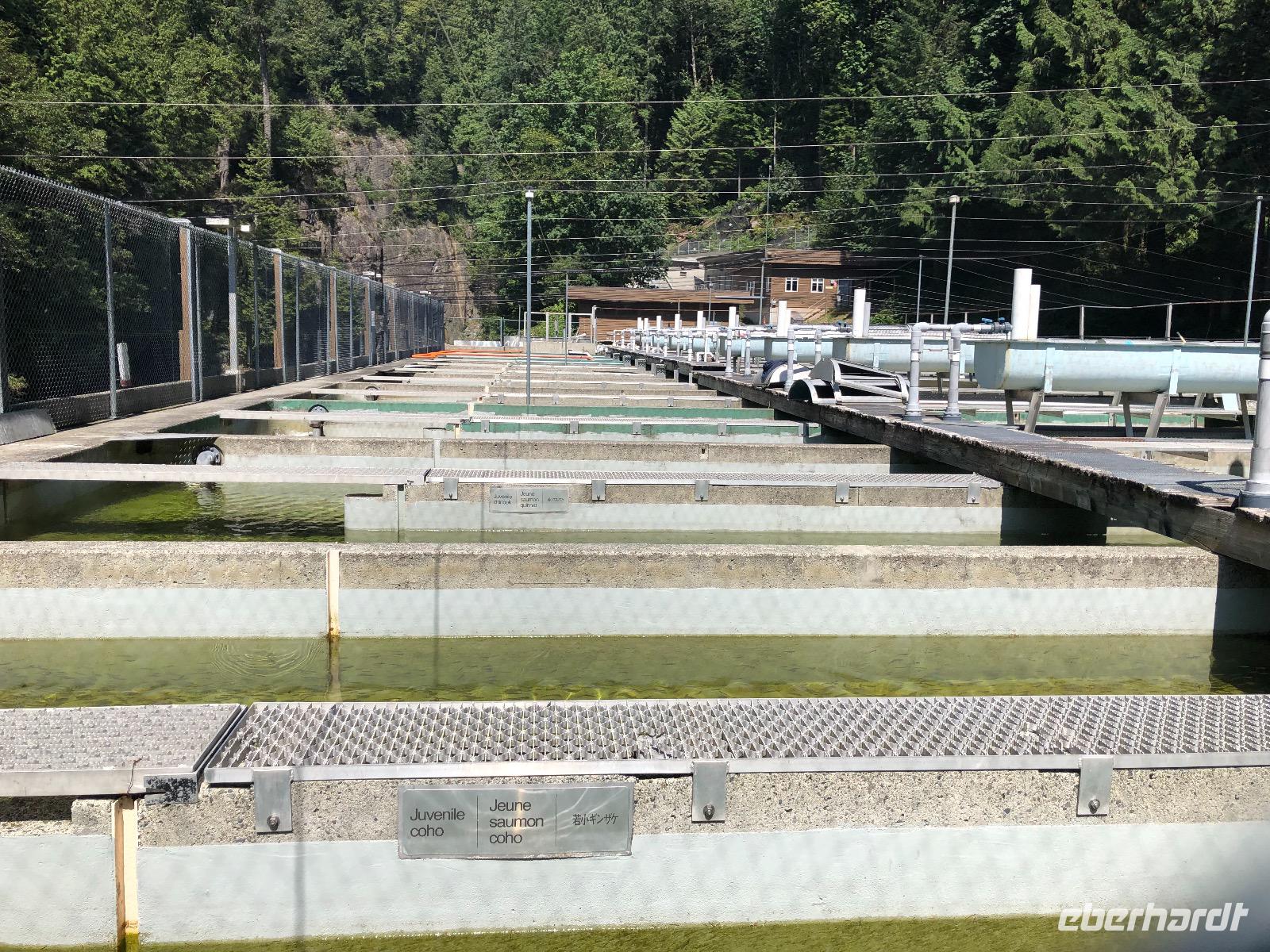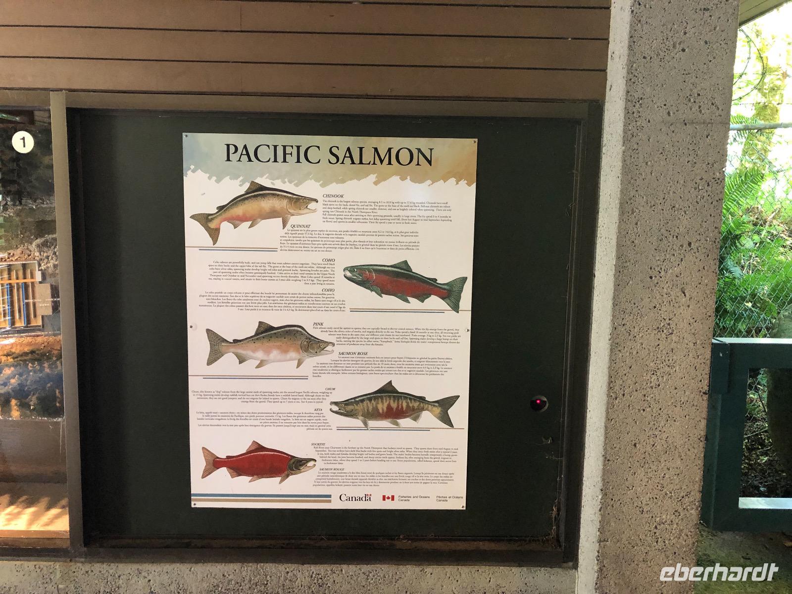 Heute, an einem der wenigen Tage, an denen wir ausschlafen können, gibt es das Frühstück im Hotel nur bis um neun. Nun ja, manchmal reichen auch zehn Minuten fürs Frühstück. Unser Programm beginnt heute erst um zwölf. Wir fahren über die Lionsbridge zur Lachsaufzuchtstation. Hier geht es nicht darum, Lachse zum Verzehr zu züchten, sondern ihre Art zu schützen. Nach der Besichtigung unternehmen wir einen kleinen Waldspaziergang und werden dabei von einem prächtigen Weißkopfseeadler beäugt. Am Nachmittag überqueren wir die Capilano Suspension Brücke, eine freischwingende Hängebrücke, die auch mächtig wackelt. Sie wurde Ende des 19. Jahrhunderts errichtet. Ein schottischer Ingenieur hatte auf beiden Seiten des Capilano Rivers Land erworben und sich auf einer Seite eine Hütte gebaut. Um diese zu erreichen, spannte er mit Hilfe von zwei Indianern eine Brücke aus Zedernholzplanken und Hanfseilen über den Fluss. Es dauerte noch viele Jahre und mehrfachen Besitzwechsel bis die Brücke sich zu einem beliebten Touristenziel entwickelte. Heute werden bis zu 800.000 Besucher pro Jahr gezählt.
