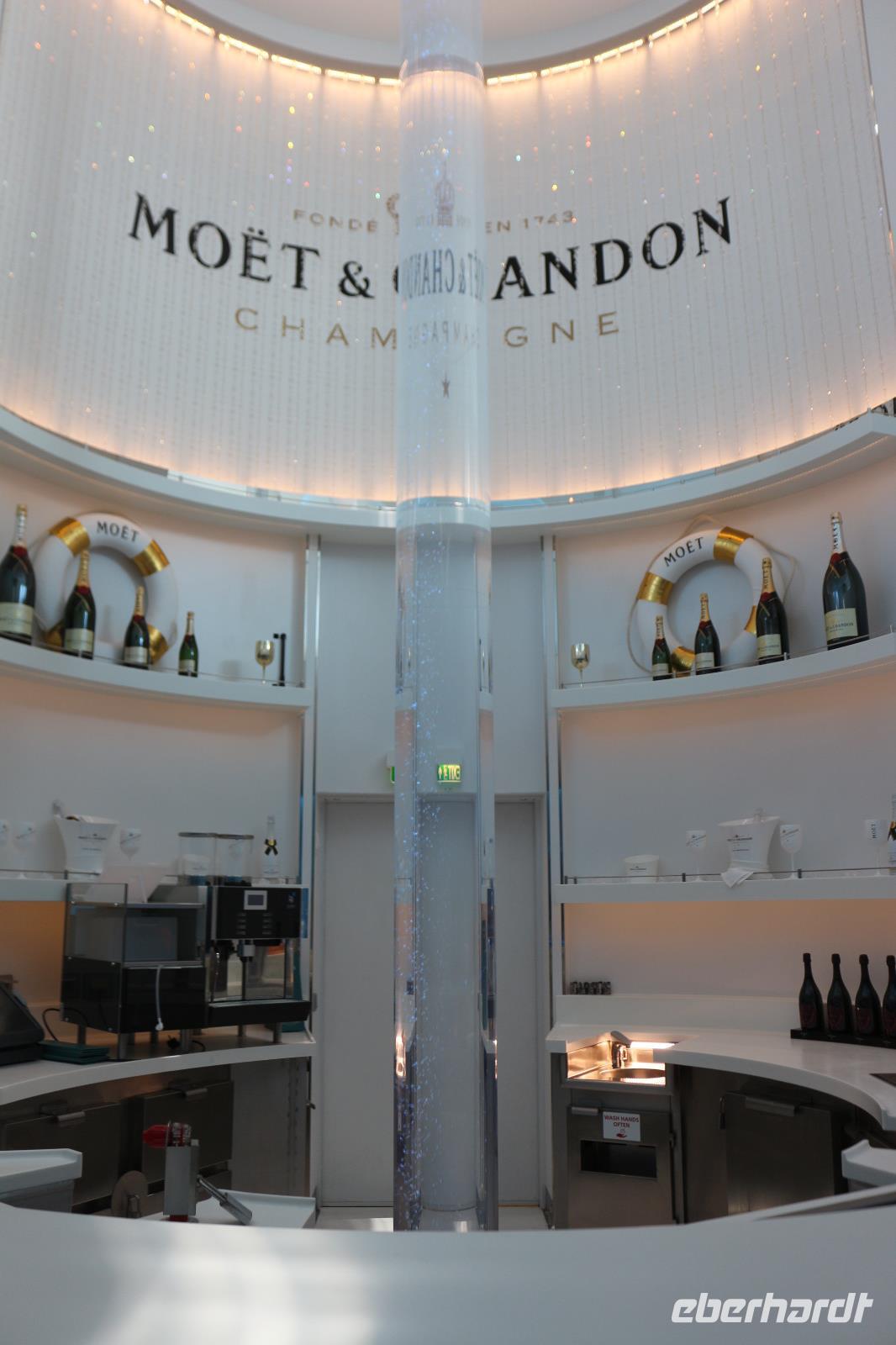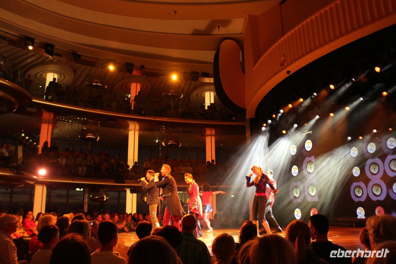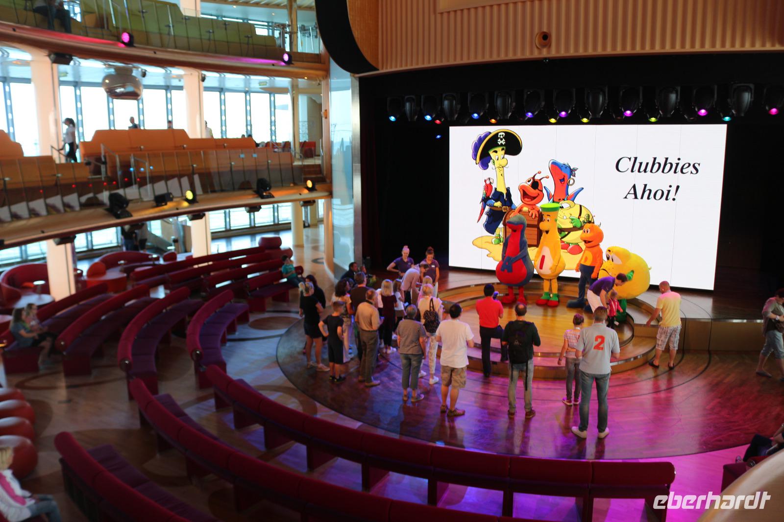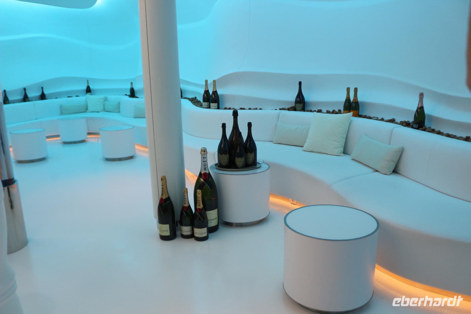 Heute hatten wir Gelegenheit, nach dem gestrigen anstrengenden Tag, etwas zu entspannen. Dies begann schon mit dem Frühstück. Obwohl auch so kein Zeitdruck vorhanden gewesen wäre, wurde uns durch die Zeitumstellung eine weitere Stunde geschenkt. Jeder hatte die Möglichkeit, individuell in einem der zahlreichen Restaurants den Tag mit einem ausgiebigen Frühstück zu beginnen. Anschließend trafen wir uns 11.00 Uhr in der Bar D6, wo wir mit einem Glas Sekt empfangen wurden und auf eine schöne Reise anstießen. Anschließend wurden wir von Svenja, einem Crew-Mitglied, abgeholt, welche uns das Schiff zeigte. Zunächst führte sie uns in das Cabaret Nightfly, von wo aus wir auch in die Champagnerbar Spray Bar gingen. Dort gab es zwar keinen Champagner für uns, stattdessen jedoch einen traumhaften Blick auf das Wasser, nachdem wir das Freie betreten hatten und uns direkt im Bug des Schiffes befanden. Anschließend führte uns Svenja zum Theatrium und zeigte uns die verschiedenen Restaurants. Schließlich erkundeten wir gemeinsam den Kinder- und Familienbereich „Four Elements" sowie den Beachclub. Nachdem wir auch alle wussten, wo sich der SPA-Bereich befindet, verabschiedeten wir uns von ihr und dankten ihr für diese hilfreiche und lustige Führung über die AIDAprima. Anschließend bestand für jeden die Möglichkeit, in einem der zahlreichen Restaurants etwas zum Mittag zu essen. Auch der Nachmittag stand jedem zur freien Verfügung, beispielsweise für einen Besuch des Pools oder einer der zahlreichen Kurse und Workshops.