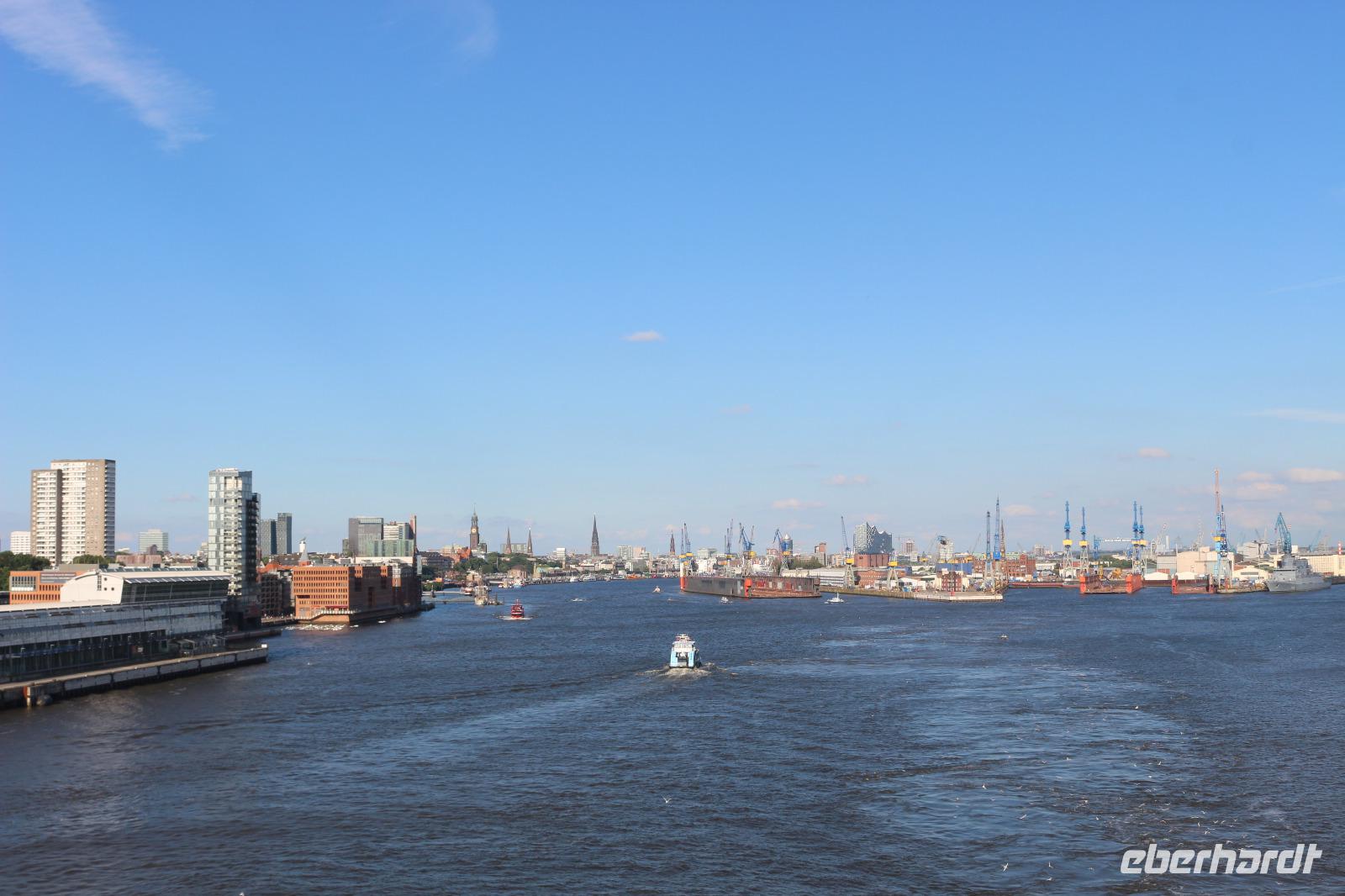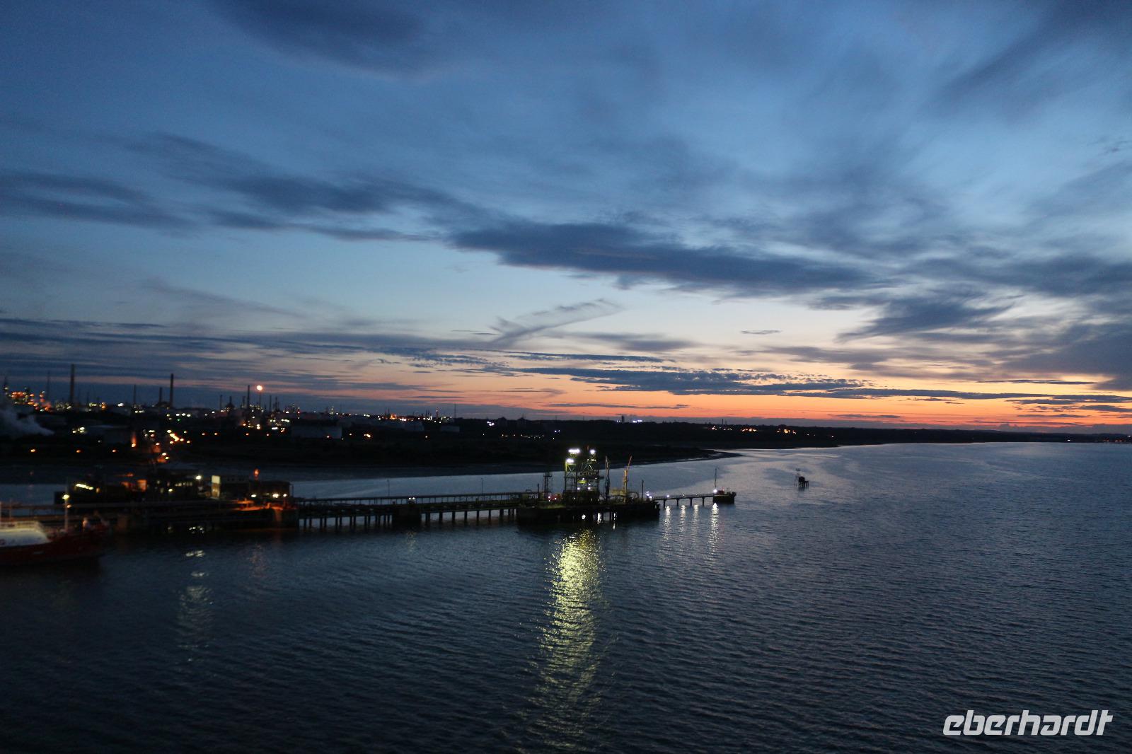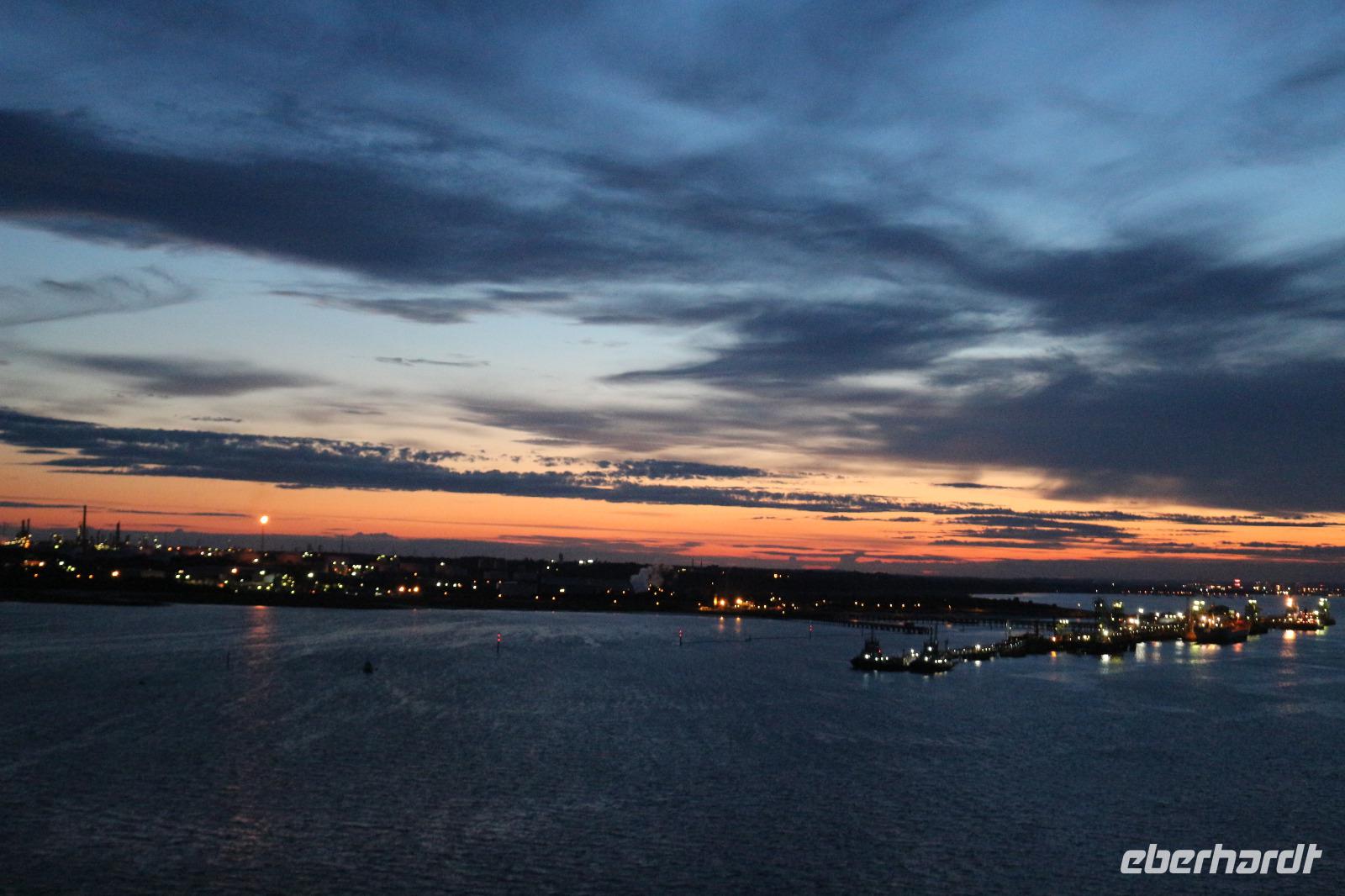 Schon sehr früh am Morgen begann heute unsere gemeinsame Reise. Aufgrund des in Hamburg stattfindenden G20-Gipfels und den damit verbundenen Ausschreitungen, fuhren wir bereits 4.00 Uhr in Dresden los. Doch einen Vorteil brachte es mit sich: Wir konnten einen wunderschönen Sonnenaufgang beobachten. Nachdem alle Gäste aus Dresden, Nossen, Leipzig und Hohenwarsleben an Bord waren, sollte es für uns nach Hamburg gehen. Auf der Fahrt stimmten wir uns bereits auf die AIDA ein und bekamen die eine oder andere Information zu unserer Kreuzfahrt. Schließlich erreichten wir die Hansestadt Hamburg problemlos und ohne Staus. Auch die Fahrt zum Cruise Center Steinwerder gestaltete sich überraschend unproblematisch, sodass wir vom Ausnahmezustand, in welchem sich die Stadt befand, nichts mitbekamen. Nachdem wir unser Gepäck abgegeben hatten, ging es zum Check-In. Wir erhielten unsere Bordkarten und mussten schließlich noch eine Sicherheitskontrolle passieren, bevor wir endlich an Bord der AIDAprima gehen konnten. Hier staunten wir nicht schlecht und waren zunächst überwältigt von der Größe des Schiffs. Zunächst suchten wir unsere Kabinen auf, um uns ein wenig auszuruhen oder gingen eine Kleinigkeit in einem der vielen Restaurants essen. 16.00 Uhr trafen wir uns wieder, wobei wir zunächst die Orte, welche unsere nächsten Treffpunkte sein sollten, aufsuchten. Dabei konnte man sich bereits ein wenig orientieren. Im Anschluss begaben wir uns auf unsere Kabinen, denn schon kurz darauf begann die obligatorische Seenotsrettungsübung. Mit Schwimmwesten mussten wir uns zu den uns zugewiesenen Sammelstellen begeben, wo wir gezählt wurden. Nachdem dies absolviert war, traf sich ein Teil der Gruppe auf Deck 14, um gemeinsam das Auslaufen des Schiffes mitzuerleben. Alle Wolken hatten sich passend dazu verzogen, sodass wir einen herrlichen Blick auf die zweitgrößte Stadt Deutschlands hatten. Schließlich wurden die Seile gelöst und die AIDAprima setzte sich in Bewegung. Passend dazu ertönte aus den Lautsprechern das Lied „Sail Away". Wir genossen die schöne Atmosphäre, während wir die Stadt hinter uns ließen und Richtung Nordsee fuhren. Als sich schließlich unsere Mägen zu Wort meldeten, gingen wir ins Buffetrestaurant Weite Welt, wo jeder Tag unter dem Motto eines Landes stand. Heute hieß das Motto Deutschland, sodass wir uns Schnitzel, Sauerkraut und Co. Schmecken lassen konnten. Jedoch konnten natürlich auch andere Restaurants aufgesucht werden. Am Abend konnte im Theatrium eine erste Show mit Gesang durch die AIDA-Künstler besucht werden. Jedoch waren wir alle sehr müde und geschafft, nachdem wir so lange auf den Beinen gewesen waren, sodass wir schließlich zeitig ins Bett gingen, um fit für den nächsten Tag zu sein.
