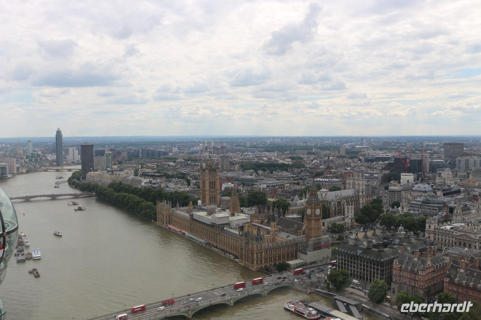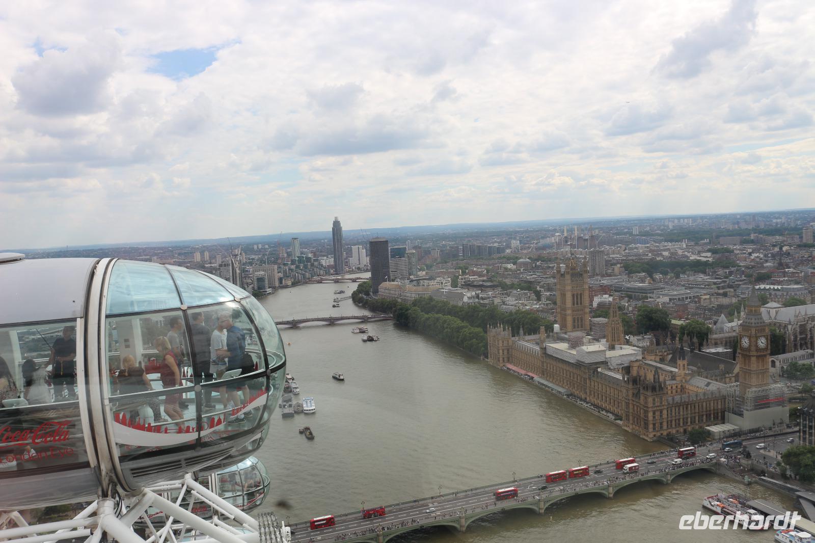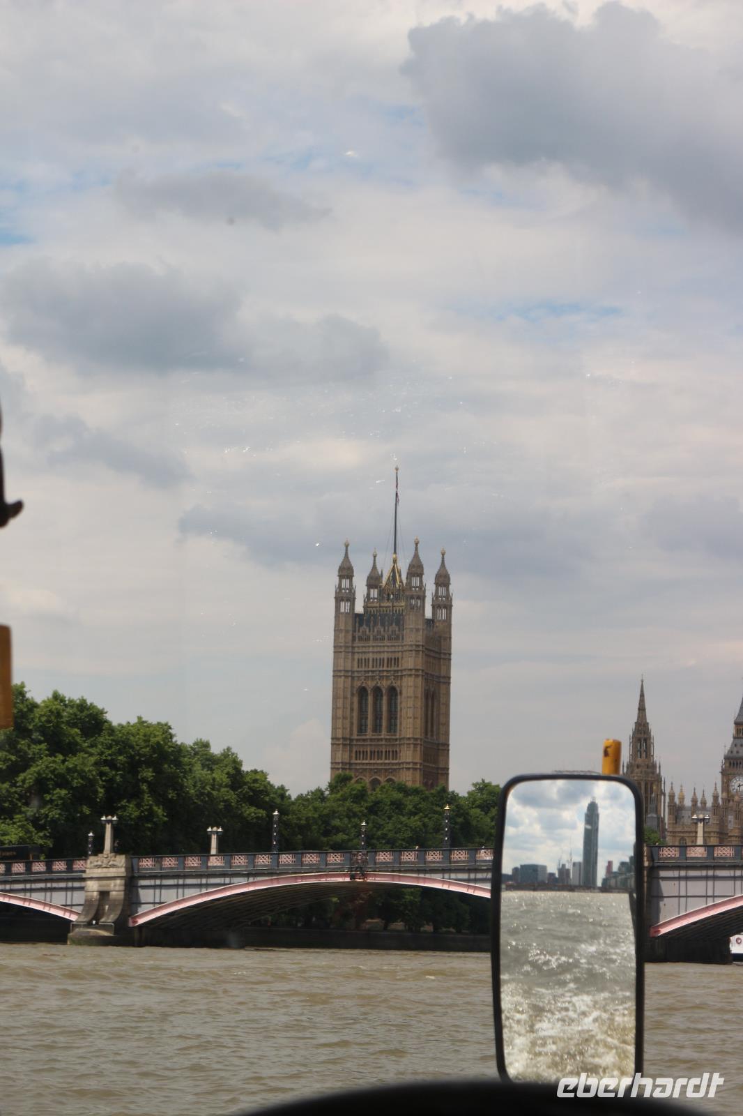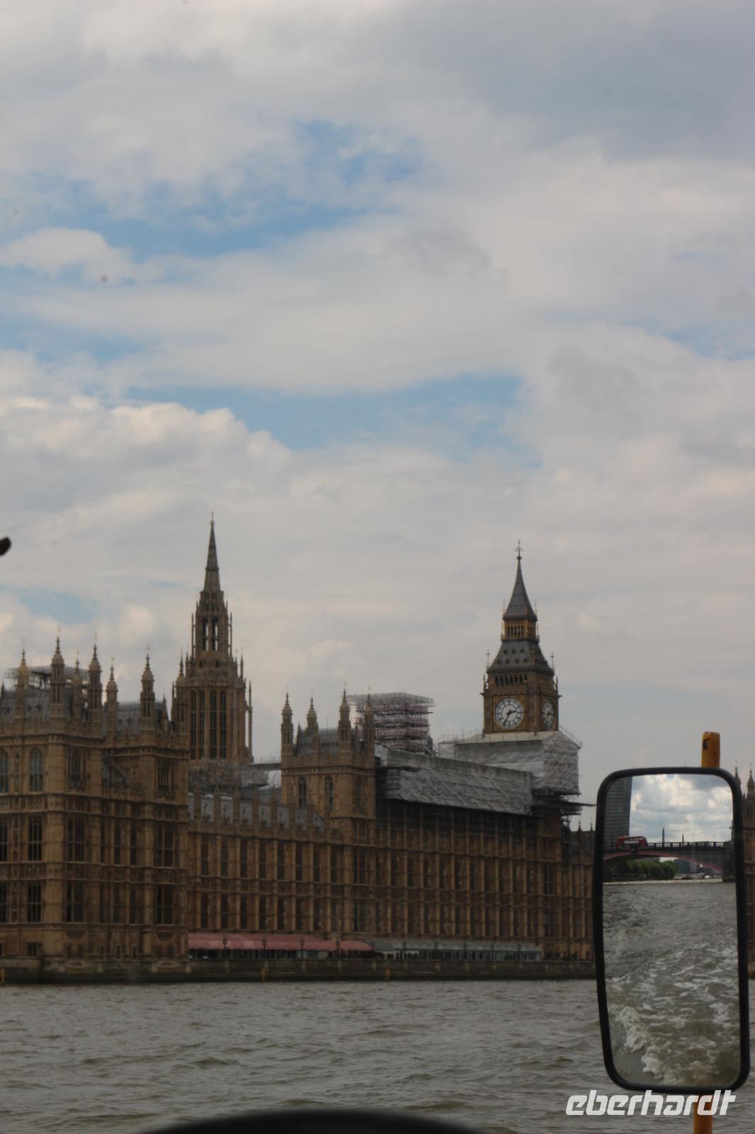 Am Morgen erreichte die AIDA den Hafen von Southampton. Nachdem alle gut gefrühstückt hatten, trafen wir uns am Pier 3 Market, welches zukünftig als unser fester Treffpunkt für die Ausflüge dienen sollte. Gemeinsam gingen wir auf Deck 6, wo wir von Bord gehen sollten. Zuvor fand ein Identitätsabgleich statt, welcher jedoch zügig und ohne Schwierigkeiten verlief. Beim Verlassen des Hafens trafen wir unsere Führerin des gestrigen Schiffsrundgangs, Svenja, wieder. Diese war nun verkleidet als Teil der Schweizer Garde und lud uns zu einem gemeinsamen Foto ein. Anschließend wurden wir von unserer örtlichen Reiseleiterin Gloria begrüßt. Sie brachte uns zum Bus und gemeinsam verließen wir den Hafen. Wir erhielten einen kleinen Eindruck von der Stadt Southampton, jedoch verließen wir diese sogleich wieder in Richtung der englischen Hauptstadt. Bevor wir diese erreichten, machten wir noch eine kleine Pause an einem sehr idyllisch gelegenen Rastplatz. Wenig später kamen wir in London an und arbeiteten uns mit dem Bus langsam ins Zentrum vor. Der Verkehr wurde immer dichter und schließlich hatte uns ein Stau erfasst, sodass es nur noch in Schrittgeschwindigkeit vorwärts ging. Gloria erzählte uns währenddessen viel über die Stadt sowie die Lebensumstände der Einwohner. Wir erschraken, als sie uns die Miet- und Kaufpreise für sich in der Stadt befindende Wohnungen mitteilte. Ein Zweitwohnsitz in London kam somit für uns nicht mehr infrage. Weiterhin passierten wir die Houses Of Parliament mit dem House Of Lords und dem House Of Comments. Auch Big Ben sowie die Westminster Abbey zeigten sich uns. Wir überquerten die Themse über die Westminster Bridge, um auf der anderen Seite der Stadt zum Ausgangspunkt unserer Duck Tour zu kommen. Als wir diese erreicht hatten, verließen wir den Bus und stiegen in Duck Fahrzeuge um, welche sowohl zur Fortbewegung an Land als auch zu Wasser geeignet sind. Damit begannen wir eine Stadtrundfahrt, welche uns zu den wichtigsten Sehenswürdigkeiten der Stadt führen sollte. So ging es zunächst wieder am Parlament, Big Ben, Westminster Abbey und Horse Parade sowie an der Downing Street Number 10 vorbei, in welcher die Premierministerin wohnt. Anschließend führte uns unsere Stadtrundfahrt zum Trafalgar Square sowie zum Picadilly Circus, an welchem die berühmte LED-Werbewand derzeit jedoch durch herkömmliche Plakate ersetzt worden war. Vorbei am St. James Park ging es bis zum Buckingham Palace, welchen wir jedoch zunächst nur von der Seite bestaunen konnten. Dazu wurde uns die Geschichte erzählt, wie es vor einigen Jahren ein Eindringling geschafft hatte, bis ins Schlafzimmer der Queen vorzudringen. Nachdem er sich dort zunächst mit ihr unterhalten hatte, war er nur durch die Frage nach einer Zigarette aufgeflogen, denn die Queen ließ für ihn eine bringen, jedoch wusste ihr Personal, dass die Queen selbst nicht raucht. So wurde er schließlich verhaftet. Wir überquerten schließlich wieder die Themse und setzten unsere Fahrt zu Wasser fort. Von der Themse aus hatten wir einen ganz anderen Blick auf die Innenstadt mit Parlament, Big Ben und Westminster Abbey sowie auf das London Eye auf der anderen Flussseite. Auch hatten wir hier die Möglichkeit, diese ungehindert zu fotografieren. Anschließend fuhren wir wieder zum Ausgangspunkt unserer Tour, wo wir diese auch wieder beendeten. Von da aus ging es direkt zum London Eye, wo Gloria unsere Karten sogleich für uns besorgte. Nachdem wir die Warteschlange überwunden hatten, konnten wir schließlich die Gondeln betreten und begannen eine halbstündige Riesenradfahrt. Diese bot uns die Möglichkeit, die englische Hauptstadt aus einer dritten Perspektive zu bestaunen und aus 135 Metern Höhe zu fotografieren. Das London Eye besteht aus 33 Gondeln, wobei jede Gondel für einen Londoner Stadtbezirk steht. Im Anschluss daran ging es wieder zu unserem Bus, der uns bereits erwartete. Wir fuhren über die Waterloo Bridge, welche uns einen Blick auf die St. Pauls Cathedral erlaubte. Über Covent Garden ging es zum Trafalgar Square sowie noch einmal zum Buckingham Palace, sodass wir diesen noch einmal von vorn bestaunen konnten. Der Palast wurde gerade für den Urlaub der Queen vorbereitet, da er in dieser Zeit von der Öffentlichkeit besucht werden darf. Im Anschluss verließen wir die Stadt wieder und mussten uns dabei wieder durch dichten Verkehr kämpfen. Am Abend erreichten wir den Hafen von Southampton, wo wir wieder an Bord der AIDAprima gingen und uns auch schon sehr auf das Abendessen freuten. Je nach ausgewähltem Restaurant war es möglich, das Auslaufen des Schiffes zu beobachten.