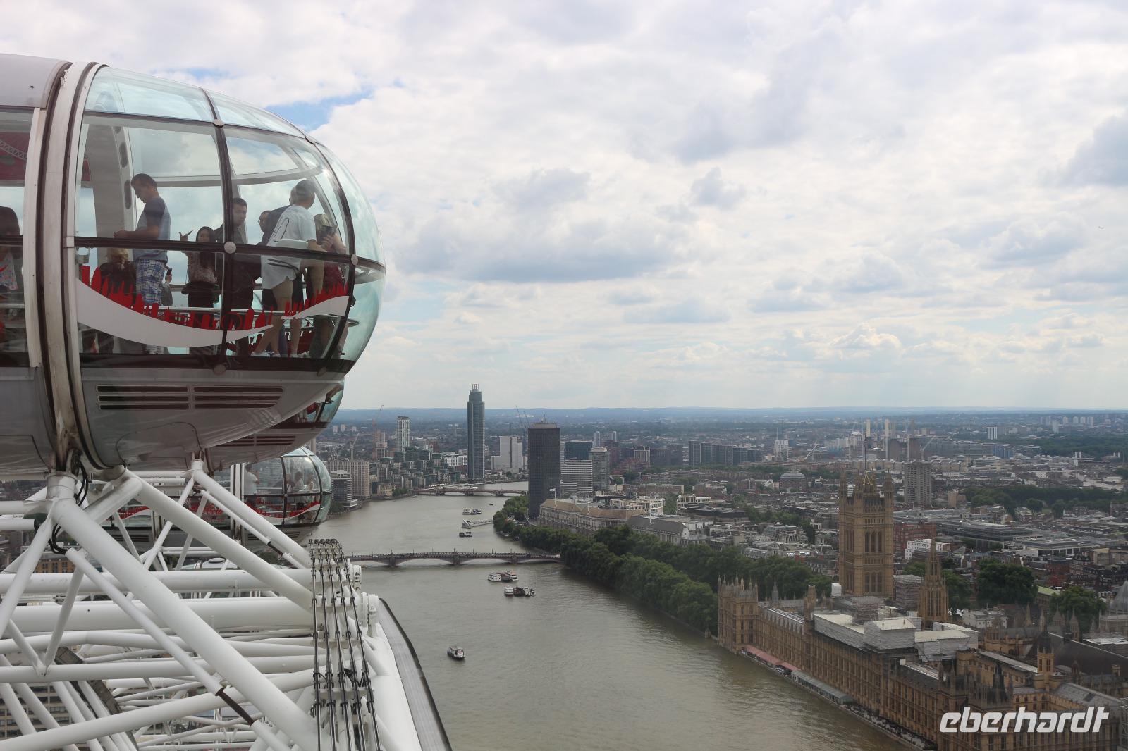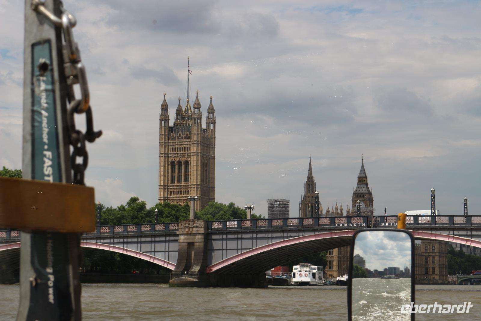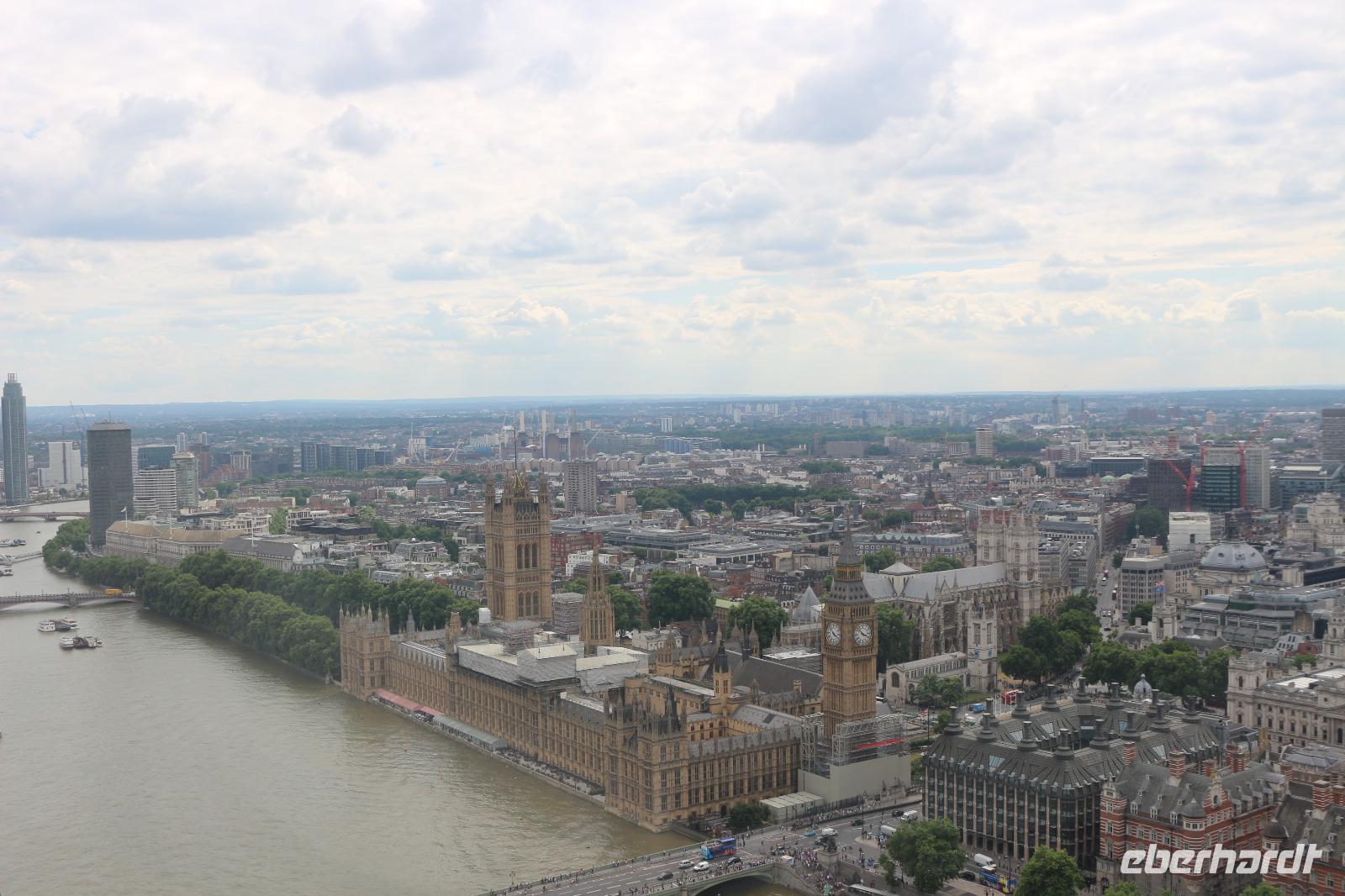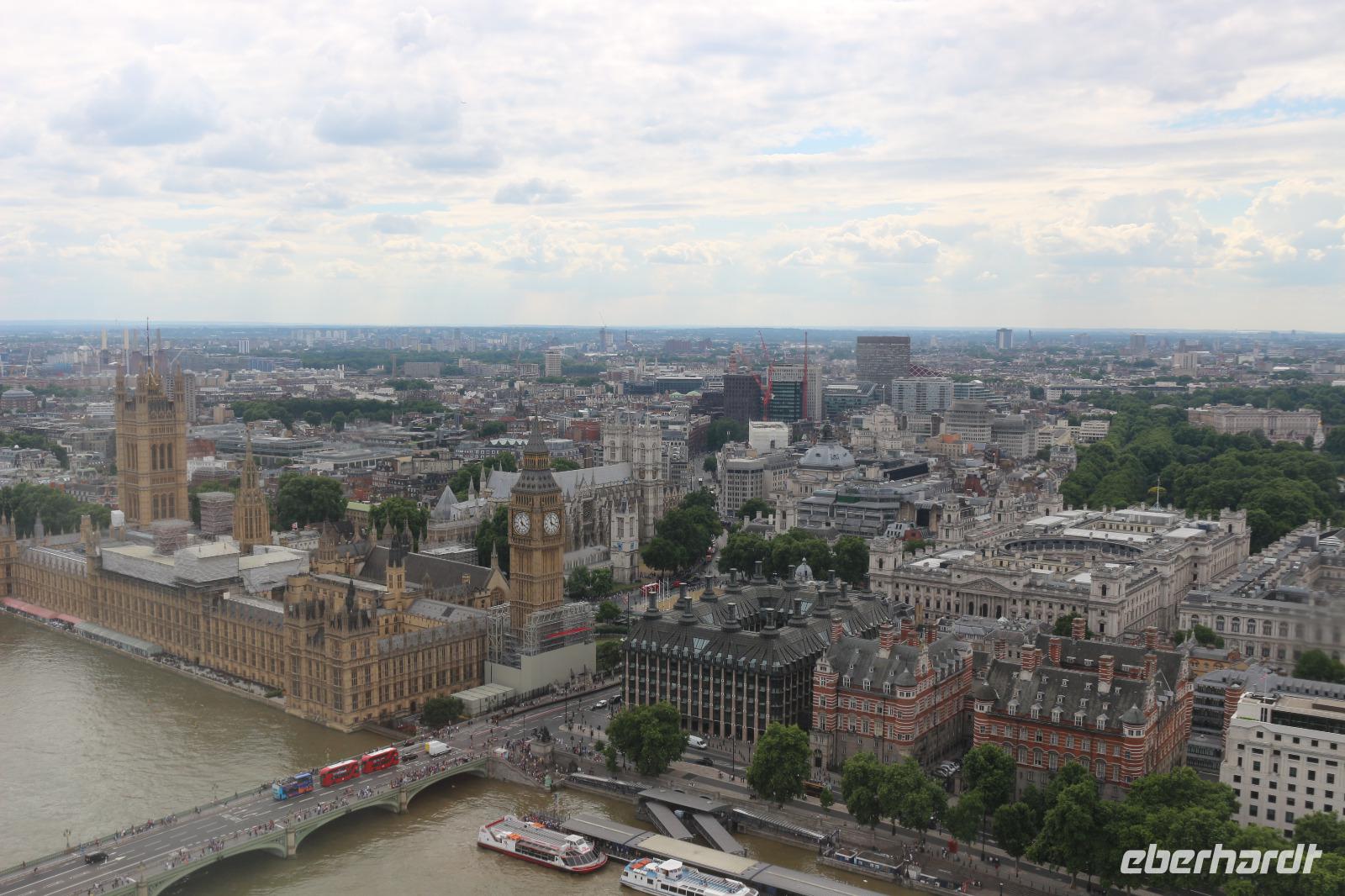 Am Morgen erreichte die AIDA den Hafen von Southampton. Nachdem alle gut gefrühstückt hatten, trafen wir uns am Pier 3 Market, welches zukünftig als unser fester Treffpunkt für die Ausflüge dienen sollte. Gemeinsam gingen wir auf Deck 6, wo wir von Bord gehen sollten. Zuvor fand ein Identitätsabgleich statt, welcher jedoch zügig und ohne Schwierigkeiten verlief. Beim Verlassen des Hafens trafen wir unsere Führerin des gestrigen Schiffsrundgangs, Svenja, wieder. Diese war nun verkleidet als Teil der Schweizer Garde und lud uns zu einem gemeinsamen Foto ein. Anschließend wurden wir von unserer örtlichen Reiseleiterin Gloria begrüßt. Sie brachte uns zum Bus und gemeinsam verließen wir den Hafen. Wir erhielten einen kleinen Eindruck von der Stadt Southampton, jedoch verließen wir diese sogleich wieder in Richtung der englischen Hauptstadt. Bevor wir diese erreichten, machten wir noch eine kleine Pause an einem sehr idyllisch gelegenen Rastplatz. Wenig später kamen wir in London an und arbeiteten uns mit dem Bus langsam ins Zentrum vor. Der Verkehr wurde immer dichter und schließlich hatte uns ein Stau erfasst, sodass es nur noch in Schrittgeschwindigkeit vorwärts ging. Gloria erzählte uns währenddessen viel über die Stadt sowie die Lebensumstände der Einwohner. Wir erschraken, als sie uns die Miet- und Kaufpreise für sich in der Stadt befindende Wohnungen mitteilte. Ein Zweitwohnsitz in London kam somit für uns nicht mehr infrage. Weiterhin passierten wir die Houses Of Parliament mit dem House Of Lords und dem House Of Comments. Auch Big Ben sowie die Westminster Abbey zeigten sich uns. Wir überquerten die Themse über die Westminster Bridge, um auf der anderen Seite der Stadt zum Ausgangspunkt unserer Duck Tour zu kommen. Als wir diese erreicht hatten, verließen wir den Bus und stiegen in Duck Fahrzeuge um, welche sowohl zur Fortbewegung an Land als auch zu Wasser geeignet sind. Damit begannen wir eine Stadtrundfahrt, welche uns zu den wichtigsten Sehenswürdigkeiten der Stadt führen sollte. So ging es zunächst wieder am Parlament, Big Ben, Westminster Abbey und Horse Parade sowie an der Downing Street Number 10 vorbei, in welcher die Premierministerin wohnt. Anschließend führte uns unsere Stadtrundfahrt zum Trafalgar Square sowie zum Picadilly Circus, an welchem die berühmte LED-Werbewand derzeit jedoch durch herkömmliche Plakate ersetzt worden war. Vorbei am St. James Park ging es bis zum Buckingham Palace, welchen wir jedoch zunächst nur von der Seite bestaunen konnten. Dazu wurde uns die Geschichte erzählt, wie es vor einigen Jahren ein Eindringling geschafft hatte, bis ins Schlafzimmer der Queen vorzudringen. Nachdem er sich dort zunächst mit ihr unterhalten hatte, war er nur durch die Frage nach einer Zigarette aufgeflogen, denn die Queen ließ für ihn eine bringen, jedoch wusste ihr Personal, dass die Queen selbst nicht raucht. So wurde er schließlich verhaftet. Wir überquerten schließlich wieder die Themse und setzten unsere Fahrt zu Wasser fort. Von der Themse aus hatten wir einen ganz anderen Blick auf die Innenstadt mit Parlament, Big Ben und Westminster Abbey sowie auf das London Eye auf der anderen Flussseite. Auch hatten wir hier die Möglichkeit, diese ungehindert zu fotografieren. Anschließend fuhren wir wieder zum Ausgangspunkt unserer Tour, wo wir diese auch wieder beendeten. Von da aus ging es direkt zum London Eye, wo Gloria unsere Karten sogleich für uns besorgte. Nachdem wir die Warteschlange überwunden hatten, konnten wir schließlich die Gondeln betreten und begannen eine halbstündige Riesenradfahrt. Diese bot uns die Möglichkeit, die englische Hauptstadt aus einer dritten Perspektive zu bestaunen und aus 135 Metern Höhe zu fotografieren. Das London Eye besteht aus 33 Gondeln, wobei jede Gondel für einen Londoner Stadtbezirk steht. Im Anschluss daran ging es wieder zu unserem Bus, der uns bereits erwartete. Wir fuhren über die Waterloo Bridge, welche uns einen Blick auf die St. Pauls Cathedral erlaubte. Über Covent Garden ging es zum Trafalgar Square sowie noch einmal zum Buckingham Palace, sodass wir diesen noch einmal von vorn bestaunen konnten. Der Palast wurde gerade für den Urlaub der Queen vorbereitet, da er in dieser Zeit von der Öffentlichkeit besucht werden darf. Im Anschluss verließen wir die Stadt wieder und mussten uns dabei wieder durch dichten Verkehr kämpfen. Am Abend erreichten wir den Hafen von Southampton, wo wir wieder an Bord der AIDAprima gingen und uns auch schon sehr auf das Abendessen freuten. Je nach ausgewähltem Restaurant war es möglich, das Auslaufen des Schiffes zu beobachten.
