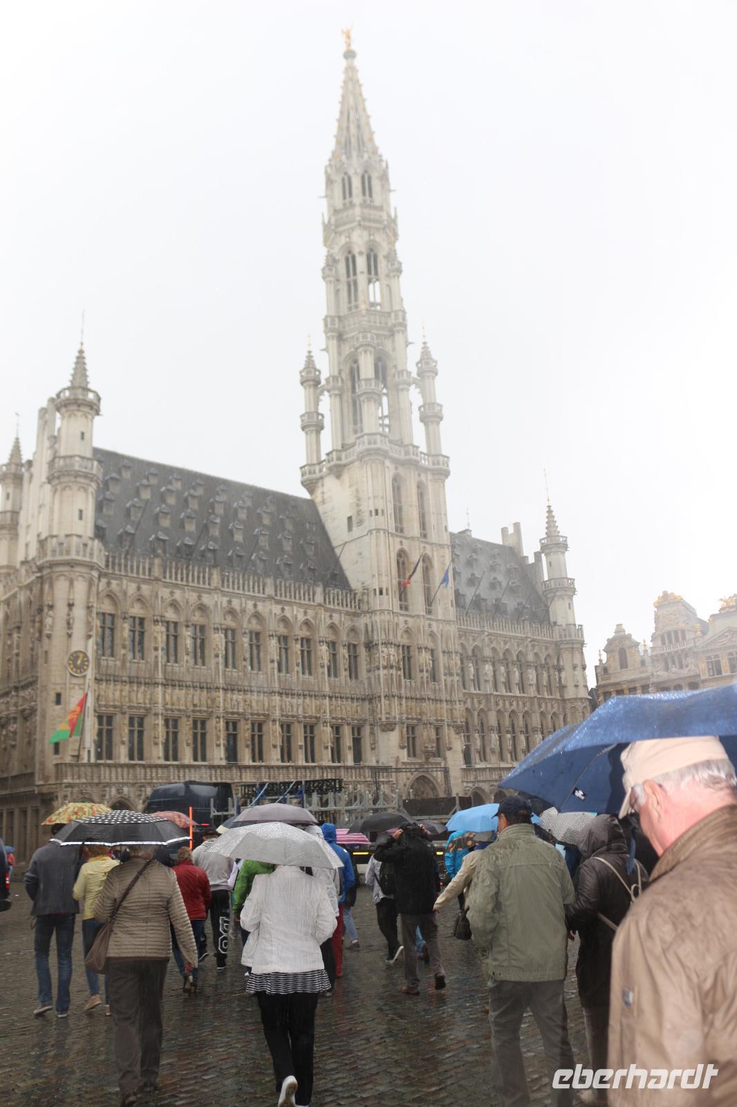 Heute begann unser Ausflug eine Stunde später, da das Schiff erst 10.00 Uhr im Hafen von Zeebrügge anlegte. Leider wurden wir hier von weniger gutem Wetter empfangen. Schon nach Verlassen des Schiffs wurden wir von einem ersten heftigen Regenschauer überrascht. Doch glücklicherweise lag zunächst eine Busfahrt vor uns, während der wir auf besseres Wetter hoffen konnten. Nach einer circa anderthalbstündigen Fahrt erreichten wir die belgische Hauptstadt Brüssel. Wir kämpften uns durch den Stadtverkehr und erreichten schließlich den vereinbarten Treffpunkt, an welchem unser Stadtführer Lenaerts zu uns in den Bus stieg. Der Regen hatte zunächst eine Pause eingelegt, sodass wir trockenen Fußes ins Zentrum spazieren konnten. So konnten wir die Altstadt zunächst zu Fuß erkunden. Als wir den Marktplatz mit dem Rathaus erreicht hatten, mussten jedoch die Regenschirme wieder herausgeholt werden, da der Himmel seine Schleusen wieder geöffnet hatte. Doch dieser währte nur einige Minuten, sodass wir kurz darauf unseren Rundgang fortsetzen konnten. Unser Reiseleiter führte uns zur Figur des Manneken Pis, einer Brunnenfigur eines urinierenden Knaben, welche eines der Wahrzeichen der Stadt ist. Wir staunten, wie klein und unscheinbar diese ist, hätten wir es uns doch alle als große Statue in der Mitte eines großen Platzes vorgestellt. Jedoch befand sich die Figur nahezu versteckt in einer Hausecke, sodass der eine oder andere ohne den Hinweis des Reiseleiters sicher daran vorbeigegangen wäre. Durch belebte Straßen, in welchen uns der Duft köstlicher belgischer Waffeln entgegen strömte, spazierten wir zurück zum Ausgangspunkt unseres Rundgangs. Hier war nun Zeit, eine Kleinigkeit zu essen, beispielsweise die bereits bestellten Baguettes oder auch eine belgische Waffel zu verkosten. Im Anschluss gingen wir zurück zu unserem Bus, wobei wir auf diesem Weg noch mehr von der belgischen Hauptstadt zu sehen bekamen, darunter auch den Dom St. Michael und St. Gudula. Der Bus brachte uns anschließend zum Europaviertel. Jedoch wurden wir hier aufgrund einer spontanen Kundgebung etwas aufgehalten und wurden zum Warten gezwungen. Unser Reiseleiter verriet uns, dass diese Kundgebungen keine Seltenheit in Brüssel ist, sondern diese zum Alltag gehören. Anschließend fuhren wir vorbei am Palast der Königsfamilie zum wohl bekanntesten Wahrzeichen der Stadt: dem Atomium. Dieses wurde anlässlich der Expo 1958 erbaut und diente als Symbol für das Atomzeitalter. Mit einer erstaunlichen Größe von 102 Metern war es gar nicht so einfach, dieses komplett auf ein Foto zu bekommen. Das insgesamt 2400 Tonnen schwere Atomium besteht aus neun Kugeln mit einem Durchmesser von jeweils 18 Metern, wovon einige durch Fahrstühle und Rolltreppen begehbar sind. Nachdem wir hier fleißig fotografiert hatten, mussten wir auch schon den Rückweg antreten. Wir verabschiedeten uns von unserem Reiseleiter und fuhren zurück nach Zeebrügge, um unser Schiff pünktlich zu erreichen. Hier erwartete uns ein nahezu sturmartiger Wind, sodass wir froh waren, wieder an Bord der AIDAprima zu sein. Mit einem guten Abendessen sowie musikalischer Unterhaltung im Theatrium bei einer Rock-Show mit Klassikern aus den 80ern und 90ern oder im Brauhaus ließen wir den Abend gemütlich ausklingen.