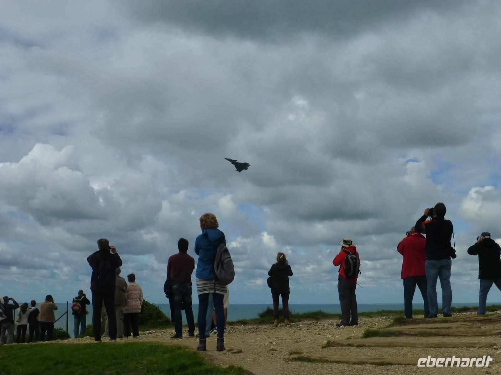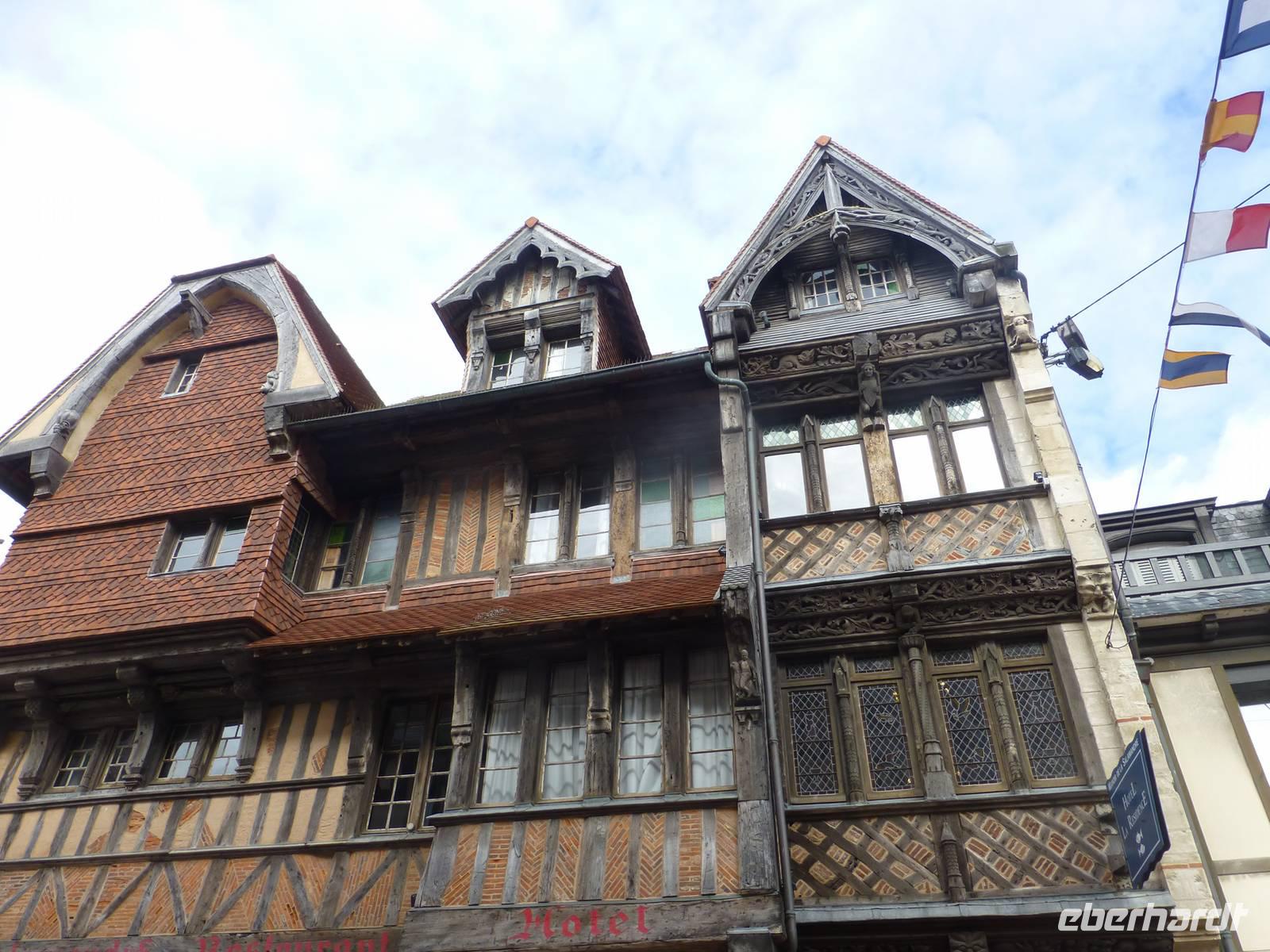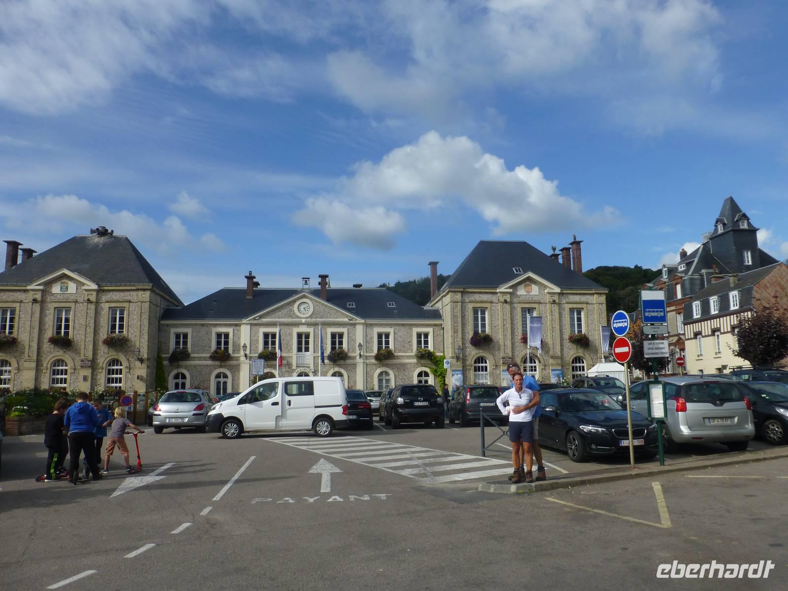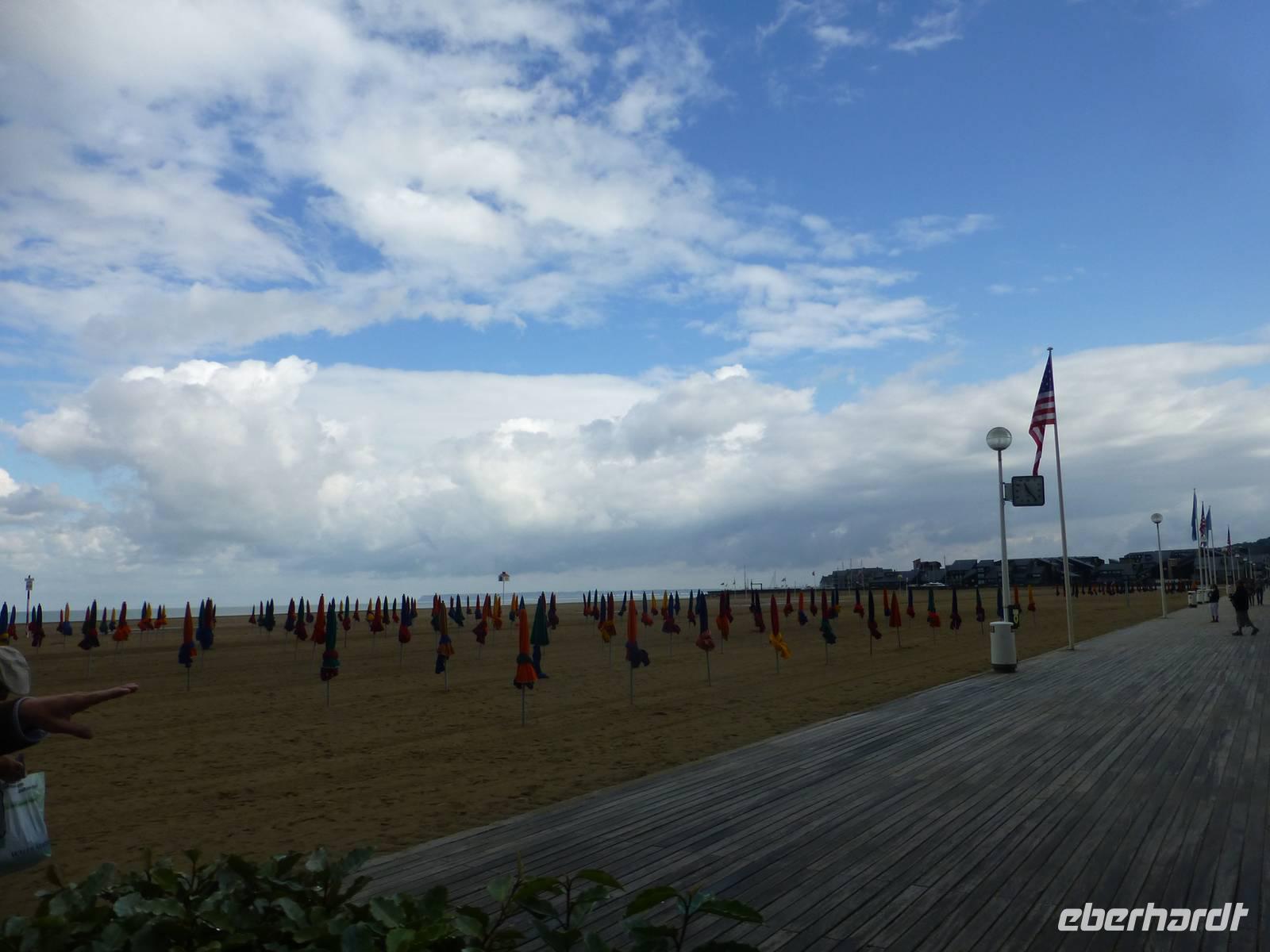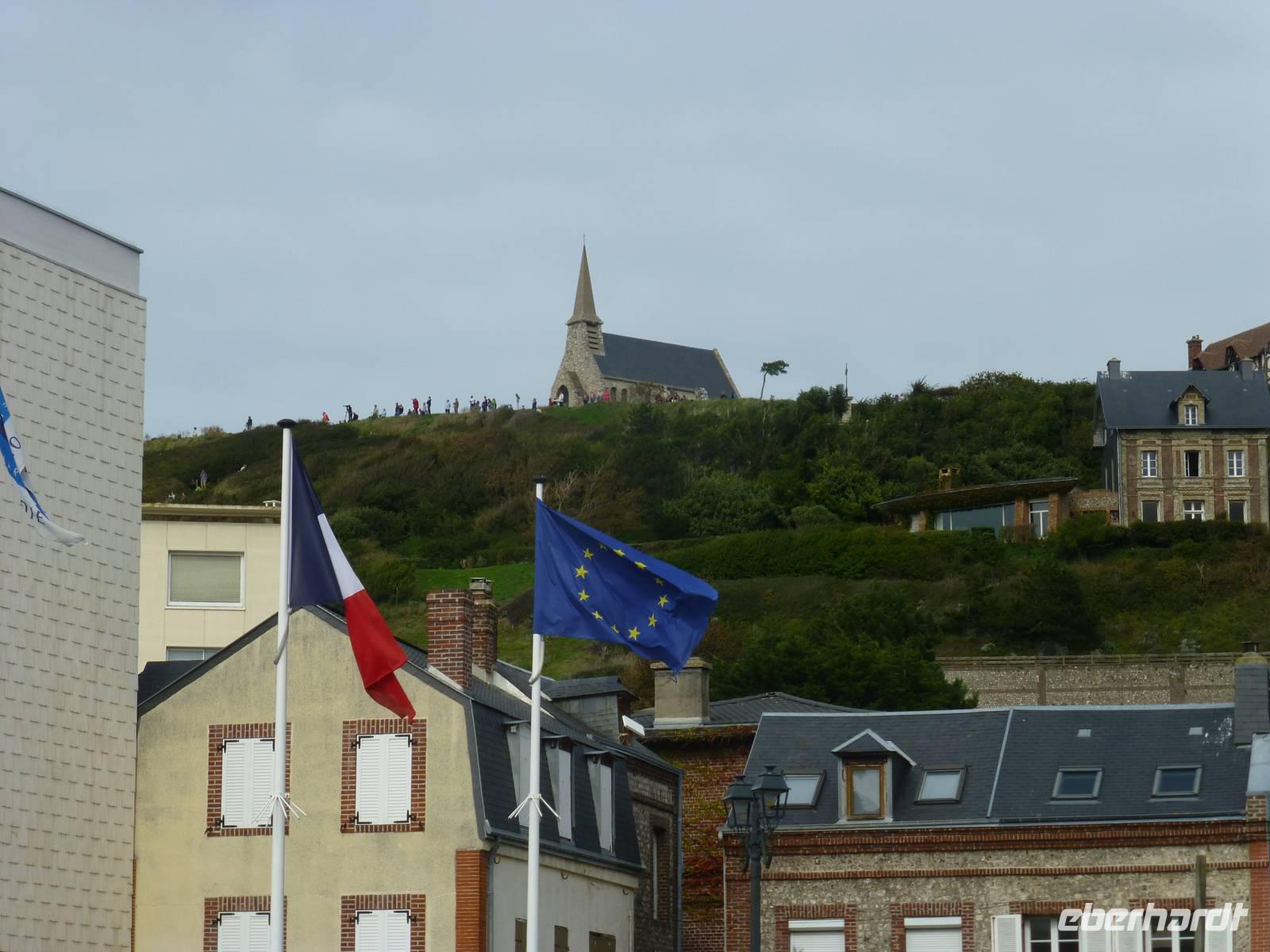Wir kommen in die Hauptstadt des Polo und des Pferdesports, sehen viele Villen, auch einige im Normannischen Fachwerkbau, und spüren die Luxusgegend. Beim Casino hören wir von Coco Chanel, sahen das Haus ihrer ersten Boutique. Die Stadt steckt inmitten voller Vorbereitung, denn morgen beginnt das Filmfestival des amerikanischen Films. Erwartet werden u.a. Orlando Bloom und Keanu Reeves, der rote Teppich wurde bereits ausgelegt. Wir gehen entlang der wunderschönen Strandpromenade und betrachten die Badehäuschen, die alle Namen der Hollywoodschauspielern und -regisseuren tragen, die Deauville bereits besuchten. Aber unsere Fahrt geht weiter nach Honfleur, ins wohl malerischste Hafenstädtchen der Normandie. Martins bezeichnet den pittoresken alten Hafen als „Disneys Piratenstadtkulisse", wirklich treffend. Ja, Honfleur hat einen ganz besonderen Charme und gilt als Geburtsstätte des Impressionismus. Zum typisch normannischen Mittagessen -mit Cidre- kehren wir in ein kleines Restaurant ein und genießen noch etwas Freizeit zum Bummeln. Nun fahren wir weiter nach Étretat, zu den bekannten Kreidefelsen, die ins Meer ragen. Vom stillen Genießen dieser traumhaften Kulisse hielten uns Proben zu einer Militärflugschau ab, aber wir können uns vorstellen, dass sich viele Künstler inspirieren ließen und lassen.