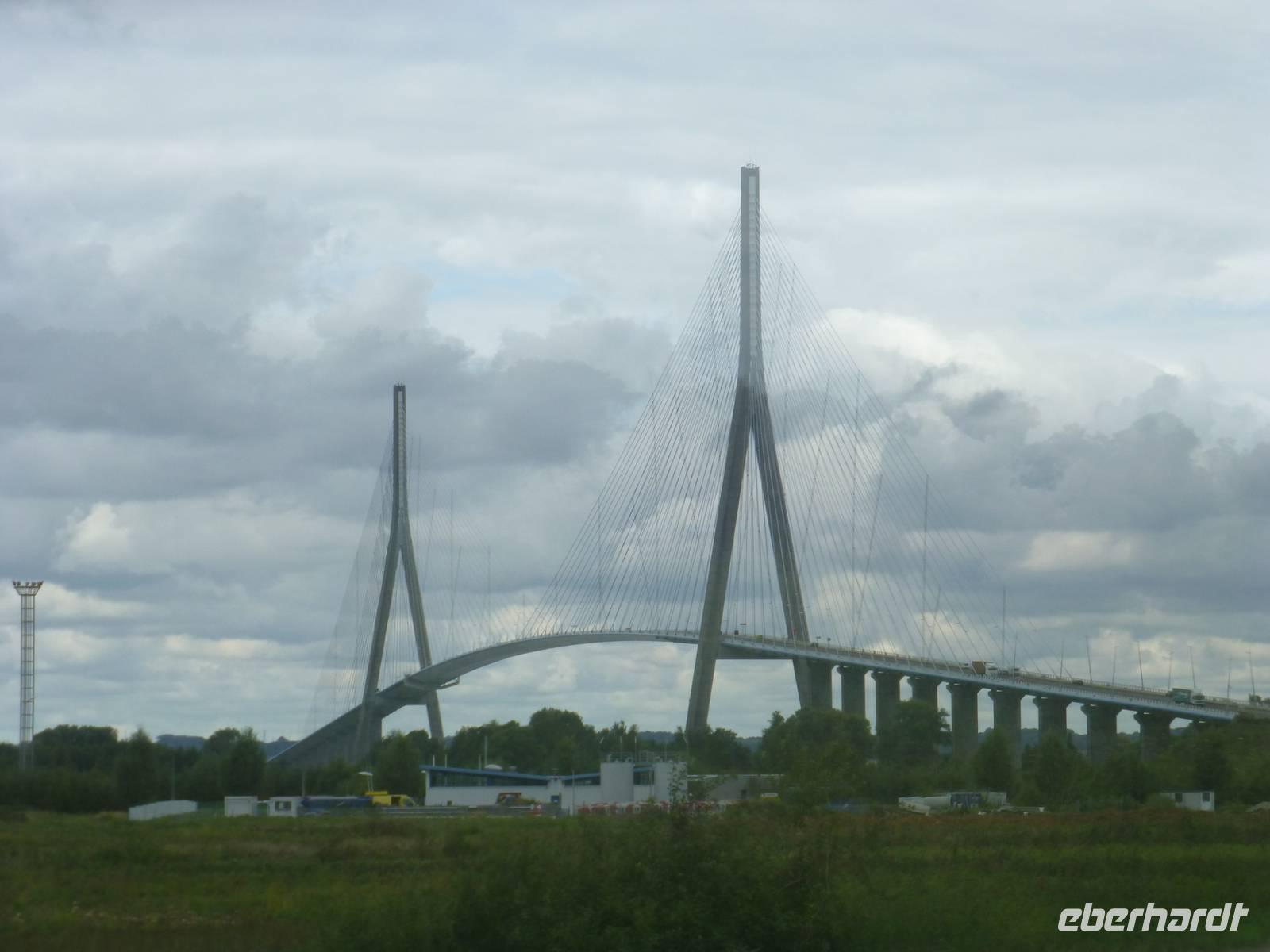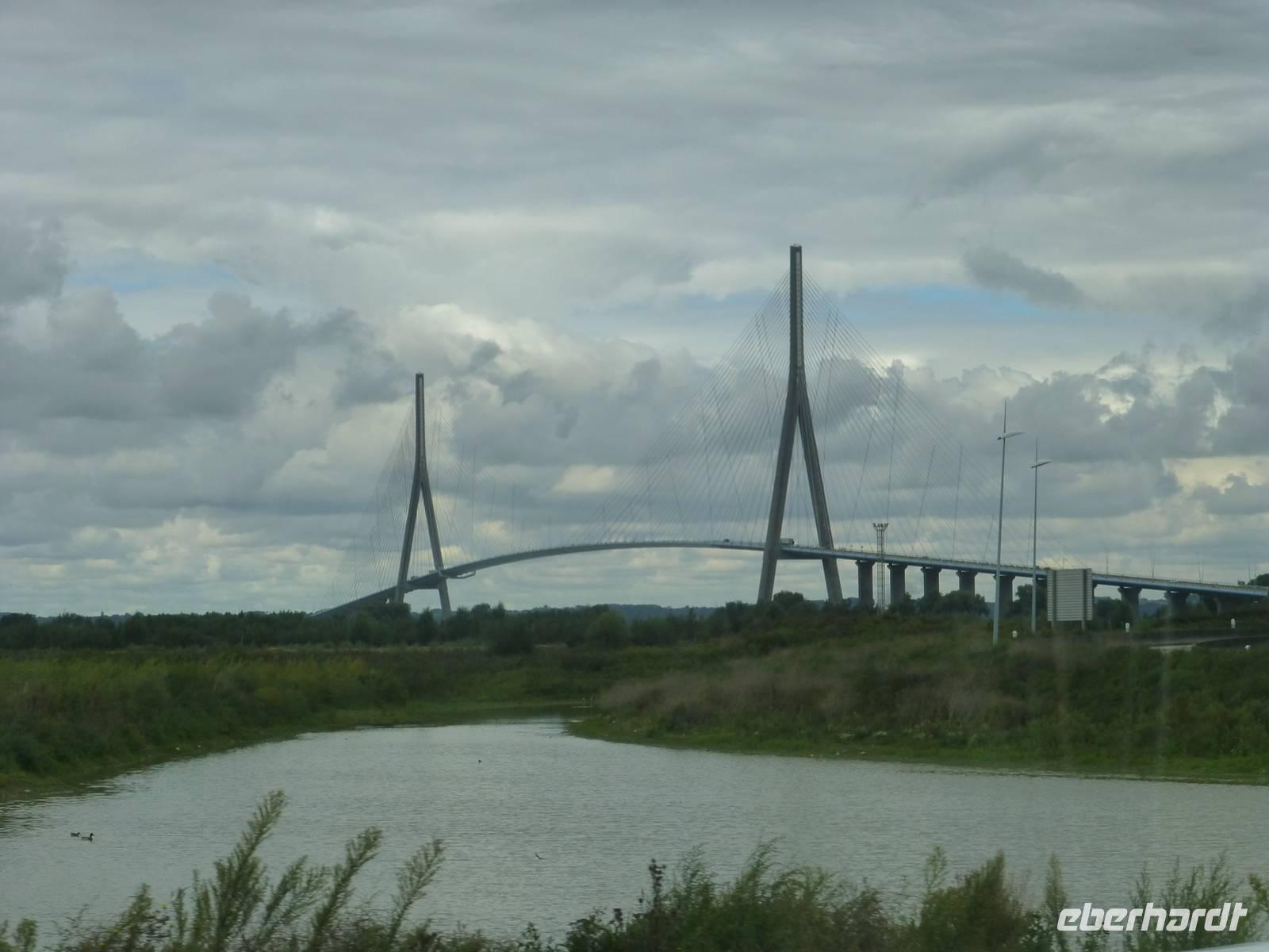 Am heutigen Tag gehen wir gemeinsam auf unseren ganztägigen Eberhardt-Ausflug entlang der Blumenküste der Normandie. Unser örtlicher Gästeführer Martin empfängt uns mit einem Bus direkt am Schiff. Als allererstes führt uns Martin nach Le Havre. Er schwärmt von dem großartig gelungenen Wiederaufbau nach der Zerstörung im 2. Weltkrieg. Der Architekt Auguste Perret hinterließ eine architektonisch eindrucksvolle Stadt aus getöntem Beton entstehen, die 2005 in die UNESCO-Liste des Weltkulturerbes aufgenommen wurde. So erblicken wir einzigartige Betonvariationen: das Rathaus mit Turm, Theater und Garten, das Kulturzentum Vulkan, der achteckige Turm der St.-Josef-Kirche mit tausenden farbigen Glasbausteinen sowie das Kunstmuseum. Über die zweitlängste Schrägseilbrücke der Welt „Pont de Normandie" fahren wir über die Seinemündung nach Deauville, dem feinen Seebad.